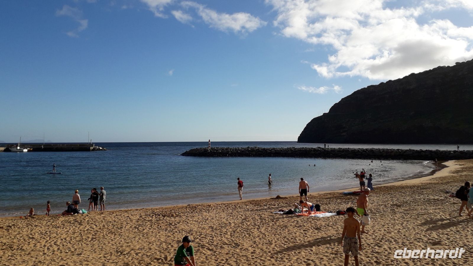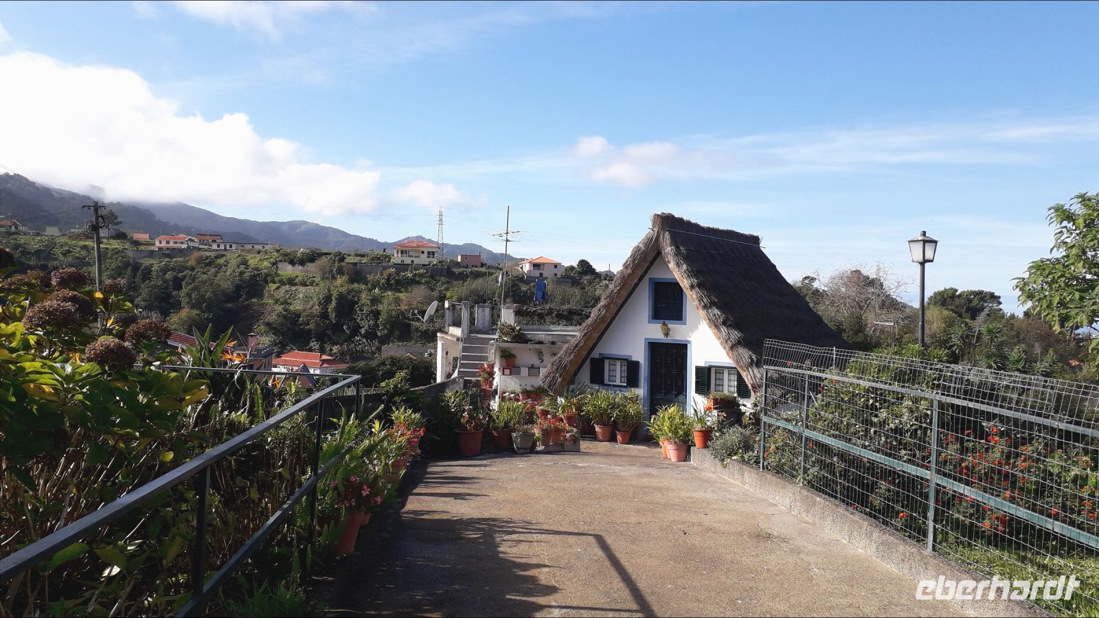 Anschließend geht es nach Santana, wo wir eine Mittagspause einlegen. Hier kann man die dreieckigen strohbedeckten Häuschen, Casas do Colmo bestaunen. Auf dem Weg zur zweitgrößten Stadt Madeiras, Machico sehen wir viele Avocado-, Anona-, Kaffee-, Papaya-, Mangobäume sowie Zuckerrohrplantagen und Yamswurzel-Pflanzen. Wir halten kurz in Pico do Facho, von wo man die unbewohnten Inseln rund um Madeira sehen kann. Auf dem Weg zurück zum Hotel fahren wir unter den 180 Betonpfeilen durch, die die Fluglandebahn stützen. In Machico angekommen, sehen wir die künstlich angelegte Bucht mit dem Sand aus Afrika. Um 17 Uhr kehren wir zum Hotel zurück.
