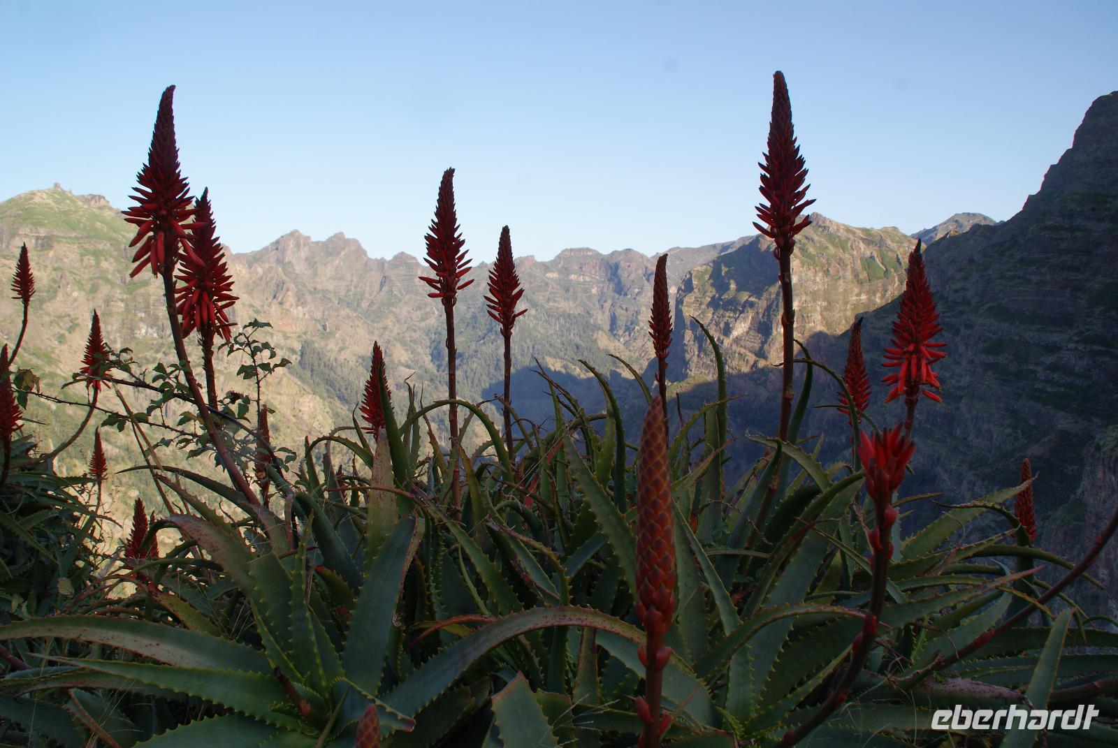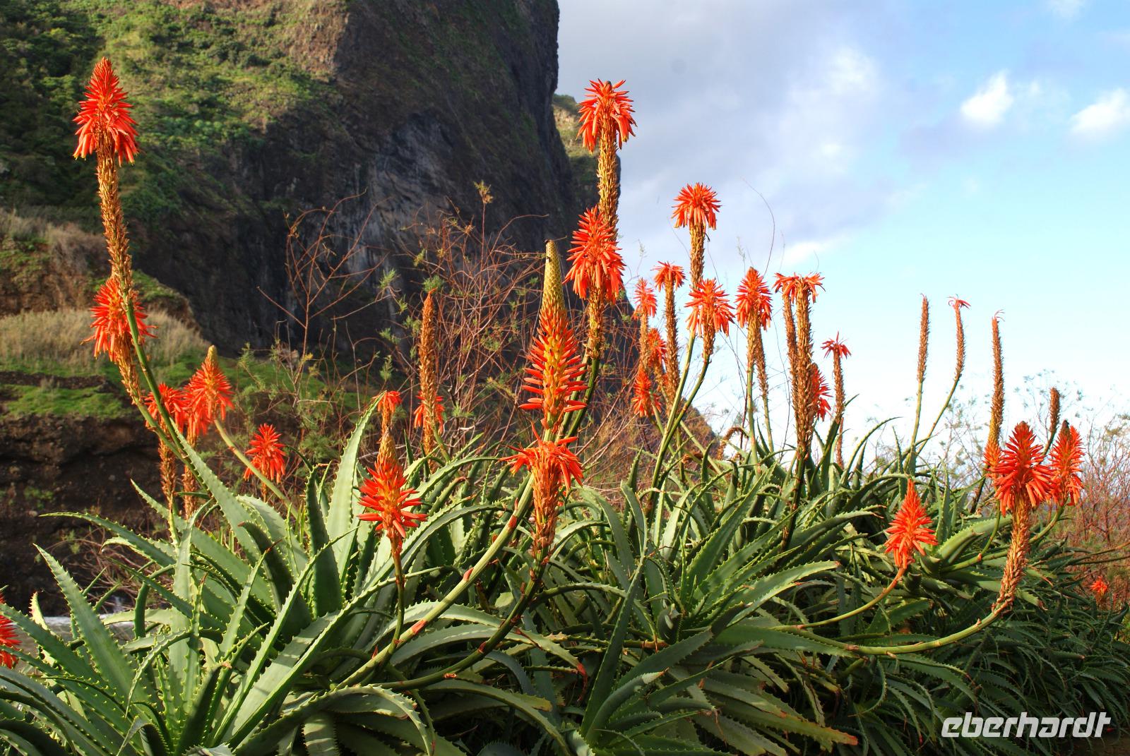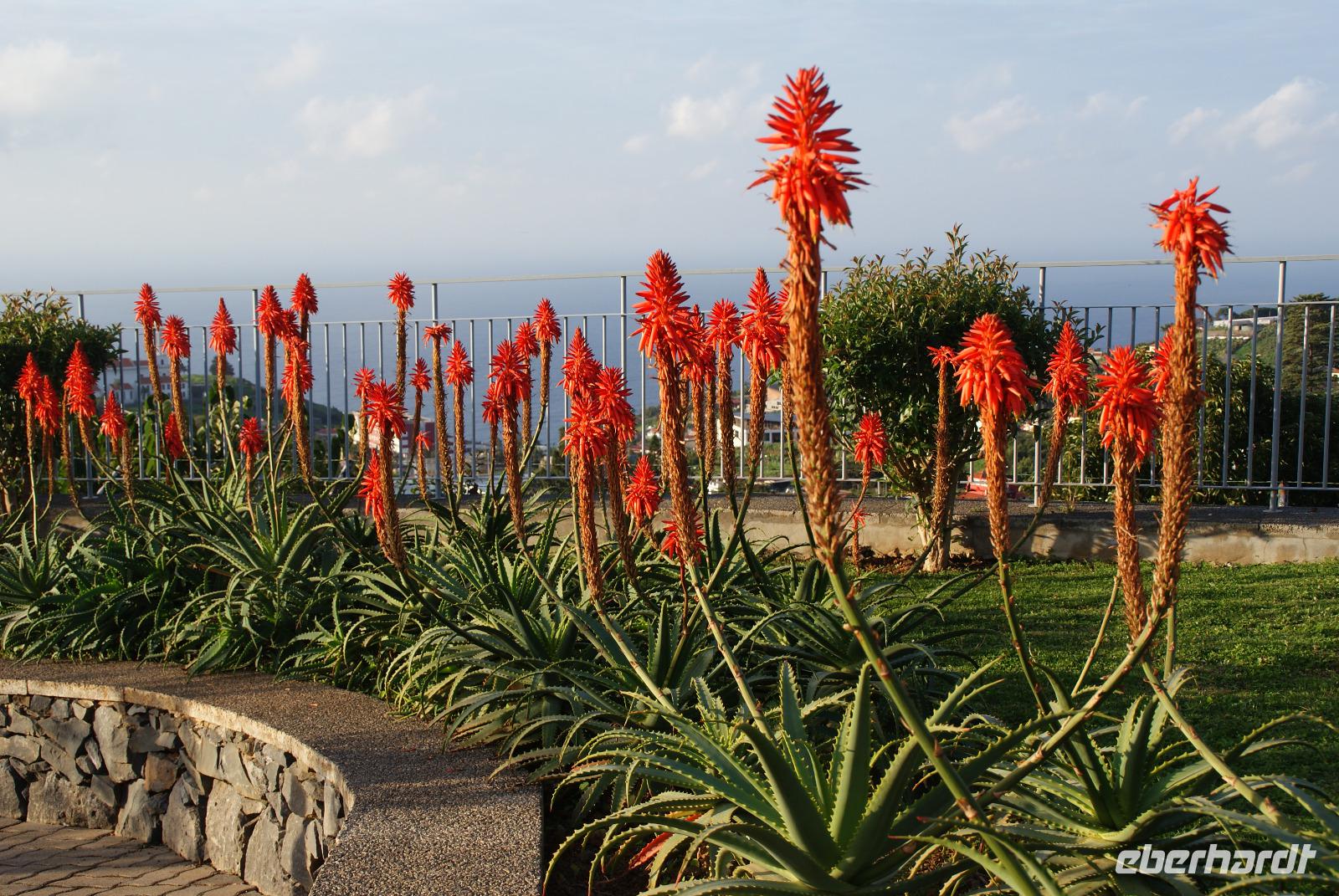 Heute begeben wir uns auf Panoramafahrt und lernen die nähere Umgebung Funchals kennen. Auf der Fahrt zum wunderschönen Aussichtspunkt Pico dos Barcelos sehen wir schon, wofür Madeira berühmt ist. Welch eine Pflanzenpracht erwartet uns. Vorbei an Feuerbegonien, die wie Teppiche von den Wänden hängen, über Schwanenhalsargaven bis hin zu den gerade rot-blühenden Baum-Aloen können wir uns jetzt schon nicht satt sehen. Bereits jetzt im Winter ist Madeira eine Augenweide. Vom Pico dos Barcelos haben wir einen herrlichen Blick auf Funchal und eine unglaubliche 360° Sicht und verstehen auch, warum dieser Ort gerade zu Silvester mehr als gefragt ist. Weiter geht die Fahrt nach Eira do Serrado, von wo wir einen grandiosen Ausblick auf das 600 m unter uns liegende Nonnental haben, alles umrahmt von einer traumhaften Bergkette. Unser nächstes Ziel ist das bekannteste Fischerdorf Madeiras, Camara de Lobos, was so viel wie „Bucht der Seelöwen" bedeutet. Hier sind wir zu einer Poncha Probe eingeladen und testen ein erstes Mal die bekannte Spezialität, welche in klassischer Variante aus Zitrone, Honig und Zuckerrohrschnaps besteht. Fatima meint, nach dem 3. Glas sprechen wir fließend Portugiesisch. Das müssen wir ausprobieren! Saúde!!! ?