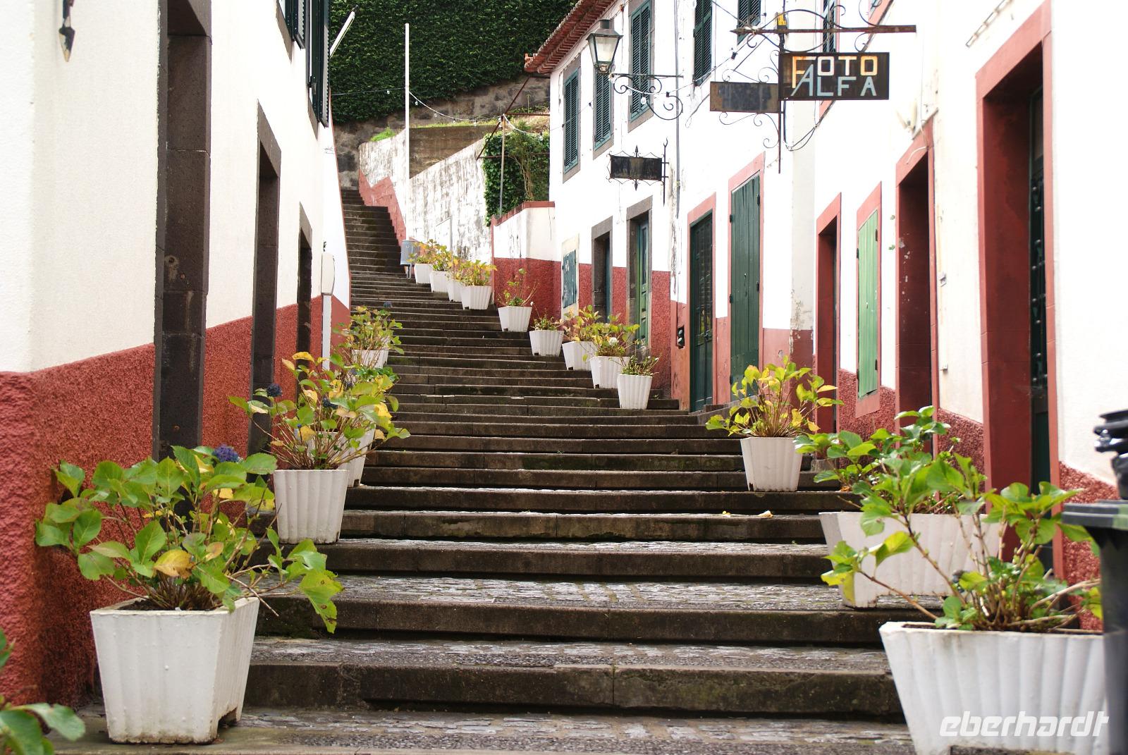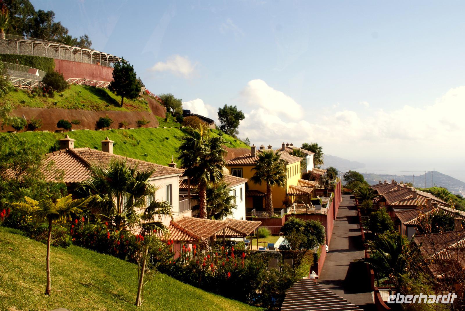 Wir haben bestens geschlafen und strahlen mit der Sonne um die Wette. Wie herrlich ist das denn? Milde Temperaturen um die 20 Grad, die Sonne lacht und wir starten in den Tag. Zunächst gehen wir auf Citytour. Fatima zeigt uns viel Interessantes über Madeiras Hauptstadt Funchal und so lernen wir beispielsweise, dass Funchal von Fenchel kommt. Vorbei am Fußballstadion von „Maritimo Madeira" geht es weiter Richtung Reids Hotel, welches das älteste Hotel der Insel ist und steuern die bekannte Markthalle in der Altstadt an. Zunächst gibt es den berühmten Espada-den schwarzen Degenfisch zu sehen, der in der Fischhalle auf Käufer wartet. Weiter in die Obst,-Gemüse und Pflanzenhalle. Fatima erklärt uns die noch unbekannten Früchte und wir dürfen auch die sogenannte „Ananas-Banane" probieren, die Frucht des Philodendron. Was es nicht alles gibt! Wir spazieren weiter durch die Altstadt und bestaunen die wunderbar bemalten Türen entlang des Weges. Als nächstes Highlight treffen wir auf eine Folklore Gruppe, die in einheimischer Tracht mit Gesang und Tanz unterhält. Unsere kulinarische Reise geht weiter und so machen wir Halt in der „Blandy's Weinkellerei". Hier erfahren wir so manches über die Herstellung des berühmten Madeirawein und natürlich dürfen wir diesen auch kosten. So kann der Tag weiter gehen. Heute ist Feinschmeckertag und wir besuchen einen Kräutergarten, dessen Besitzerin uns mit hausgemachter Schokolade und korrespondierenden Getränken (Madeirawein, Zuckerrohschnaps und Blaubeerlikör) verwöhnt. Wir sitzen im Garten, genießen die Leckereien und den fantastischen Blick auf Funchal. Den Nachmittag verbringen wir mit der Auffahrt per Seilbahn nach Monte, sehen die Wallfahrtskirche und spazieren durch den tropischen Garten „Monte Palace", welch eine tolle Oase inmitten der Stadt. Ein Erlebnis! Ein Teil unserer Gruppe lässt sich abschließend mit den berühmten Korbschlitten wohlbegleitet ins Tal fahren. Was haben wir heute an einem einzigen Tag nicht schon alles erlebt und sind schon jetzt hellauf begeistert, was Madeira zu bieten hat.