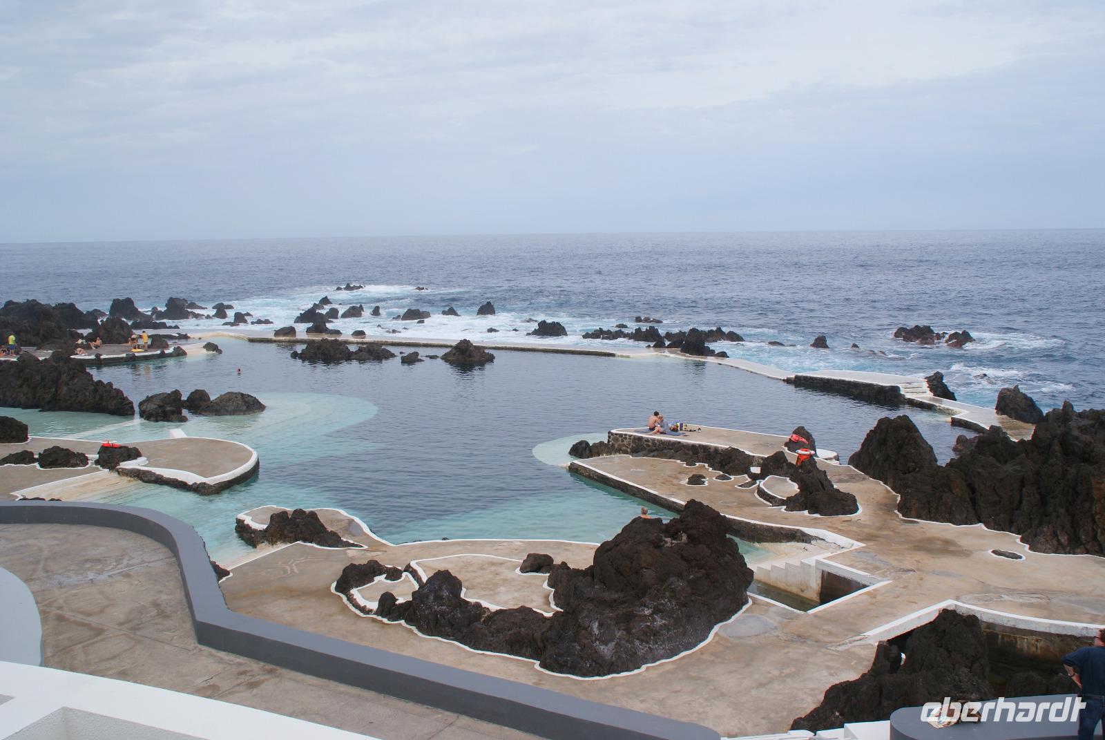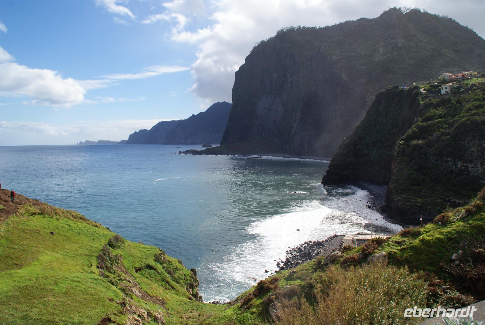 Heute treten wir unseren optionalen Ausflug in den Nordwesten Madeiras an. Gut gefrühstückt und noch besser gelaunt ziehen wir los und halten als erstes in Ribeira Brava, was so viel wie Wilder Bach bedeutet. Zufrieden stellen wir fest, dass dieser heute so gar nicht wild ist, schlendern durch das beschauliche Örtchen und lassen das Leben der Einheimischen auf uns wirken. Weiter geht es Richtung Encuemeada Pass, der auf 1007m Höhe liegt. Fatima erzählt uns viel Interessantes über Land und Leute, so dass wir einen noch besseren Einblick in das Leben der Madeirenser erhalten. Beim nächsten Fotostopp stehen wir so zentral, dass wir gleichzeitig die Nord-und Südküste der Insel sehen können, eine Besonderheit, die es so auf der Welt auch nicht oft gibt. Unser Busfahrer Mauro führt uns sicher auf die Hochebene Paúl da Serra in 1500m Höhe, dort genießen wir den seltenen Blick auf ein komplettes Rundumpanorama, welches sich uns bei besten Wetterverhältnissen bietet. Gegen Mittag erreichen wir Porto Moniz, welches für seine Naturschwimmbecken bekannt ist. Hier essen wir vorzüglich und kosten zum ersten Mal vom Espada, dem bekannten schwarzen Degenfisch. Einfach köstlich, Fatima hat nicht übertrieben, gerne wiederholen wir dies an anderer Stelle nochmal. Es ist der 30.12.16 und wir staunen nochmals über die milden Temperaturen bei unserem anschließenden Spaziergang und sind uns einig, dass wir das Jahr nicht besser hätten ausklingen lassen können. Unser Ausflug führt uns weiter zum Brautschleierwasserfall. Anschließend halten wir im verschlafenen Örtchen Sao Vincente, welches unweit vom Meer liegt. Trotz alledem hat man schon das Gefühl hat, in einem Bergdorf angekommen zu sein. Hier scheint die Zeit still zu stehen und wir flanieren durch den Ort, blicken in die von innen prunkvolle Kirche, auf die oben auf dem Berg gelegene Wallfahrtskapelle „Fatima" und gönnen uns einen leckeren Bica, Chino, Chinesa oder Garoto. Zurück geht es wieder über die Berge nach Funchal und ein weiterer erlebnisreicher Tag neigt sich dem Ende. Wir freuen uns, auch diesen besonderen Teil Madeiras kennengelernt zu haben.