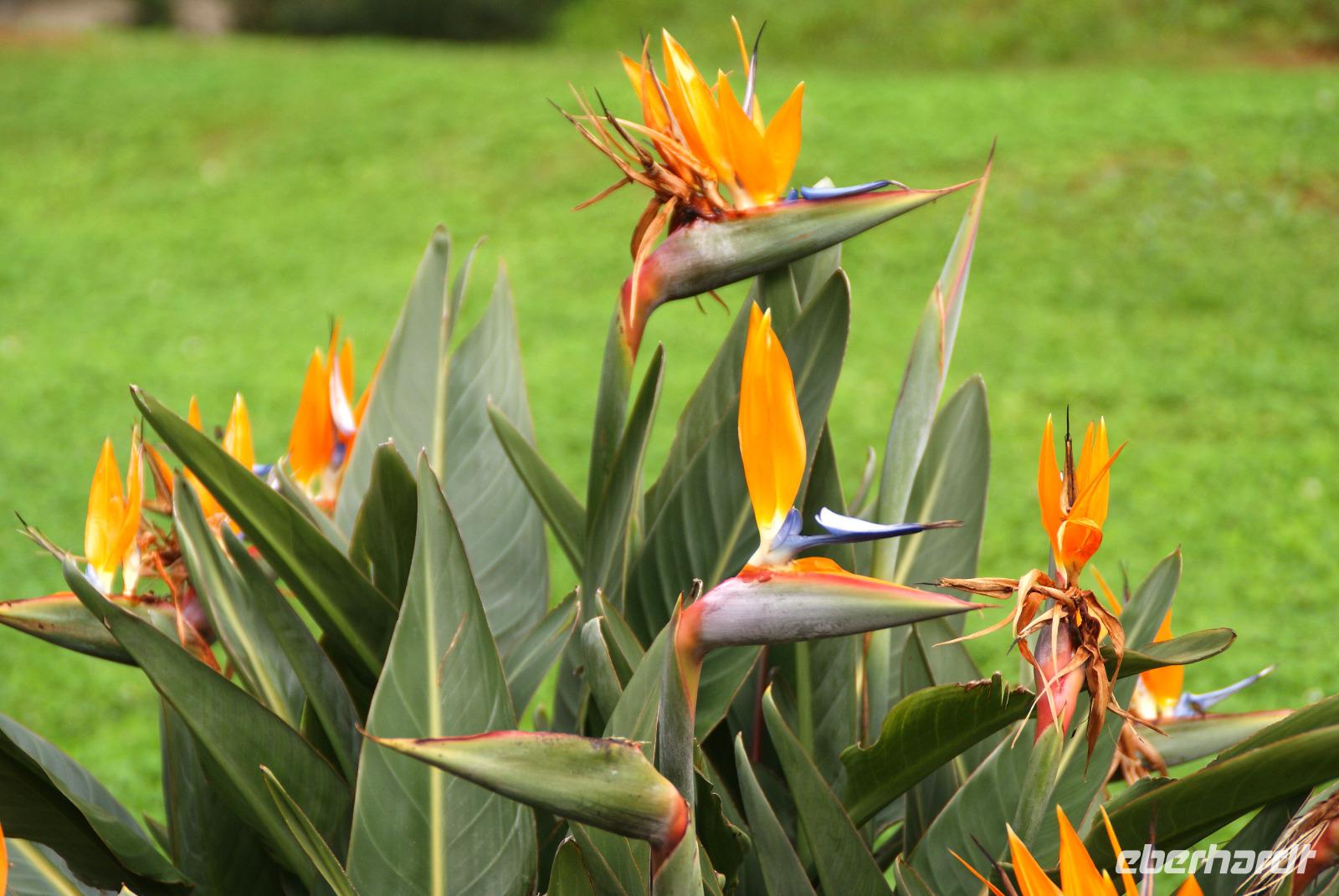 Zum Jahresausklang besuchen wir heute die „Quinta do Palheiro", auch Blandy's Garten genannt, der sich seit 1885 im Besitz der Familie Blandy befindet. Wir staunen über die sehr gepflegte Anlage und die vielen Pflanzen, die hier sicherlich durch unzählige Gärtner gehegt und gepflegt werden. Die bekannte Kamelien Allee in voller Blüte hat es uns besonders angetan, einfach wunderbar. Amüsiert sehen wir das sich dort befindliche Jagdhaus im Hinblick darauf, dass uns ja Fatima bereits erklärt hat, dass es außer Kaninchen keine größeren Wildtiere und somit im Grunde nichts zum Jagen auf Madeira gibt. Unser nächster Programmpunkt des heutigen Tages ist die „Quinta boa vista" ein imposanter Orchideengarten und wir erhalten eine kleine Führung, bestaunen die verschiedenen Orchideenarten und deren Üppigkeit. Den Nachmittag bis zum Silvesterabend kann jeder nach seinem Gusto gestalten und so schlendern viele von uns gemütlich und in Ruhe durch die Altstadt, wobei diese heute eher weniger Ruhe bietet. 9 Kreuzfahrtschiffe haben sich anlässlich des berühmten Silvesterfeuerwerks Madeiras eingefunden und natürlich möchten sich deren Gäste ebenfalls Funchal ansehen. Abends finden wir uns zum Silvester Galabuffet ein und freuen uns über das aufwendige Buffet mit fantastischer Dekoration, sowie die liebevoll gedeckten und geschmückten Tische! Wir schmausen vorzüglich, wagen bereits das ein oder andere Tänzchen, zu welchem die Live Band animiert und verbringen den Jahreswechsel auf der Dachterrasse des Panoramicos, welches seinem Namen alle Ehre macht. Was für eine Aussicht auf Funchal in der Silvesternacht. Mitternacht ist es dann so weit. Wir erleben das atemberaubende Silvesterfeuerwerk und sind sprachlos. Nicht umsonst wurde es schon zum weltweit schönsten Feuerwerk gekürt. Egal wo wir hinschauen, überall um uns herum die tollsten Formen und Farben-welch ein Erlebnis. Dazu Sekt und Musik und wir tanzen fröhlich ins neue Jahr!