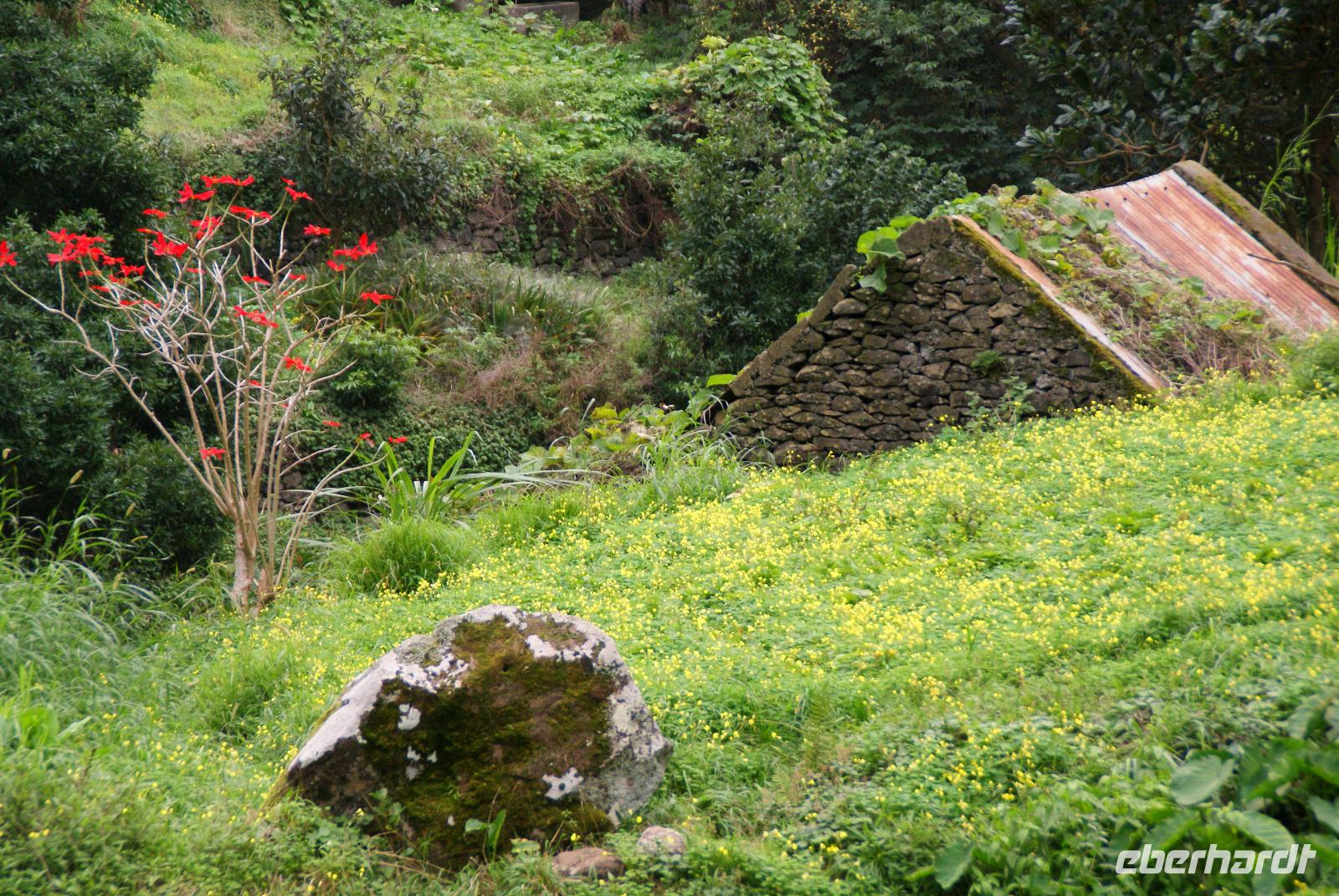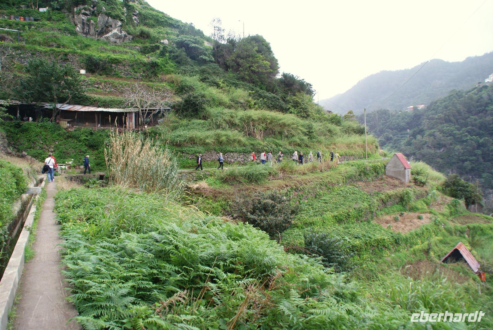 Heute ertönt kein Weckruf und uns interessiert in erster Linie, BIS WANN wir frühstücken können....So erwartet uns ein schönes Neujahrsbrunch und wir lassen es ruhig angehen. Nachdem jeder seinen Vormittag nach eigenem Geschmack gestaltet hat, treffen wir uns um 14.00 Uhr zur heutigen Levada Wanderung, zu der sich alle aus der Gruppe entschlossen haben. Mauro fährt uns bis Marocos, von wo wir starten. Fatima führt die Wandergruppe an und zeigt und erklärt so manches, was sich uns am Wegesrand bietet. Wir staunen über das teils einfache Leben der hier wohnenden Madeirenser, die größtenteils nur zu Fuß zu ihren Häusern gelangen. Idyllisch ist es schon, aber würden wir wohl tauschen wollen? Jedenfalls genießen wir die Natur, das milde Klima und sind froh, dass es Petrus auch heute wieder gut mit uns meint und wir ohne Regen den Wandertag durchführen können.