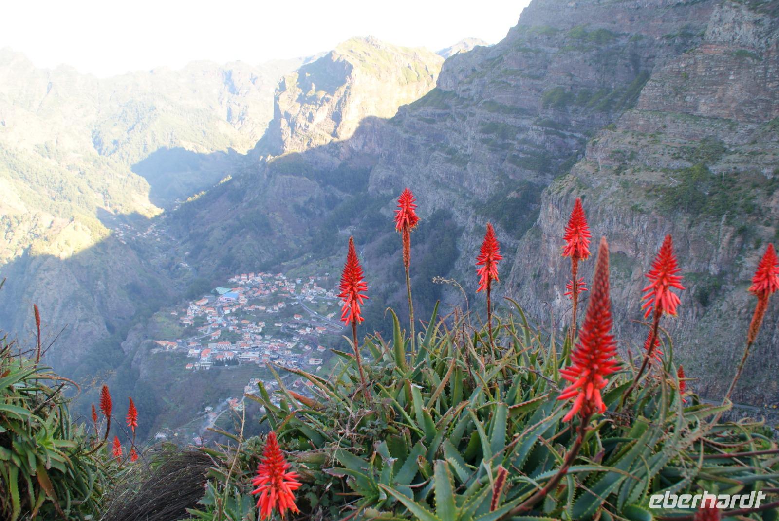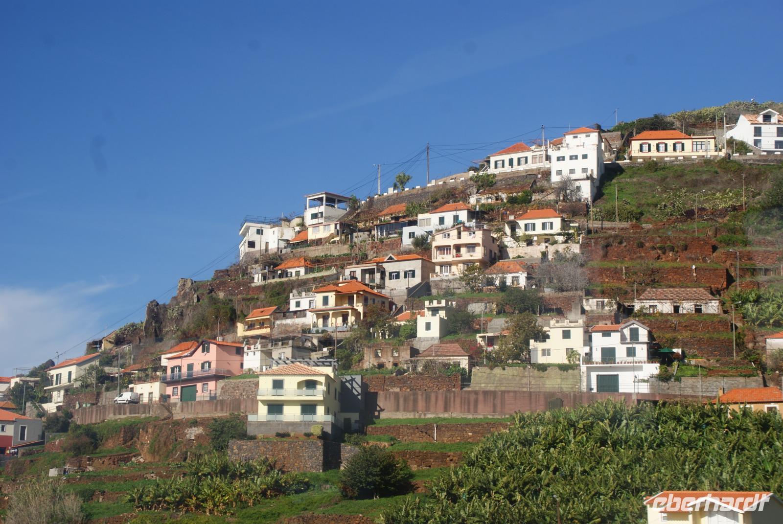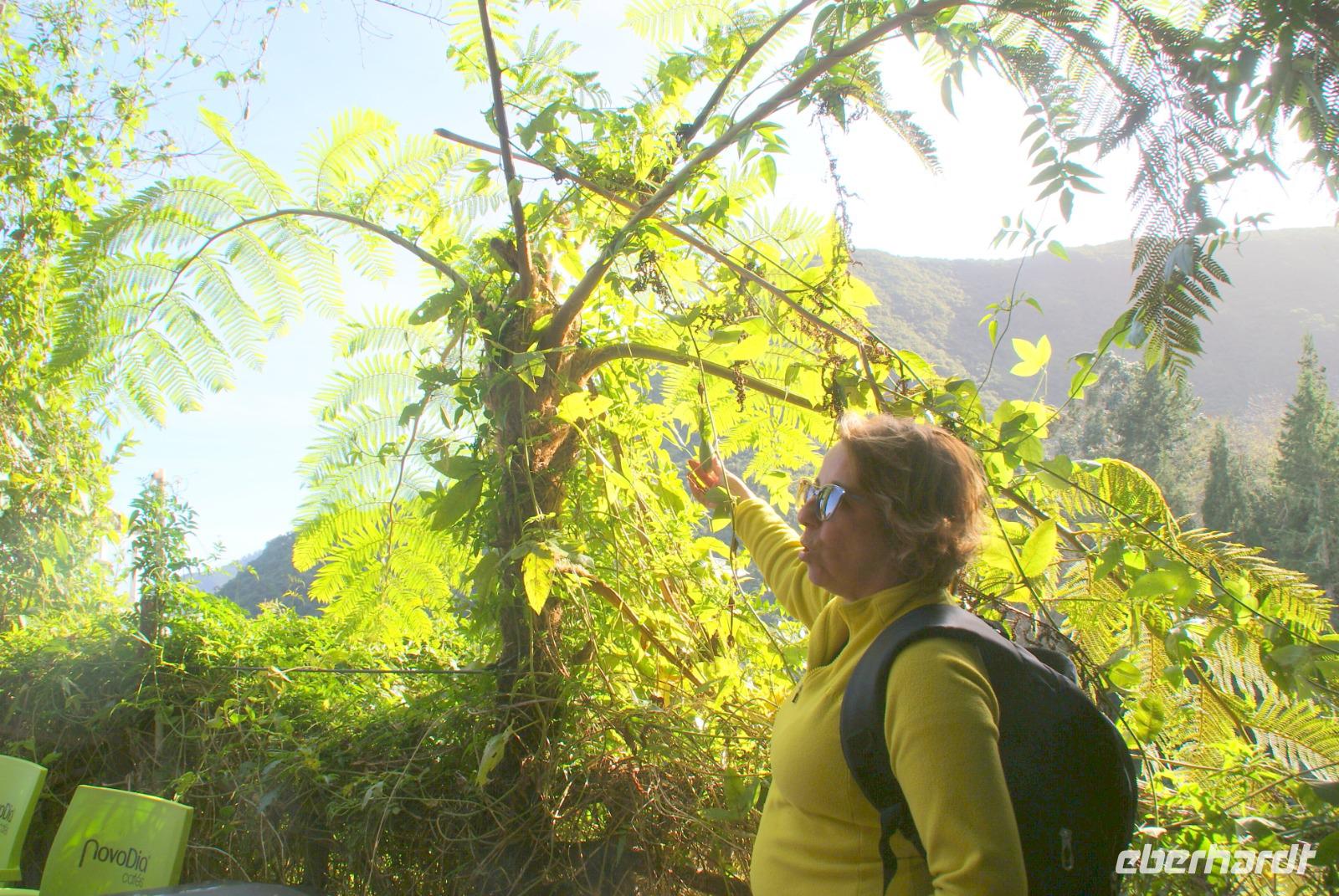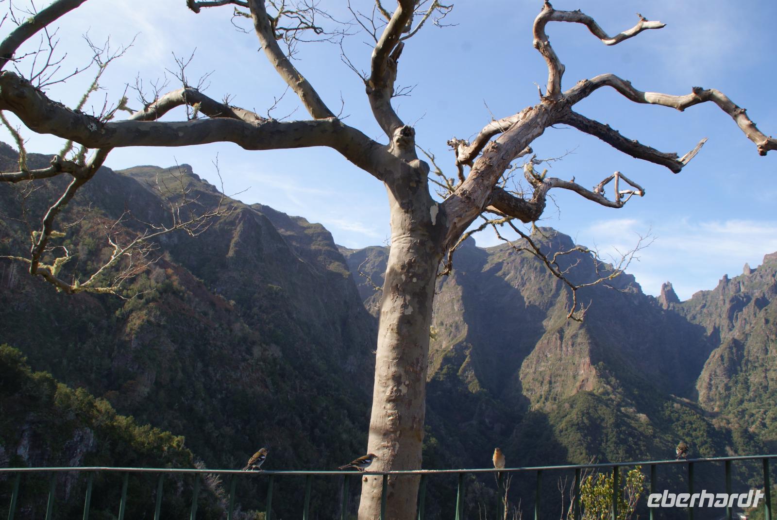 Welch ein Tag! Schon früh am Morgen lacht die Sonne bei milden Temperaturen, die sich im Laufe des Tages bis auf 24 Grad hinaufschrauben...Nach einem köstlichen Frühstück mit frisch gebackenem Brot starten wir die heutige Tour in den Nordosten der Insel mit unserer Reiseleiterin Fatima und Busfahrer Bruno. Unser erstes Ziel ist Pico do Ariero, der dritt höchste Berg der Insel Madeira. Von der Küste aus begeben wir uns durch vier Vegetationsstufen und starten von tropisch und subtropisch bis hin zur alpinen Vegetation in luftiger Höhe, wo dann nur noch Pflanzen wachsen, die die Kälte vertragen können wie beispielsweise Stechginster, Heidelbeeren, etc. Angekommen auf 1818m Höhe haben wir eine herrliche Fernsicht über die komplette Insel, die von West nach Ost 57 Km und von Nord nach Süd 23 Km breit ist. So sehen wir unter anderem die Hochebene von Paul da Serra und können bis Funchal hinab sehen. Ideales Bergwetter, dazu ein leichter Wind und auch hier oben angenehm milde Temperaturen. Der weitere Vormittag führt uns nach Ribeiro frio, dem kalten Bach, wo wir uns zunächst die Forellenzucht anschauen und uns anschließend auf unsere erste Levadawanderung begeben. Levadas sind die bekannten Bewässerungskanäle, die die Insel umsäumen und insbesondere den trockeneren Süden mit reichlich Wasser versorgen. Am Aussichtspunkt Balcoes haben wir zum einen den herrlichen Blick auf die umliegende Bergwelt und auch die possierlichen Madeira Buchfinken ziehen uns in ihren Bann, erfreuen sich über unser mitgebrachtes Vogelfutter. Wieder im Tal angekommen, fahren wir weiter Richtung Küste. Links und rechts des Weges sehen wir Avocadobäume, Papayapflanzen, Bananen, Baumtomaten, Kaffeesträucher und die sogenannte Cherimoya, auch Zuckerapfel genannt. Unser Mittagsziel ist Santana mit seinen für Madeira bekannten strohgedeckten Häusern, wo wir zum ersten Mal den berühmten schwarzen Degenfisch, den Espada, testen. Nach einem reichhaltigen Mahl entstehen herrliche Aufnahmen mit den bunten Häusern, die rund um das Rathaus stehen. Wie wir von Fatima erfahren, leben in Santana noch rund zwanzig Familien auf diese traditionelle Art und Weise und wir hören, dass ein solches Strohdach alle vier Jahre erneuert werden muss und der Austausch ca. 2000 € kostet. Trotz allem eine bescheidene Art des Wohnens, denn Platz ist wenig, so dass sich Küche und Badezimmer außerhalb des Hauses befinden. Nach einem Fotostopp mit Blick auf Faial und sogar die Ostspitze der Insel spazieren wir gemütlich am Meer entlang, besichtigen in Porto da Cruz eine Zuckerrohrfabrik und genießen auf Einladung von Eberhardt TRAVEL eine leckere Poncha. Diese Spezialität Madeiras besteht auf Zuckerrohrschnaps, Zitrone, Orangen-oder Maracujasaft und Honig und ist einfach nur lecker. Bevor wir nach Funchal zurückkehren stoppen wir nochmals am Pico do Facho, von wo wir einen schönen Blick auf die Südseite Madeiras und den Flughafen mit der besonderen Landebahn haben. Wie wir hören, war diese einst nur 1600 m lang, wurde jedoch nach und nach verlängert und misst seit dem Jahr 1986 bereits 2800 m. Zurück in der Hauptstadt Madeiras, die übersetzt „Fenchel" (Funchal) bedeutet, genießen wir das heutigen Themenbuffet „Fisherman's Night" und erfreuen uns an den vielen Köstlichkeiten. Beim anschließenden Folkloreabend in der Hotelbar unterhält uns eine einheimische Gruppe auf das Beste und abschließend schwingen wir alle gemeinsam das Tanzbein.