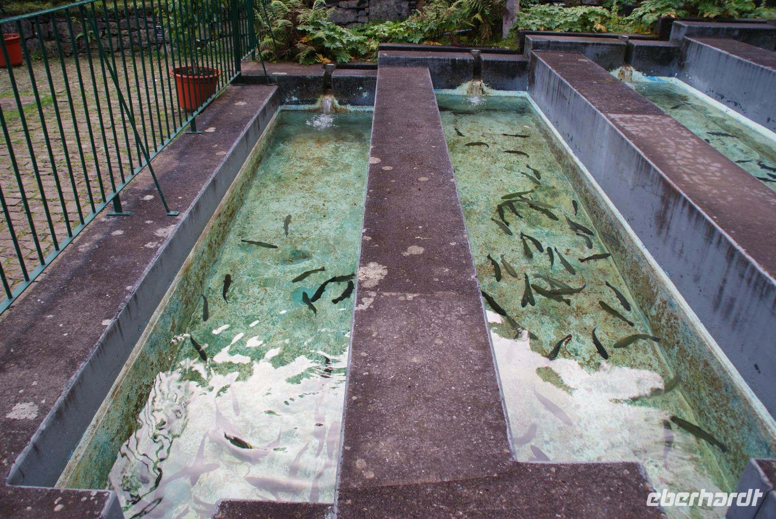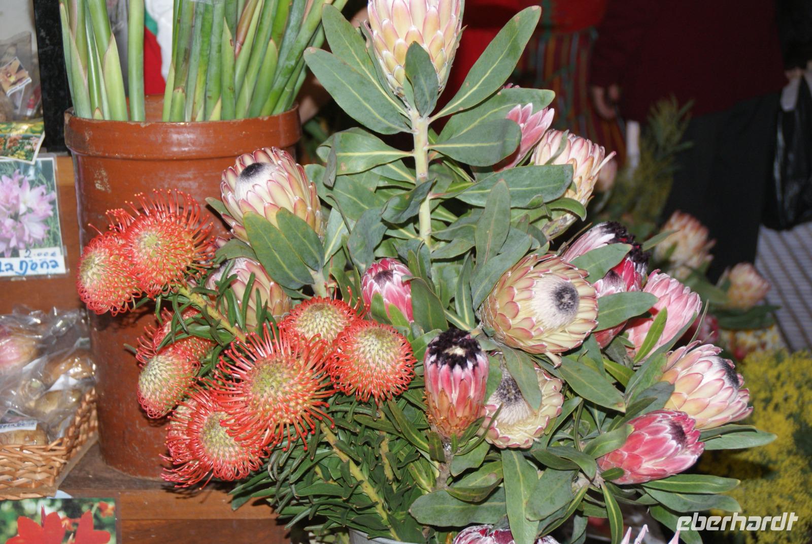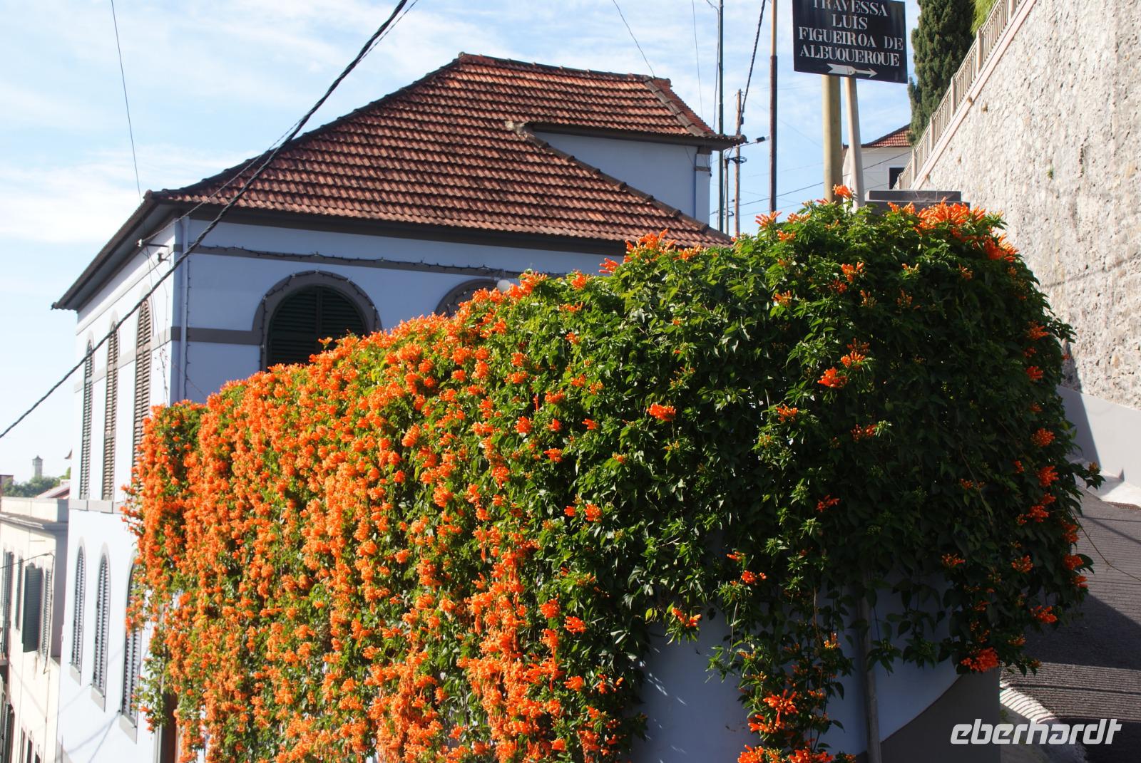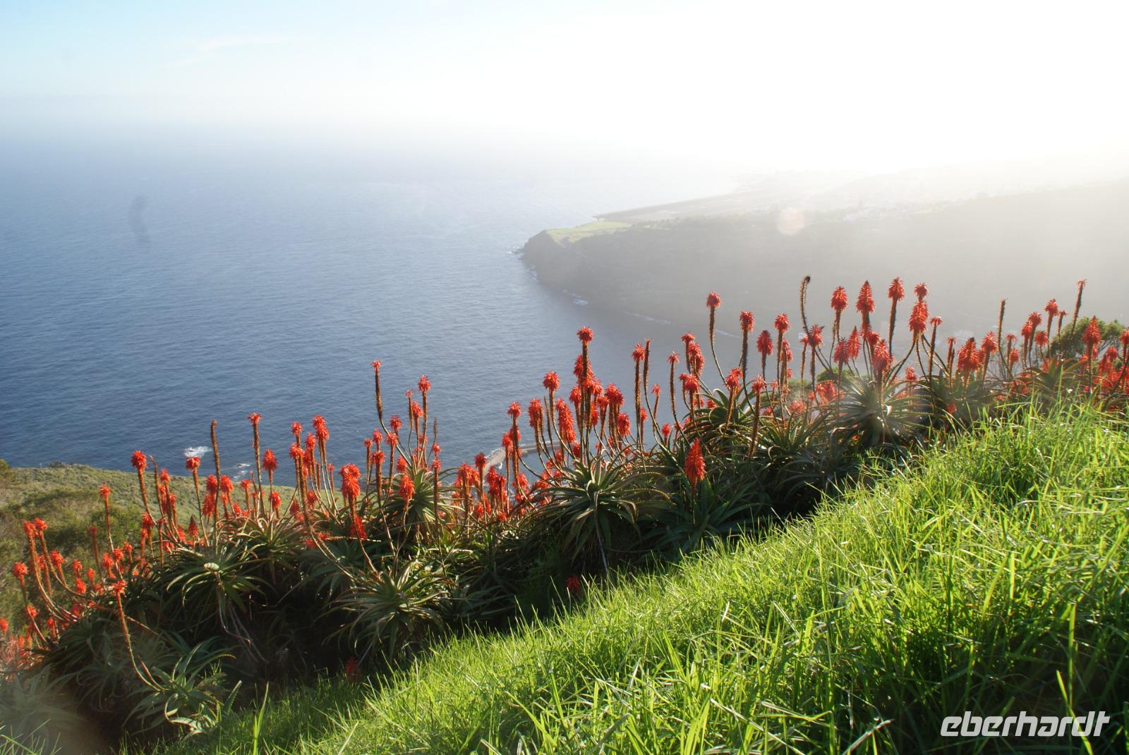 Welch ein Tag! Schon früh am Morgen lacht die Sonne bei milden Temperaturen, die sich im Laufe des Tages bis auf 24 Grad hinaufschrauben...Nach einem köstlichen Frühstück mit frisch gebackenem Brot starten wir die heutige Tour in den Nordosten der Insel mit unserer Reiseleiterin Fatima und Busfahrer Bruno. Unser erstes Ziel ist Pico do Ariero, der dritt höchste Berg der Insel Madeira. Von der Küste aus begeben wir uns durch vier Vegetationsstufen und starten von tropisch und subtropisch bis hin zur alpinen Vegetation in luftiger Höhe, wo dann nur noch Pflanzen wachsen, die die Kälte vertragen können wie beispielsweise Stechginster, Heidelbeeren, etc. Angekommen auf 1818m Höhe haben wir eine herrliche Fernsicht über die komplette Insel, die von West nach Ost 57 Km und von Nord nach Süd 23 Km breit ist. So sehen wir unter anderem die Hochebene von Paul da Serra und können bis Funchal hinab sehen. Ideales Bergwetter, dazu ein leichter Wind und auch hier oben angenehm milde Temperaturen. Der weitere Vormittag führt uns nach Ribeiro frio, dem kalten Bach, wo wir uns zunächst die Forellenzucht anschauen und uns anschließend auf unsere erste Levadawanderung begeben. Levadas sind die bekannten Bewässerungskanäle, die die Insel umsäumen und insbesondere den trockeneren Süden mit reichlich Wasser versorgen. Am Aussichtspunkt Balcoes haben wir zum einen den herrlichen Blick auf die umliegende Bergwelt und auch die possierlichen Madeira Buchfinken ziehen uns in ihren Bann, erfreuen sich über unser mitgebrachtes Vogelfutter. Wieder im Tal angekommen, fahren wir weiter Richtung Küste. Links und rechts des Weges sehen wir Avocadobäume, Papayapflanzen, Bananen, Baumtomaten, Kaffeesträucher und die sogenannte Cherimoya, auch Zuckerapfel genannt. Unser Mittagsziel ist Santana mit seinen für Madeira bekannten strohgedeckten Häusern, wo wir zum ersten Mal den berühmten schwarzen Degenfisch, den Espada, testen. Nach einem reichhaltigen Mahl entstehen herrliche Aufnahmen mit den bunten Häusern, die rund um das Rathaus stehen. Wie wir von Fatima erfahren, leben in Santana noch rund zwanzig Familien auf diese traditionelle Art und Weise und wir hören, dass ein solches Strohdach alle vier Jahre erneuert werden muss und der Austausch ca. 2000 € kostet. Trotz allem eine bescheidene Art des Wohnens, denn Platz ist wenig, so dass sich Küche und Badezimmer außerhalb des Hauses befinden. Nach einem Fotostopp mit Blick auf Faial und sogar die Ostspitze der Insel spazieren wir gemütlich am Meer entlang, besichtigen in Porto da Cruz eine Zuckerrohrfabrik und genießen auf Einladung von Eberhardt TRAVEL eine leckere Poncha. Diese Spezialität Madeiras besteht auf Zuckerrohrschnaps, Zitrone, Orangen-oder Maracujasaft und Honig und ist einfach nur lecker. Bevor wir nach Funchal zurückkehren stoppen wir nochmals am Pico do Facho, von wo wir einen schönen Blick auf die Südseite Madeiras und den Flughafen mit der besonderen Landebahn haben. Wie wir hören, war diese einst nur 1600 m lang, wurde jedoch nach und nach verlängert und misst seit dem Jahr 1986 bereits 2800 m. Zurück in der Hauptstadt Madeiras, die übersetzt „Fenchel" (Funchal) bedeutet, genießen wir das heutigen Themenbuffet „Fisherman's Night" und erfreuen uns an den vielen Köstlichkeiten. Beim anschließenden Folkloreabend in der Hotelbar unterhält uns eine einheimische Gruppe auf das Beste und abschließend schwingen wir alle gemeinsam das Tanzbein.