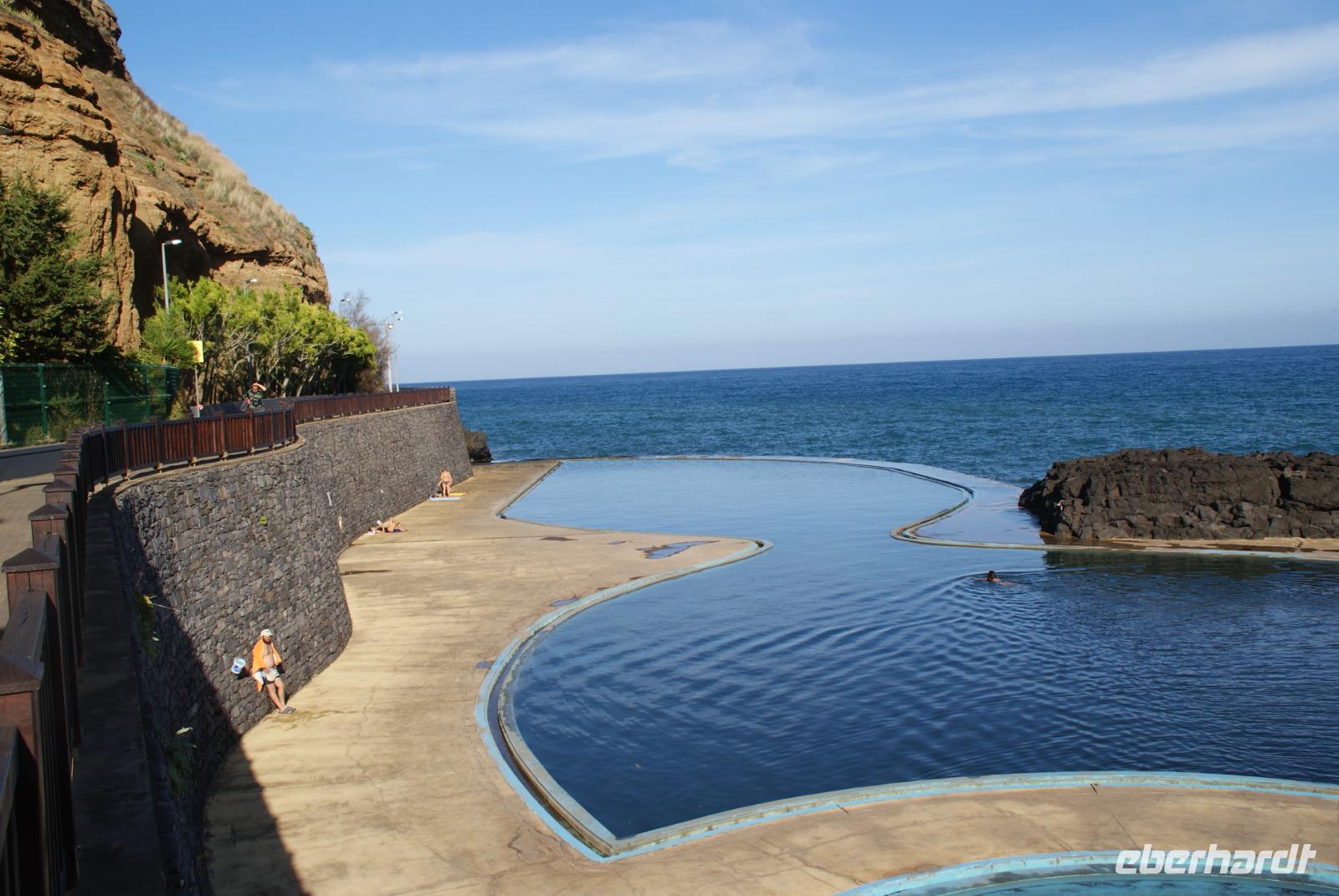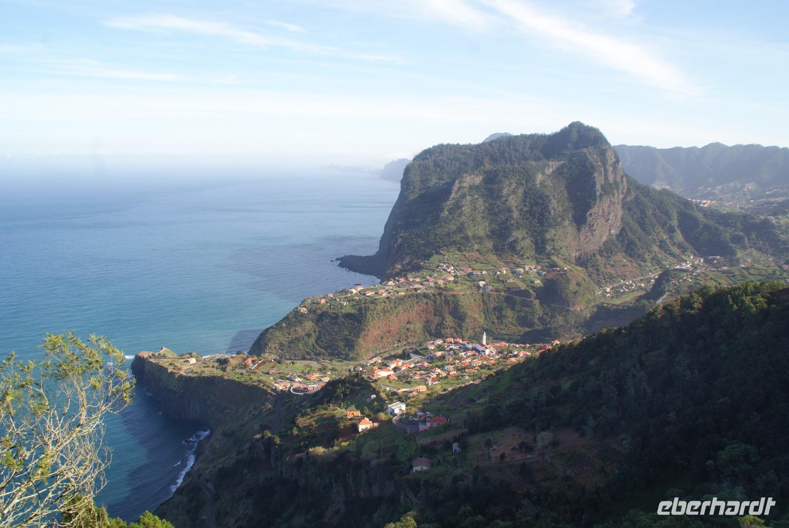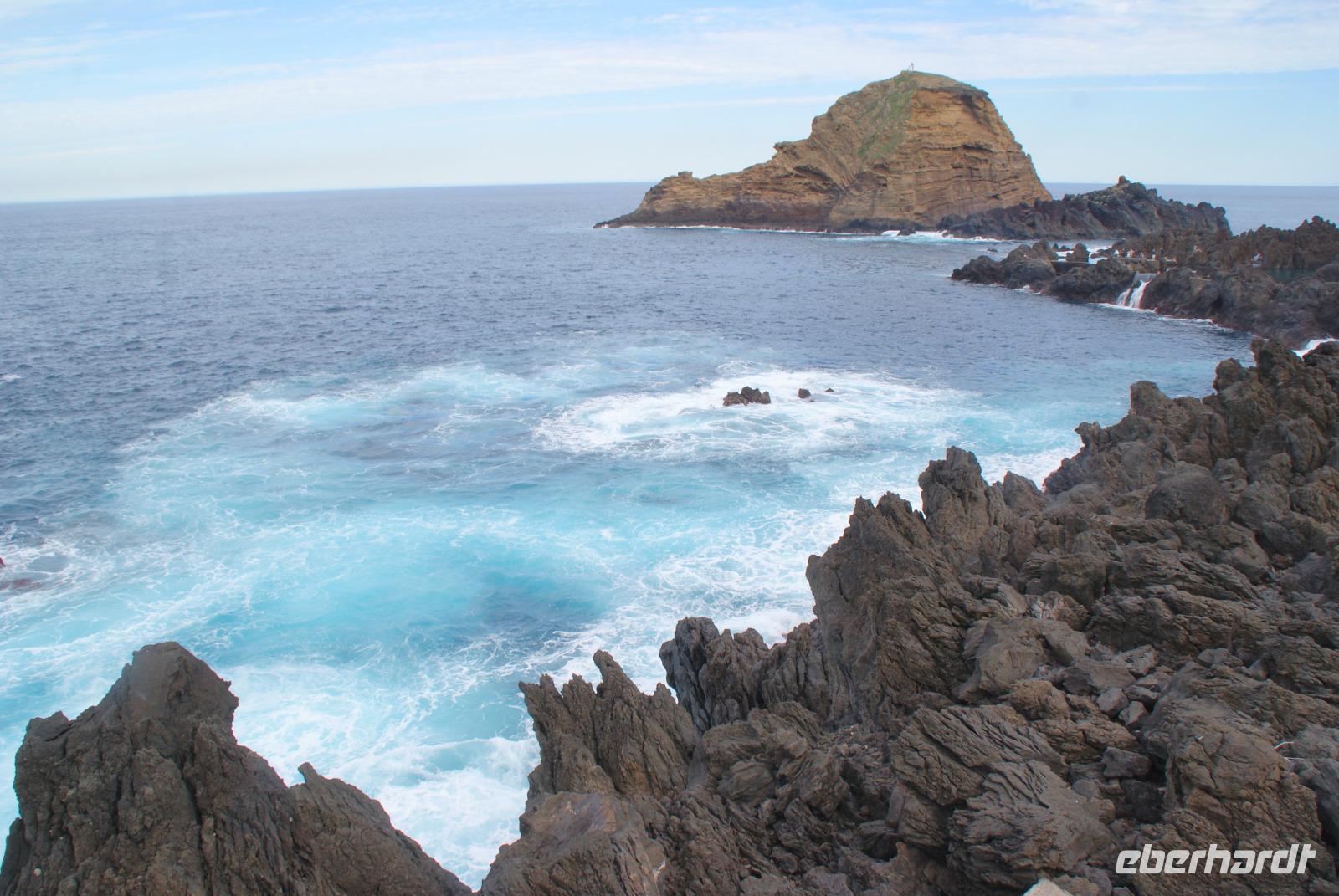 Am heutigen Tag lernen wir den Nordwesten der Insel kennen, Beinahe komplett starten wir unsere Tour mit einem ersten Halt in Ribeira Brava dem wilden Bach, der auch heute eher ein Bächlein ist. Wir spazieren durch das Dorf, welches direkt am Meer liegt, schauen auf den Markt, ins Café oder erhaschen einen Blick in die gefüllte Benediktinerkirche aus dem 15. Jahrhundert, in der gerade eine Messe stattfindet und an der viele Madeirenser teilnehmen. Weiter geht die Fahrt Richtung Norden über den Encumeada Pass und schon bald befinden wir uns auf 1007m Höhe. Hier sind wir von einer herrlichen Bergwelt umgeben und blicken auf den Pico dos Torres, der wie ein Drachenrücken aussieht. Auf der höchsten Stelle des Passes halten wir und sehen von hier gleichzeitig die Nord-und Südseite der Insel. All dies bei fantastischem Wetter und auch in der Höhe bei sehr milden Temperaturen. Auf der Hochebene Paul da Serra befindet sich ein Vulkankrater, der mit Wasser gefüllt einen schönen See bildet-ein seltenes Phänomen, welches selbst Reiseleiterin Fatima entzückt. An der Nordseite angekommen fotografieren wir das „Bachfenster"-Ribeira da Janela, eine Art Fenster im Felsen. Mittags erreichen wir das schöne Örtchen Porto Moniz, welches für seine Naturschwimmbecken mit Meerwasser gefüllt, bekannt ist. Hier essen die einen zu Mittag, die anderen haben die Zeit für ein Bad vor Ort eingeplant. Auch hier an der Nordküste ist es heute sommerlich warm, so dass das Schwimmen im Meerwasser nur ein klein wenig Überwindung kostet. Nachdem wir diverse Wasserfälle an der Straße passieren, spazieren wir am Nachmittag durch das Bergdorf Sao Vincente, welches idyllisch in Meeresnähe liegt. Einen kurzen Besuch statten wir der schöne Dorfkirche ab und kehren in ein einheimisches Café ein. Von Fatima haben wir ja heute bereits viele Kaffeespezialitäten kennengelernt. So ist ein Espresso= Bica, ein Espresso mit Milch= Garoto, ein großer Kaffee mit Milch= Chinesa, ein schwarzer Kaffee= Chino-es kann also mit der Verständigung nichts mehr schief gehen. Nach einem erlebnisreichen Tag und wunderschönen Eindrücken Madeiras Nordwesten kehren wir nach Funchal zurück und haben noch ausreichend Gelegenheit das schöne Wetter zu genießen und ein wenig auszuruhen. Abends werden wir köstlich am Internationalen Buffet verpflegt und den Abschluss bildet ein Fado Abend in der Hotelbar, womit wir auch diesen besonderen Teil der portugiesischen Kultur genossen haben.