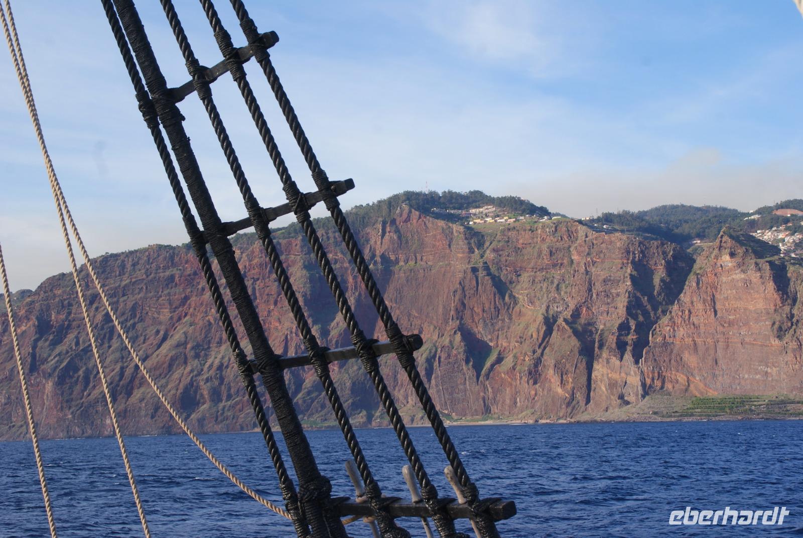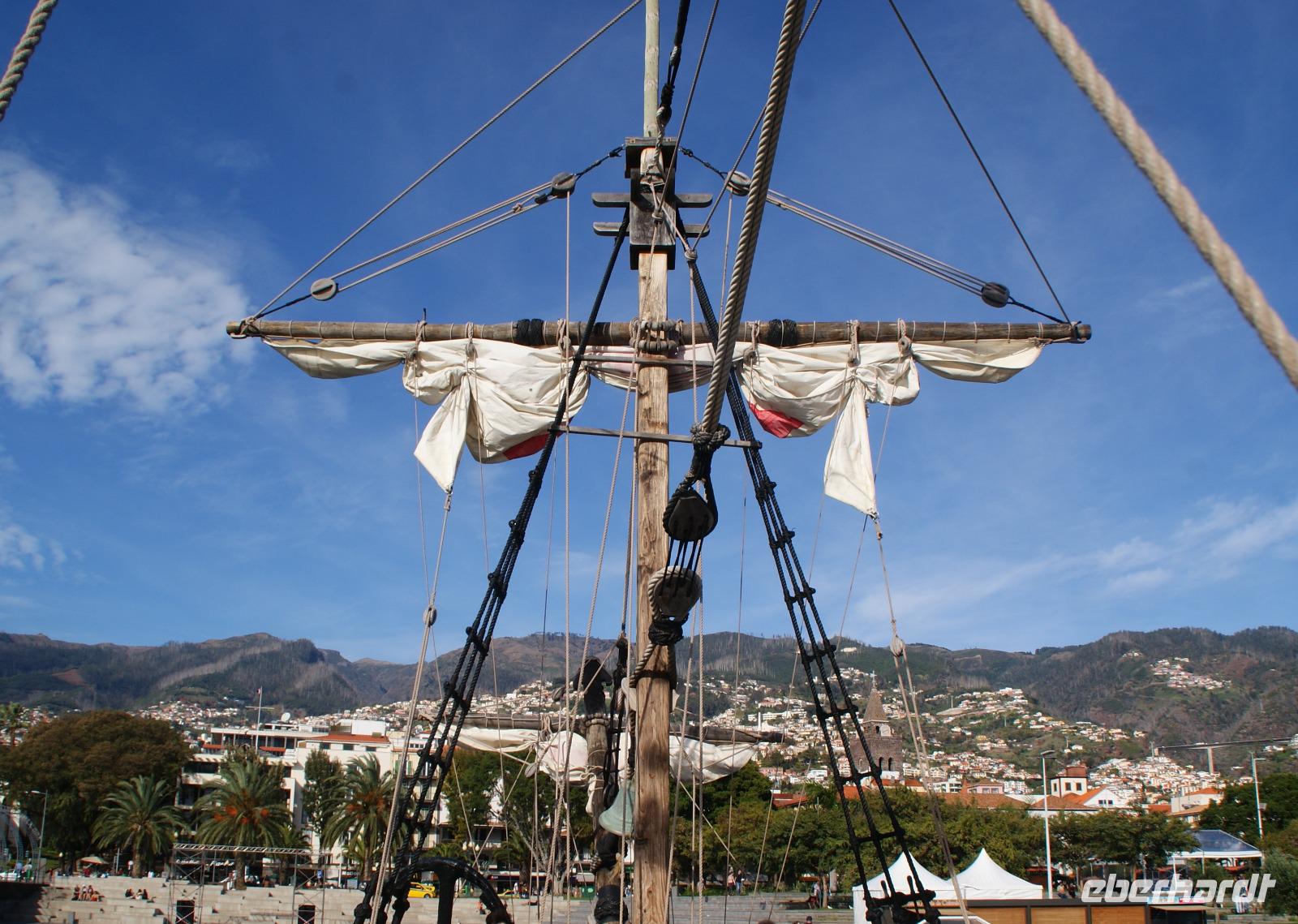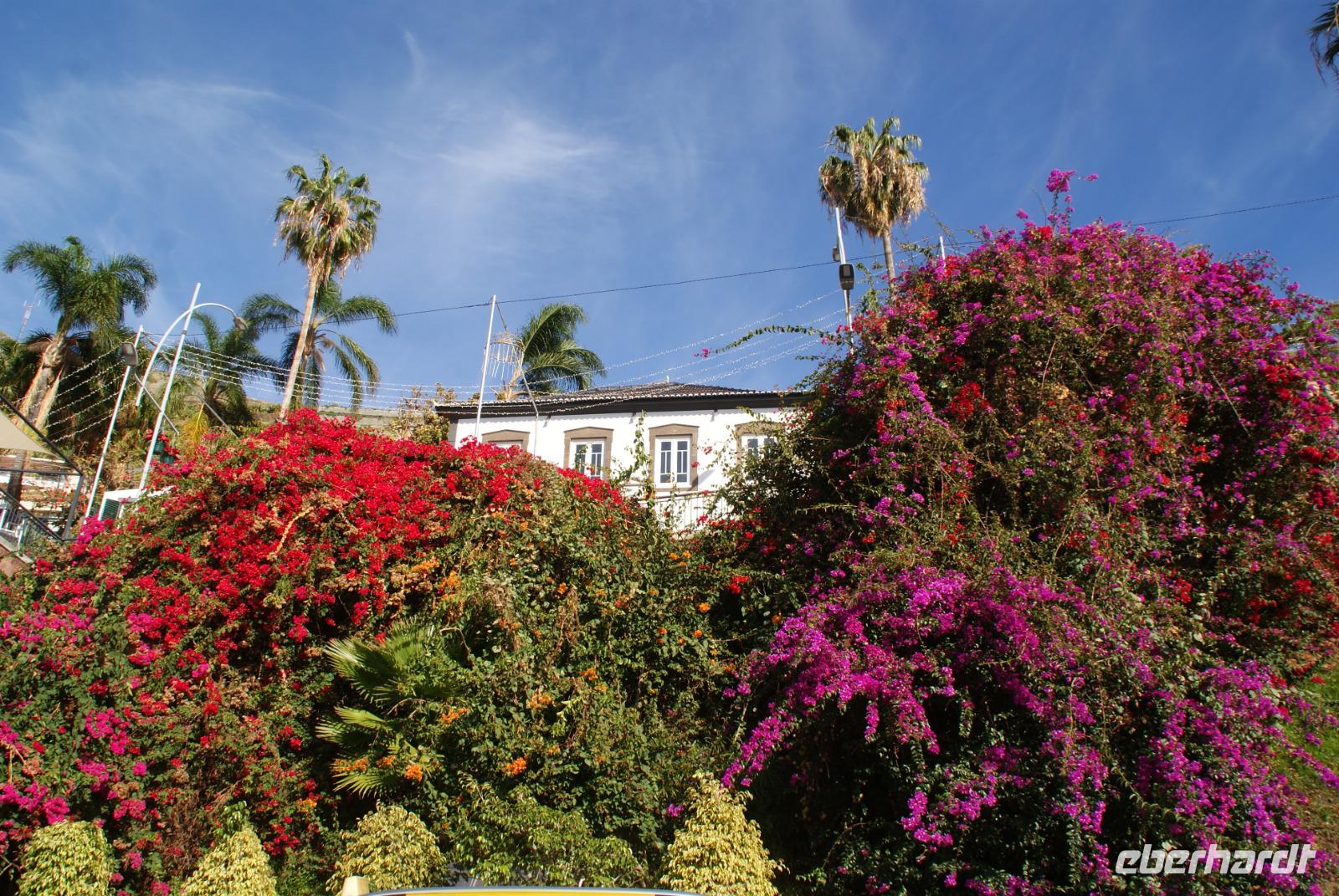 Nach einer erholsamen Nacht und leckerem Frühstück brechen wir auf, um zunächst eine tolle Aussichtsplattform kennenzulernen. So fahren wir zum 355m hoch gelegenen Pico dos Barcelos, von dem wir eine 360° Sicht über ganz Funchal haben. Bei bestem Wetter bietet sich uns eine traumhafte Kulisse und wir begreifen die gesamte Dimension der unter uns liegenden Stadt. Im Anschluss fahren wir auf 1086m zu Eira do Serrado, von wo wir in schwindelnder Höhe auf das unter uns liegende Nonnental (Curral das Freiras) hinabschauen. Es bietet sich uns rundherum ein gewaltiges Gebirge und wir genießen die frische Luft und die neuen Eindrücke. Bevor es weiter geht, gönnen wir uns einen köstlichen portugiesischen Kaffee auf der Sonnenterrasse und könnten hier gut und gerne noch viel länger bleiben. Jedoch werden wir kurze Zeit später in Ponte do Sol auf der Bananenplantage erwartet. Hier lernen wir viel Wissenswertes über die Aufzucht und Forschung der jährlich ca. 17.000 Bananenpflanzen kennen, die hier verkauft werden. So berichtet man, dass die Madeira Bananen deshalb so süß sind, da diese mindestens 12 Monate reifen, im Gegensatz zu Südamerika, wo diese bereits nach nur 6 Monaten geerntet werden. Wenn eine Staude Früchte getragen hat, stirbt sie danach ab. In der Reifezeit jedoch wächst bereits die nächste Staudengeneration nach, so dass ein ständiger Kreislauf entsteht. Damit die Madeira Bananen so gut gedeihen, benötigen diese viel Wärme, Luftfeuchtigkeit und mind. 30l Wasser pro Tag. Unsere Tour geht weiter und führt uns in das berühmteste Fischerdorf Madeiras-Camara de Lobos, welches übersetzt „Bucht der Seelöwen" bedeutet. Diese waren in vergangenen Jahrhunderten hier vertreten, sind jedoch heutzutage beinahe ausgerottet und nur noch auf den unbewohnten Naturschutzinseln der „Desertas" zu finden. Da Fatima uns genügend Zeit lässt, können wir das schöne Dorf in Ruhe zu Fuß erkunden und das Treiben auf uns wirken lassen. Eine malerische Kulisse bietet sich am Hafen mit den bunten Fischerbooten, den blühenden Bougainvilleas, den wunderschönen Häusern und der Bucht, die vor uns liegt. Nun kehren wir zurück nach Funchal, wo wir den freien Nachmittag unterschiedlich gestalten. Manche von uns relaxen, andere fahren zum Monte Palace, dem Tropischen Garten. Der größte Teil der Gruppe fährt mit der Santa Maria, einem Nachbau eines der Schiffe Columbus auf eine dreistündige Tour hinaus. Das Schiff, welches einst in Camara de Lobos anlässlich der Expo in Lissabon gebaut wurde (und Madeira und den berühmten Madeirawein repräsentieren sollte), gleicht aus heutiger Sicht einer „Nussschale" und wir können es nicht glauben, dass man mit dieser bescheidenen Größe einst die Welt umsegelte. Somit erleben wir hier einen herrlichen Nachmittag mit beeindruckender Kulisse der Küste Madeiras, die wir nun vom Wasser aus kennenlernen. Nach kurzer Zeit treffen wir auf eine Delfinschule und sind glücklich so viele Tiere direkt neben unserem Schiff beobachten zu können. Wir fahren die Küste entlang und sehen die Sehenswürdigkeiten, die wir heute am Vormittag aus der Nähe besucht haben. Madeirawein und der leckere Weihnachtskuchen versüßen uns die Reise. Am frühen Abend kehren wir voller Eindrücke zurück ins Hotel Panoramico und ein italienisches Buffet rundet einen erneut tollen Tag auf Madeira ab.