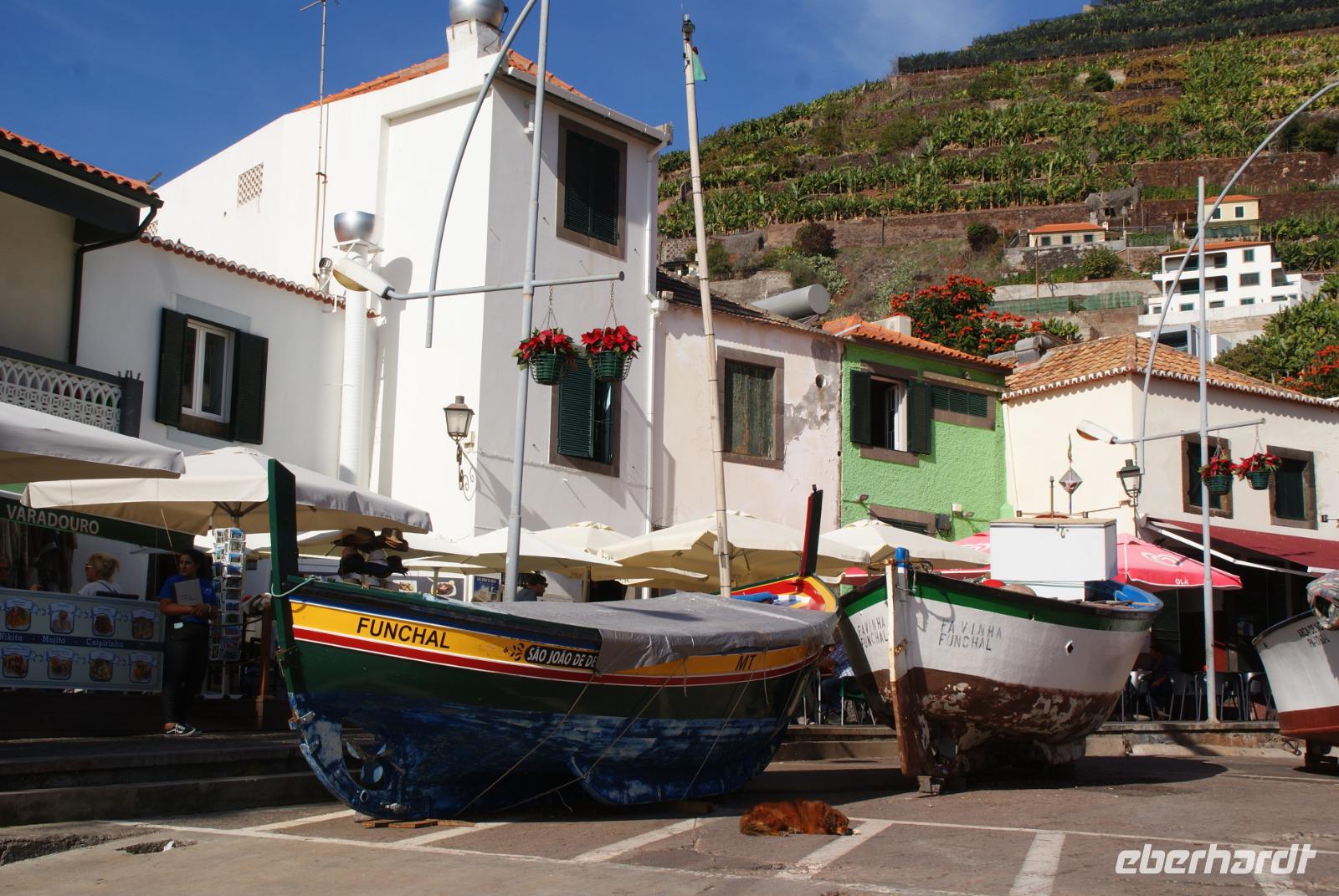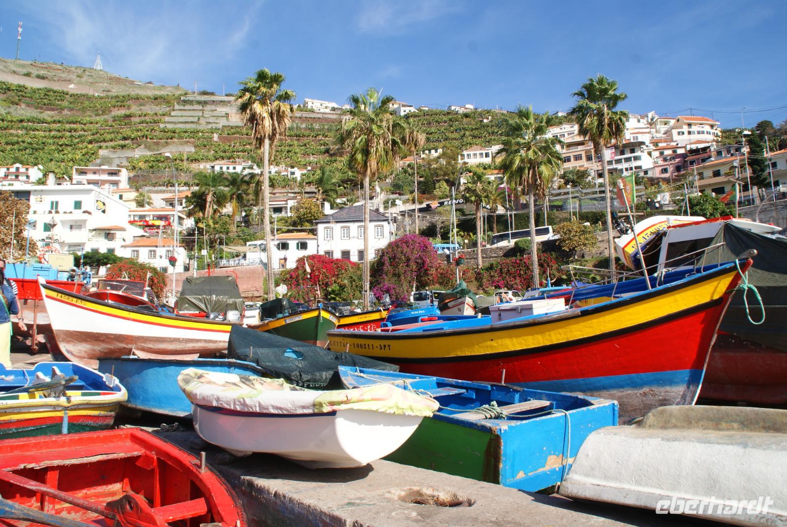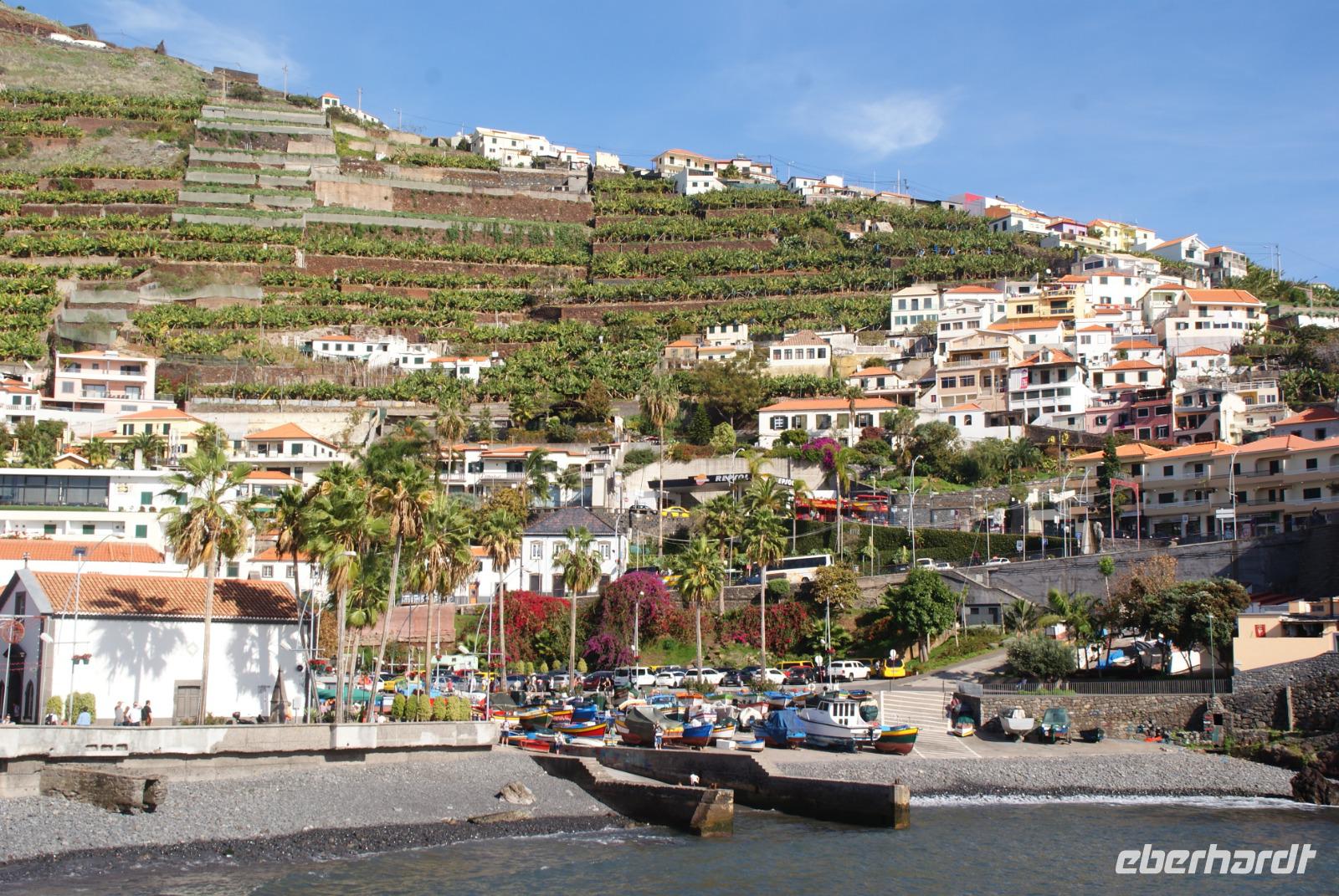 Nach einer erholsamen Nacht und leckerem Frühstück brechen wir auf, um zunächst eine tolle Aussichtsplattform kennenzulernen. So fahren wir zum 355m hoch gelegenen Pico dos Barcelos, von dem wir eine 360° Sicht über ganz Funchal haben. Bei bestem Wetter bietet sich uns eine traumhafte Kulisse und wir begreifen die gesamte Dimension der unter uns liegenden Stadt. Im Anschluss fahren wir auf 1086m zu Eira do Serrado, von wo wir in schwindelnder Höhe auf das unter uns liegende Nonnental (Curral das Freiras) hinabschauen. Es bietet sich uns rundherum ein gewaltiges Gebirge und wir genießen die frische Luft und die neuen Eindrücke. Bevor es weiter geht, gönnen wir uns einen köstlichen portugiesischen Kaffee auf der Sonnenterrasse und könnten hier gut und gerne noch viel länger bleiben. Jedoch werden wir kurze Zeit später in Ponte do Sol auf der Bananenplantage erwartet. Hier lernen wir viel Wissenswertes über die Aufzucht und Forschung der jährlich ca. 17.000 Bananenpflanzen kennen, die hier verkauft werden. So berichtet man, dass die Madeira Bananen deshalb so süß sind, da diese mindestens 12 Monate reifen, im Gegensatz zu Südamerika, wo diese bereits nach nur 6 Monaten geerntet werden. Wenn eine Staude Früchte getragen hat, stirbt sie danach ab. In der Reifezeit jedoch wächst bereits die nächste Staudengeneration nach, so dass ein ständiger Kreislauf entsteht. Damit die Madeira Bananen so gut gedeihen, benötigen diese viel Wärme, Luftfeuchtigkeit und mind. 30l Wasser pro Tag. Unsere Tour geht weiter und führt uns in das berühmteste Fischerdorf Madeiras-Camara de Lobos, welches übersetzt „Bucht der Seelöwen" bedeutet. Diese waren in vergangenen Jahrhunderten hier vertreten, sind jedoch heutzutage beinahe ausgerottet und nur noch auf den unbewohnten Naturschutzinseln der „Desertas" zu finden. Da Fatima uns genügend Zeit lässt, können wir das schöne Dorf in Ruhe zu Fuß erkunden und das Treiben auf uns wirken lassen. Eine malerische Kulisse bietet sich am Hafen mit den bunten Fischerbooten, den blühenden Bougainvilleas, den wunderschönen Häusern und der Bucht, die vor uns liegt. Nun kehren wir zurück nach Funchal, wo wir den freien Nachmittag unterschiedlich gestalten. Manche von uns relaxen, andere fahren zum Monte Palace, dem Tropischen Garten. Der größte Teil der Gruppe fährt mit der Santa Maria, einem Nachbau eines der Schiffe Columbus auf eine dreistündige Tour hinaus. Das Schiff, welches einst in Camara de Lobos anlässlich der Expo in Lissabon gebaut wurde (und Madeira und den berühmten Madeirawein repräsentieren sollte), gleicht aus heutiger Sicht einer „Nussschale" und wir können es nicht glauben, dass man mit dieser bescheidenen Größe einst die Welt umsegelte. Somit erleben wir hier einen herrlichen Nachmittag mit beeindruckender Kulisse der Küste Madeiras, die wir nun vom Wasser aus kennenlernen. Nach kurzer Zeit treffen wir auf eine Delfinschule und sind glücklich so viele Tiere direkt neben unserem Schiff beobachten zu können. Wir fahren die Küste entlang und sehen die Sehenswürdigkeiten, die wir heute am Vormittag aus der Nähe besucht haben. Madeirawein und der leckere Weihnachtskuchen versüßen uns die Reise. Am frühen Abend kehren wir voller Eindrücke zurück ins Hotel Panoramico und ein italienisches Buffet rundet einen erneut tollen Tag auf Madeira ab.