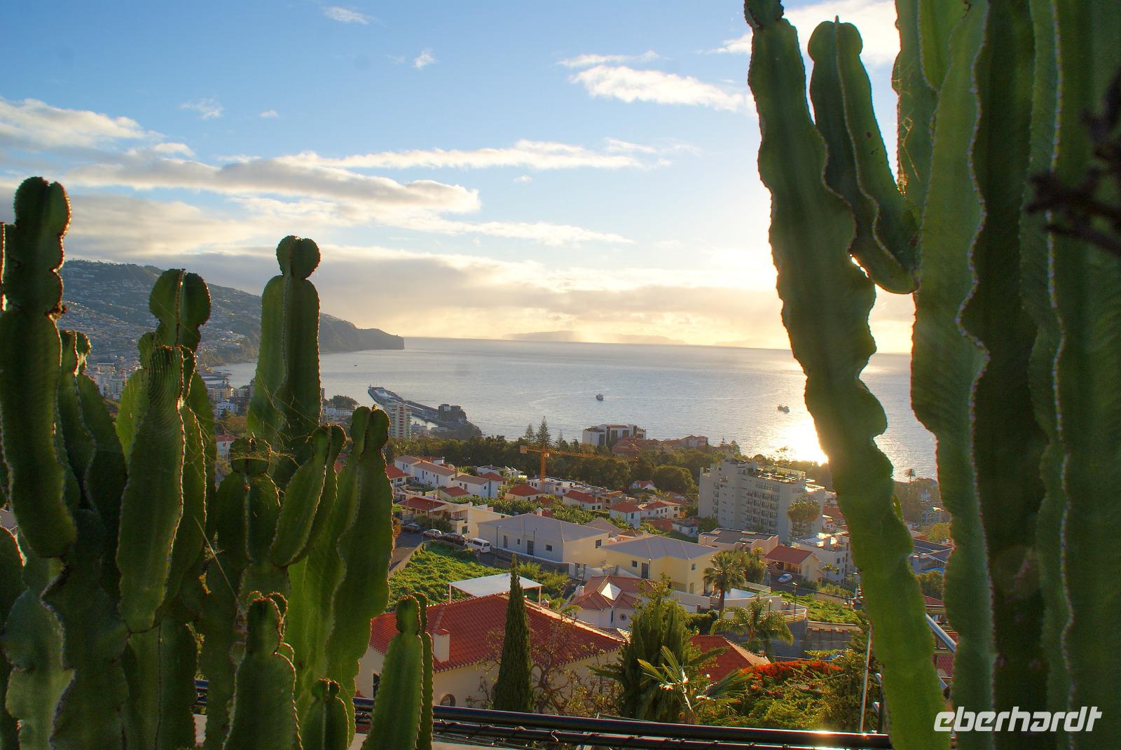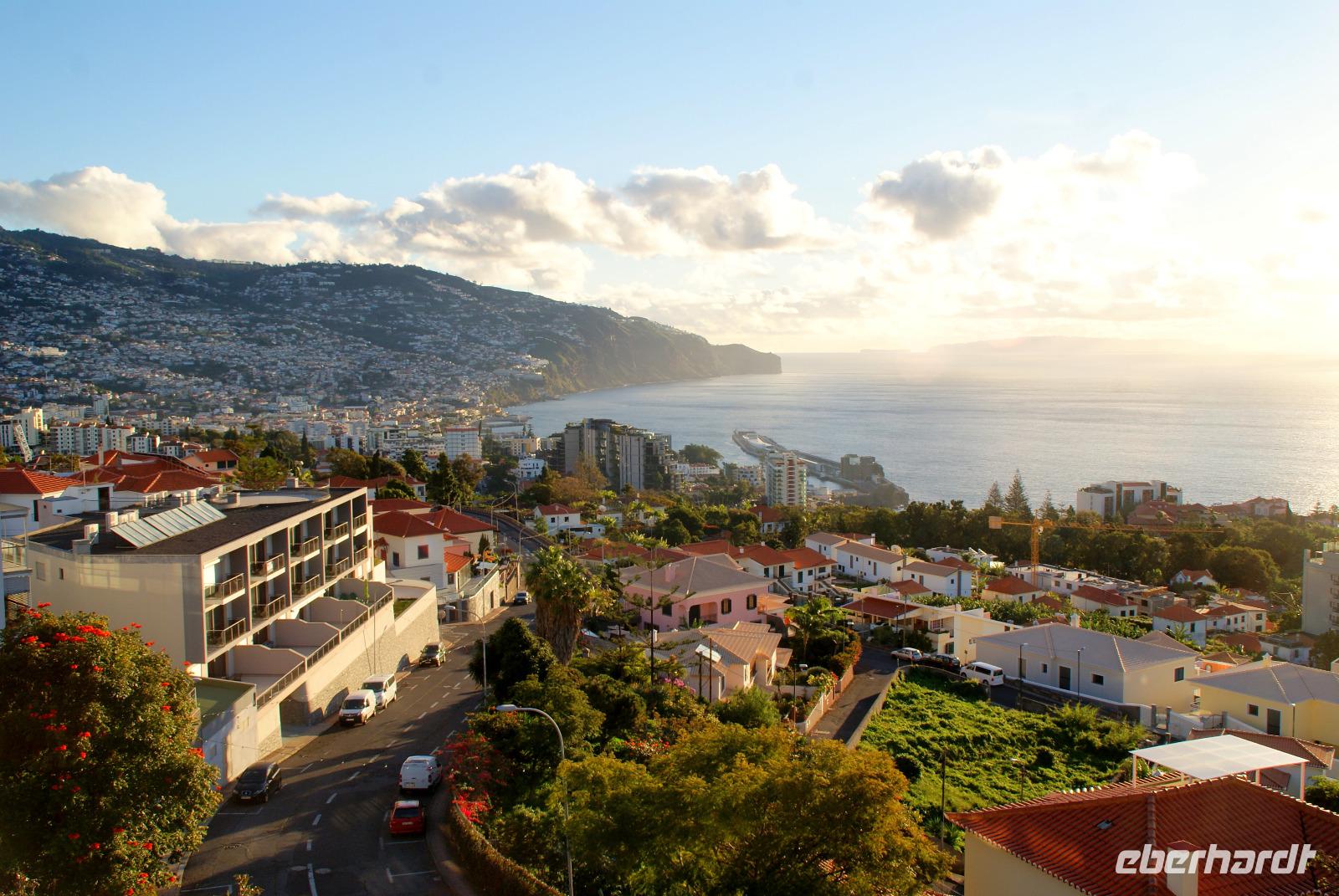 Der heutige Tag führt uns zunächst zum Pico dos Barcelos, einer wunderschönen Aussichtplattform auf 355m Höhe gelegen mit Blick auf Funchal und die umliegende Bergwelt. Hier oben erkennt man die Dimensionen so richtig und wir können uns bestens orientieren. Auch ist dies ein beliebter Treffpunkt um Silvester das tolle Feuerwerk erleben zu können...Weiter geht es zum Eira do Serrado (1086m hoch), welches uns bei bestem Wetter einen tollen Blick auf das unter uns liegende Nonnental (Curral das Freiras) und die Berge um uns herum bietet. Gefühlt alleine sind wir hier exklusiv unterwegs und genießen Natur und die herrliche Luft. Auf der Sonnenterrasse kosten wir die Kaffeespezialitäten der Insel und könnten hier noch gerne lange bleiben. Doch weiter geht's zum berühmtesten Fischerdorf der Insel, Camara de Lobos (übersetzt Bucht der Seelöwen), welches bereits einst Winston Churchill als seinen Lieblingsort erklärte und um 1950 herum so manches Bild hier malte...Den Namen erhielt es durch den einstigen Entdecker, da sich hier im 15. Jahrhundert noch viele Seelöwen aufhielten. Diese sind heute nur noch auf den unbewohnten, nahegelegenen Desertas (Naturschutzinseln gegenüberliegend von Madeira) anzutreffen...Wir spazieren durch den Ort und viele schöne Bilder entstehen mit den malerischen bunten Fischerbooten im Hafen, den schönen Lokalen und tollen Pflanzen, die uns eine wunderschöne Kulisse bieten. Fahrer Humberto chauffiert uns nun zum Aussichtspunkt Cabo Girao, 580m hoch gelegen und mit unglaublichem Ausblick von Europas höchster Steilküste. Wir blicken bis Funchal in die Ferne und die erbaute gläserne Plattform lässt uns bis tief nach unten schauen. Eine tolle Kulisse und auch hier profitieren wir davon, dass sich aktuell nur wenige Touristen auf der Blumeninsel befinden. Der letzte Teil unseres Ausfluges führt uns nach Madalena do Mar, wo wir uns eine Bananenplantage ansehen, die entlang einer kleinen Levada angebaut wurde. Fatima führt uns entlang der Stauden und erklärt, dass die Madeira Bananen deshalb so süß sind, da diese mindestens 12 Monate reifen, im Gegensatz zu Südamerika, wo diese bereits nach nur 6 Monaten geerntet werden. Wenn eine Staude Früchte getragen hat, stirbt sie danach ab. In der Reifezeit jedoch wächst bereits die nächste Staudengeneration nach, so dass ein ständiger Kreislauf entsteht. Damit die Madeira Bananen so gut gedeihen, benötigen diese viel Wärme, Luftfeuchtigkeit und mind. 30l Wasser pro Tag. Um den freien Nachmittag zu genießen fahren wir zurück nach Funchal, treffen uns später zum Abendprogramm wieder und es erfolgt zunächst ein leckeres Abendessen im Panoramarestaurant Quinta Estacao, wo wir den berühmten Espetada (Rindfleischspieß) testen werden, von oben einen grandiosen Blick über die Stadt haben und genießen bei der abschließenden Lichterfahrt die wunderschöne Weihnachtsbeleuchtung und Dekoration Funchals.