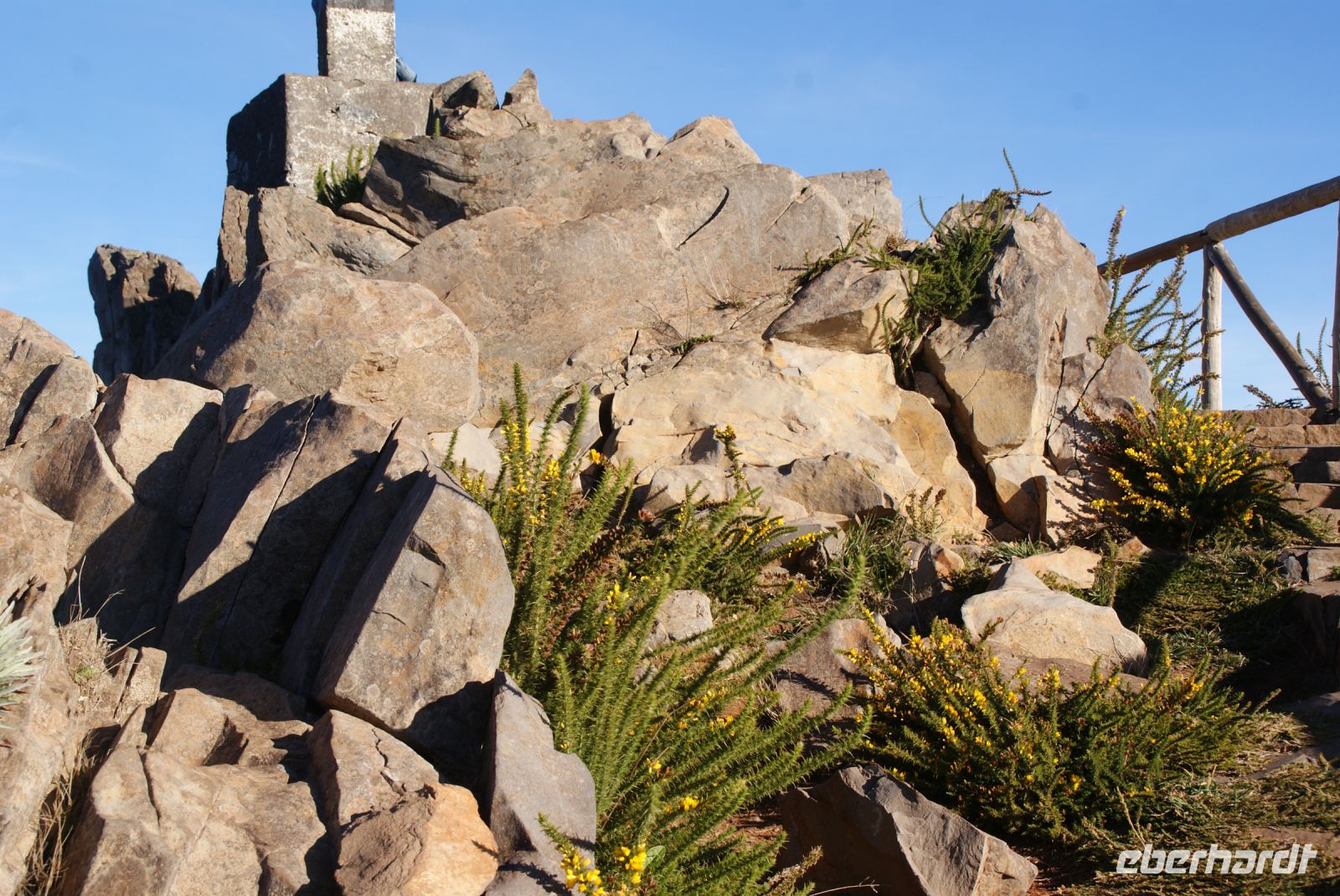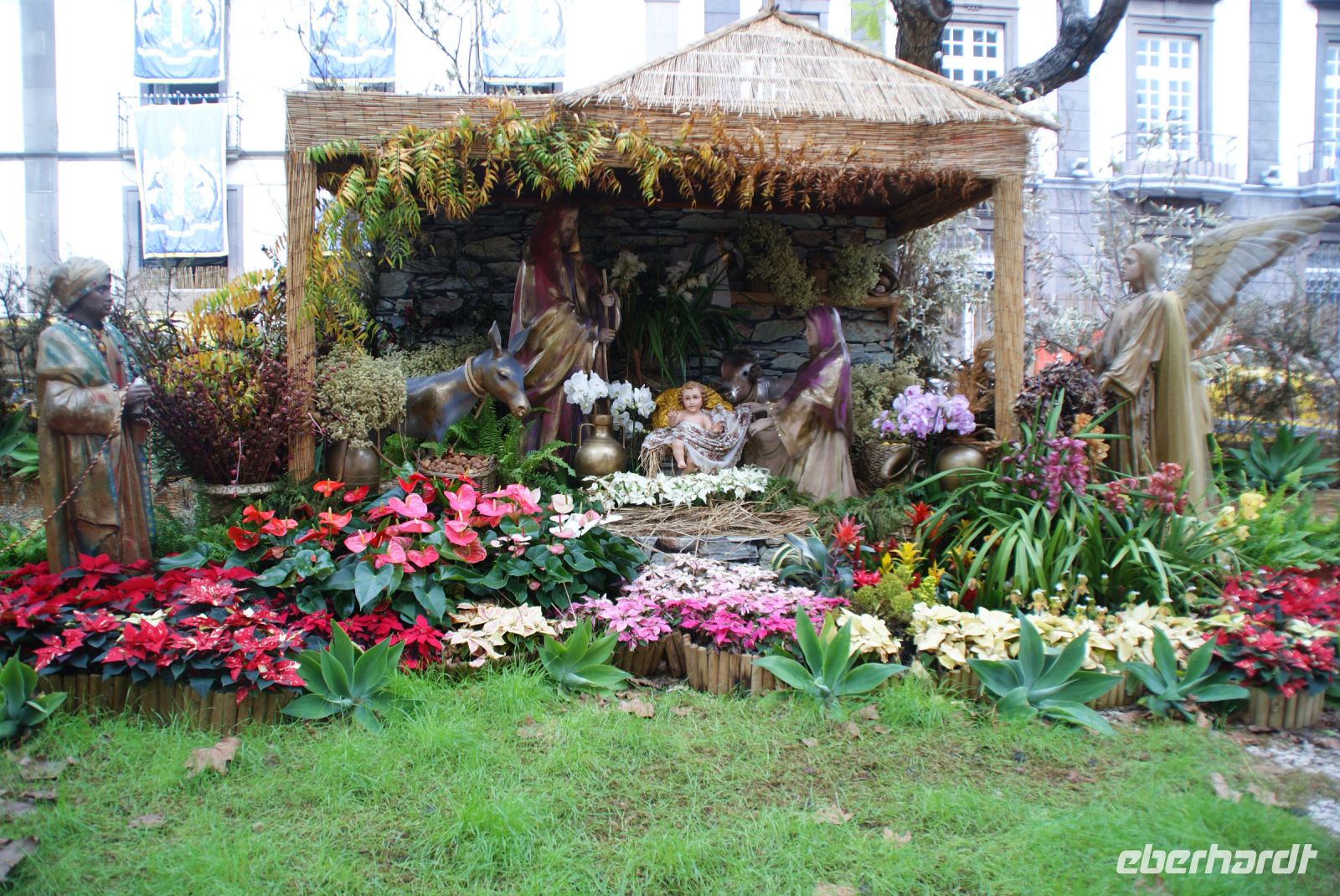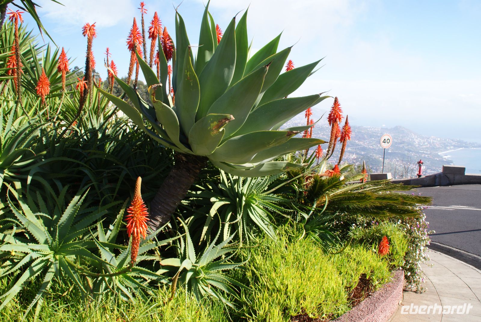 Heute lernen wir den Nordosten Madeiras kennen. Um zu unserem ersten Ziel des Tages zu gelangen fahren wir vorbei an der Wallfahrtskirche von Monte, die auf 550 m Höhe gelegen ist. Diese wurde nach einem Erdbeben von 1748 wieder aufgebaut und im Jahr 1818 eingeweiht. Hier befindet sich das Grab des letzten Kaisers Karl dem 1. von Österreich, der hier im Exil 1922 gestorben ist. Wir verlassen Funchal und befinden uns nun schon auf 700 m Höhe, wo allmählich die Besiedlung endet und es schon deutlich kühler ist. Die Natur ändert sich und es wachsen mannshohe Heidelbeersträucher, Brombeeren, Stechginster und Erika. Bei der heutigen Fernsicht entdecken wir die Nachbarinsel Porto Santo, welche 12 Km lang und nur 6 Km breit ist. 5000 Einwohner sind hier beheimatet und bekannt wurde die Insel durch ihren 9 Km langen Natursandstrand. Wir erreichen den Gipfel von Pico do Ariero und befinden uns nun auf 1810 m Höhe, der Wind pfeift, es sind nur noch 12 Grad, dafür bietet sich jedoch eine grandiose Aussicht auf die umliegenden Inseln sowie die Ostspitze Madeiras. Nachdem wir das Bergpanorama genossen haben, steuern wir unser nächstes Wanderziel an. In Ribeiro Frio wird zunächst die Forellenzucht besucht und im Anschluss erfolgt eine 1-stündige Levadawanderung zu Balcoes (Balkon auf Portugiesisch), von wo aus wir wiederum ein herrliches Bergpanorama genießen. Unseren Mittagsstopp planen wir für heute in Santana, wo wir die berühmten bunten Häuser mit Weizenstrohdächern besichtigen und natürlich auch Mittagessen wollen. Die Dächer der bunten Häuser müssen alle vier Jahre neu gedeckt werden und sind mit ca. 2000 € Kosten für die Einheimischen eine recht kostspielige Angelegenheit. Am Nachmittag halten wir zu einem schönen Spaziergang am Meer im kleinen Küstenort Porto da Cruz, wo auch eine Zuckerrohrfabrik ansässige ist und wir diese besichtigen. Im Anschluss werden wir zu einer Rumprobe eingeladen, um den hier produzierten Rum testen zu können. Bevor wir nach Funchal zurückfahren, erfolgt ein letzter Fotostopp am Pico do Facho, von wo aus wir eine direkte Sicht auf den Flughafen Madeiras haben und sogar einem Flugzeug bei der Landung zusehen können. Eine Vielzahl an Weihnachtskerzen, rot leuchtend, bieten eine tolle Kulisse. Zurück fahren wir nochmals am Flughafen vorbei und erfahren, dass die Landebahn früher nur 1600 m lang war, jedoch nunmehr seit 23 Jahren 2800 m misst und somit alle Flugzeugtypen hier landen können. Lediglich die Piloten benötigen aufgrund der hier oft herrschenden Winde eine Zusatzqualifikation. So ein ereignisreicher Tag lässt uns abends hungrig das tolle Buffet im Hotel Panoramico stürmen und eine Fado Darbietung in der Cocktailbar rundet einen weiteren, sehr erlebnisreichen Tag auf Madeira ab.