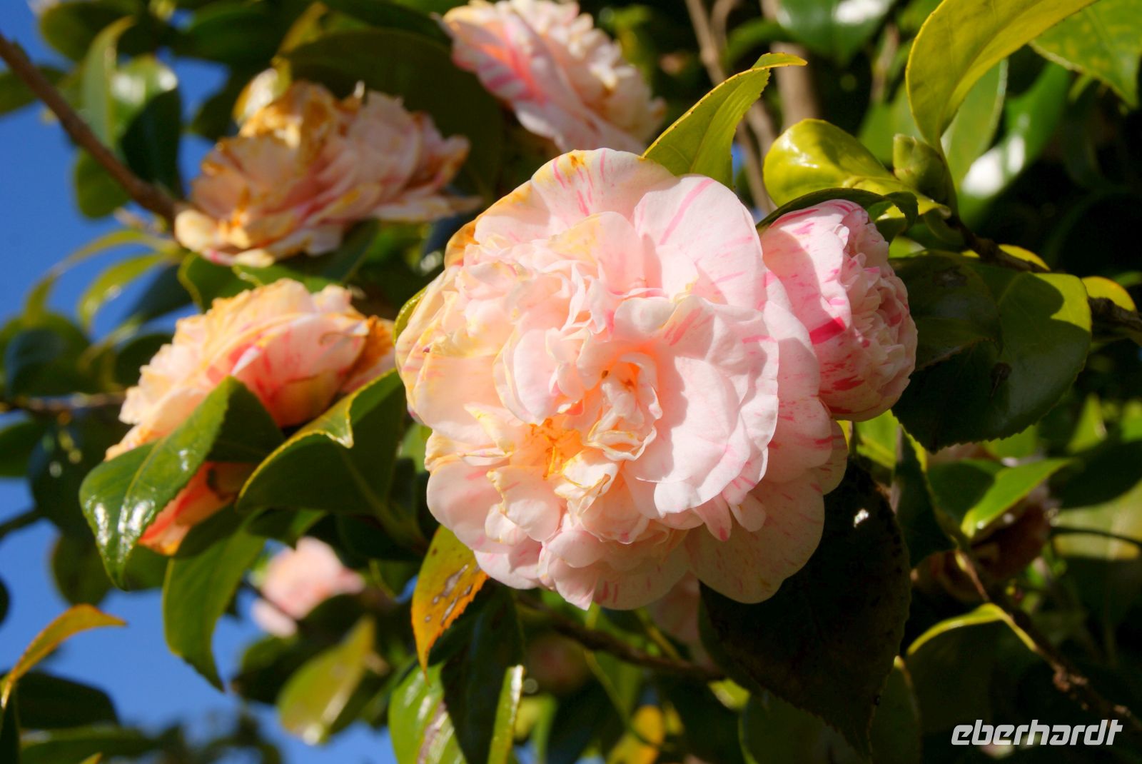 Der letzte Tag dieses denkwürdigen Jahres bricht an. Wir kehren in uns und sind sehr dankbar, dass wir diesen an einem solch wunderschönen Fleckchen Erde bei herrlichem Wetter und Temperaturen verbringen dürfen. Auf unserer Fahrt führt uns Fatima in die einheimische Kaffeekunst ein, wir lernen, was „Bica“- „Garoto“-„Chino“- „Chinesa“ bedeuten und können von nun an perfekt auf Portugiesisch unseren köstlichen Kaffee bestellen… Grins. So lacht die Sonne schon am frühen Morgen und wir starten zunächst zum Orchideengarten „Quinta da Boa Vista“, also zum sogenannten Herrenhaus mit schöner Aussicht. Hier finden wir in einem großen Gelände unzählige Orchideenarten vor und es entstehen herrliche Aufnahmen der Pflanzen, die in Form und Farben nicht zu überbieten sind. Besonders schön ist der sogenannte „Jadewein“ eine grünliche Hängeorchidee…einfach toll. Unsere Silvestertour führt uns weiter zum Palheiro „Blandys“ Garden, der vor ca. 200 Jahren angelegt wurde. Hier gewährt Familie Blandy Besuchern einen Einblick in ihren privaten und sehr gepflegten Park mit Aussicht auf Funchal und den benachbarten Palheiro Golfplatz. Besonders bekannt ist die Anlage für die beeindruckende Kamelien Allee, deren unterschiedliche Kamelienarten hier von November-April in verschiedensten Farben blühen. Die herrliche Kamelienallee mit verschiedenfarbigen Blüten zieht uns in ihren Bann. Die Vielfalt der verschiedenen Pflanzen auf dem Anwesen hier scheint unendlich, von der Königsprotea und Nadelkissenprotea aus Südafrika bis hin zur Magnolie, viele Strelitzien, riesige Bäume, kunstvoll kreierte Parkanlagen-ein gepflegtes Anwesen so weit das Auge reicht. Natürlich gibt es neben dem schmucken Wohnhaus der Familie Blandy auch die Johanneskapelle aus dem 18. Jahrhundert sowie ein Jagdhaus, welches heute als Hotel fungiert. Im ebenfalls ansässigen Teehaus kehren wir ein, sitzen auf der Sonnenterrasse und lassen uns einen Cafezinho schmecken. Danach kann jeder den weiteren Tag bis zum Silvesterabend nach Lust und Laune verbringen. Einige aus unserer Gruppe machen sich mit mir auf zu einer Wanderung nach Camara de Lobos, dem berühmten Fischerdorf und Nachbarort. Wir wählen eine schöne Route, die größtenteils am Meer entlang geht und wir somit dem heutigen Silvesterrummel der Stadt entgehen. Einfach herrlich, ein tolles Panorama, sommerliche Temperaturen-schöner kann man das Jahr doch nicht ausklingen lassen. Abends staunen und genießen wir das grandiose Silvesterbuffet. Nachdem wir vorzüglich gespeist haben und die heutigen Getränke zum Abendessen inkludiert sind, gehen wir hoch auf die Dachterrasse des Hotel Panoramico, von wo aus wir als Hotelgäste exklusiv das weit über die Grenzen hinaus bekannte Silvesterfeuerwerk erleben zu dürfen. Es wird nochmals Sekt für die Gäste spendiert und schon bald staunen wir über die Vielfalt des Feuerwerks und über die unglaubliche 360° Kulisse, die sich uns bietet. 10 Kreuzfahrtschiffe haben sich im Hafen versammelt, um Europas schönstes Feuerwerk zu erleben. Anschließend tanzen wir zur Begrüßung des neuen Jahres mit viel frischer Luft und tollen Klängen des DJs…. Möge 2022 endlich für uns alle wieder ein sorgenfreies Jahr werden!