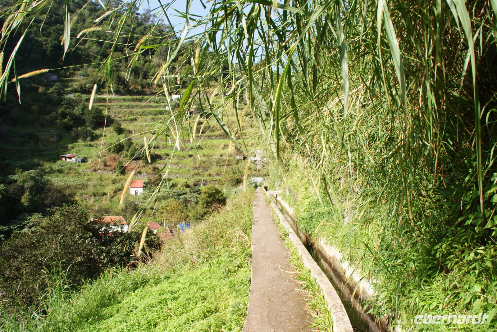 Nach so viel Silvesterfreude ist heute erst mal ausschlafen angesagt und wir genießen das herrliche Neujahrsbuffet auf der Terrasse des Hotel Panoramico. Mittags starten wir dann nach Marocos, um von hier aus eine geführte Levadawanderung anzutreten. Wir haben ca. 6,5 Km vor uns und Fatima erklärt uns viele Pflanzen und Bäume, die wir am Wegesrand sehen. So wandern wir fröhlich bei wunderbarem Wetter am Hang entlang, mit Blick auf Machico im Tal unter uns gelegen. Wie wir von Fatima hören, sind Levadas die bekannten Bewässerungskanäle Madeiras, die sich über ein Streckennetz von 3000 Km über die Insel verteilen. Die längste unter ihnen misst beachtliche 106 Km. Die Instandhalter und Bewässerer nennen sich Levadeiros und sorgen dafür, dass die Kanäle zum einen sauber gehalten werden und das bestellte Wasser entsprechend verteilt wird. Ein schöner Blick aufs Meer hier, schöne Terrassenfelder, Häuser, Hütten da…dazwischen Pflanzen wie Agapanthus, Hortensien, Calas, Bäume wie Avocado, Guaven, Feigen, Tiere, wenige Menschen…wir genießen die Wanderung und kehren zum Schluss in die Bar O Jacaré ein, wo wir ein kühles Bier, einen Kaffee oder ein Stückchen Kuchen genießen können. So haben wir das neue Jahr sportlich begonnen und dürfen heute Abend wieder das leckere Buffet ohne schlechtes Gewissen genießen.
