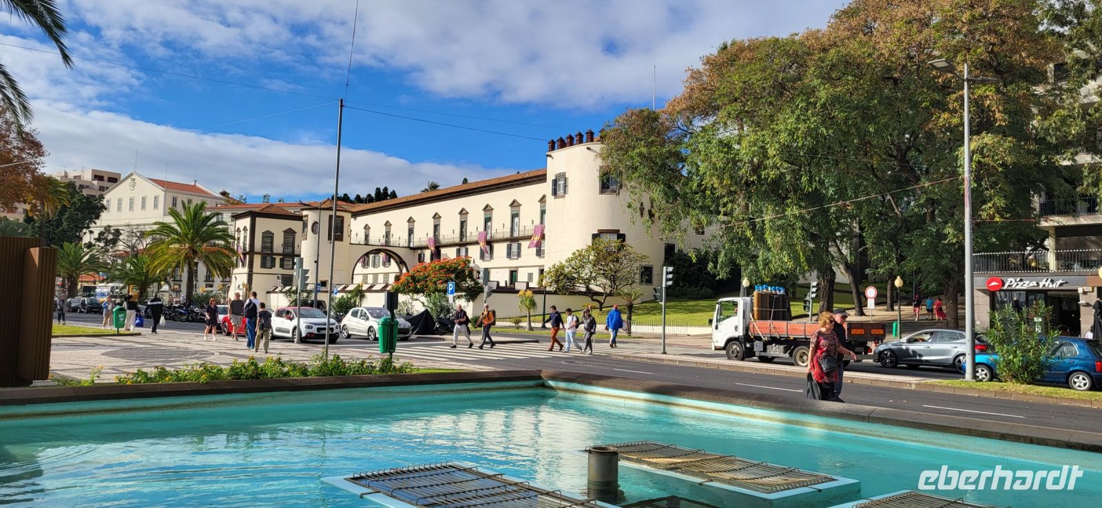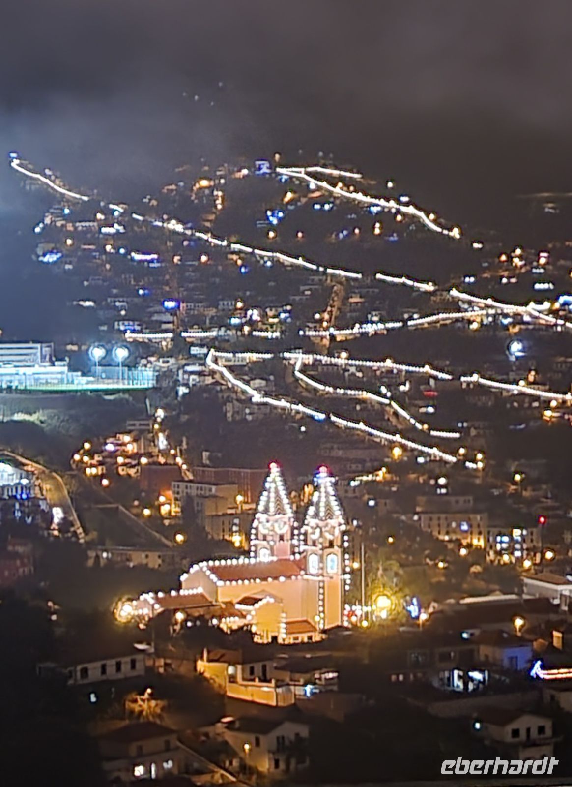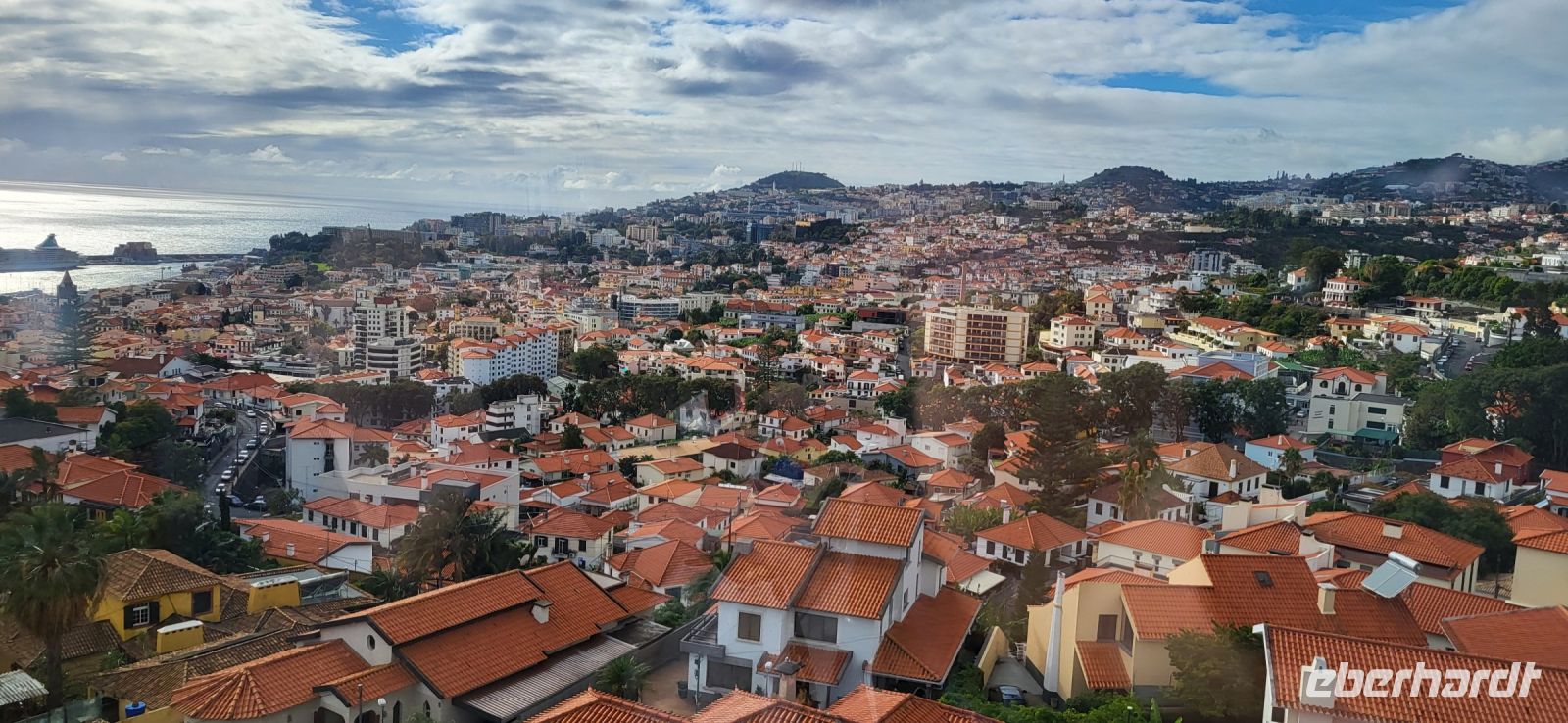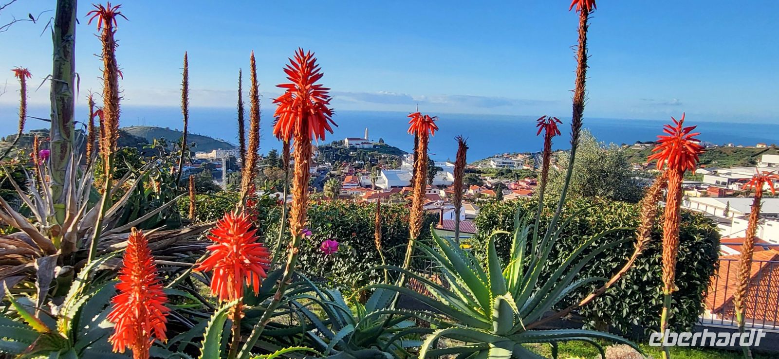 Voller Spannung auf unsere bevorstehende Silvesterreise zur Blumeninsel Madeira treten wir heute die Flüge aus verschiedensten Himmelsrichtungen Deutschlands nach Funchal, der Hauptstadt Madeiras an. Unser freundlicher Pilot erklärt allen Gästen, dass nur besonders trainierte Piloten auf Madeira landen dürfen und diese alle sechs Monate an einem Flugsimulator ihre Fähigkeiten auffrischen müssen. Da die Insel mitten im Atlantik liegt, haben so manche Flugzeuge mit den vorherrschenden Winden zu kämpfen, die jedoch alle mit Bravour meistern. Die Ankunft gelingt somit reibungslos und schnell. Reiseleiterin Fatima Pereira und Susanne Schirmann, Reisebegleiterin Eberhardt TRAVEL erwarten die Gäste und schon bald bringt uns unser nagelneuer Bus mit 55 Plätzen und unserem freundlichen Busfahrer Nuno zum 4-Sterne-Hotel Panoramico, welches oberhalb der Stadt Funchal, mit einem fantastischen Blick auf die Bucht gelegen ist. Auf dem Weg dorthin gewinnen wir erste Eindrücke der herrlichen Natur und sehen blühende Aloen, Schwanenhalsagaven, Feuerranken und vieles mehr. Vor uns liegt die Bucht von Funchal, die einem Amphitheater gleicht. Wir checken zügig mithilfe der freundlichen Mitarbeiter des Panoramico ein und so mancher ist schon kurz darauf mit dem kostenfreien Hotelshuttle auf dem Weg in die Stadt, um sich einen ersten Überblick zu verschaffen. Alternativ spazieren wir zum Supermarkt in unserer Nähe und auch die Bäckerei daneben will entdeckt werden. Ein erster herrlicher portugiesischer Kaffee wird genossen und gesellig sitzen wir zum Austausch zusammen. Vor dem Abendessen treffen wir uns zu einem Infogespräch und lernen die Besonderheiten dieser Reise und unsere Mitreisenden bei einem Glas Poncha kennen. Ein leckeres Buffet erwartet uns im Anschluss, wir langen kräftig zu. Anschließend lädt die Cocktailbar zum geselligen Beisammensein ein - für die, die heute noch fit sind. Ein erster erlebnisreicher Auftakt unserer Silvestertour, zumal wir ja heute Morgen noch im trüben Deutschland waren …wir ahnen es schon-Es war bestimmt die richtige Entscheidung hierher zu reisen!