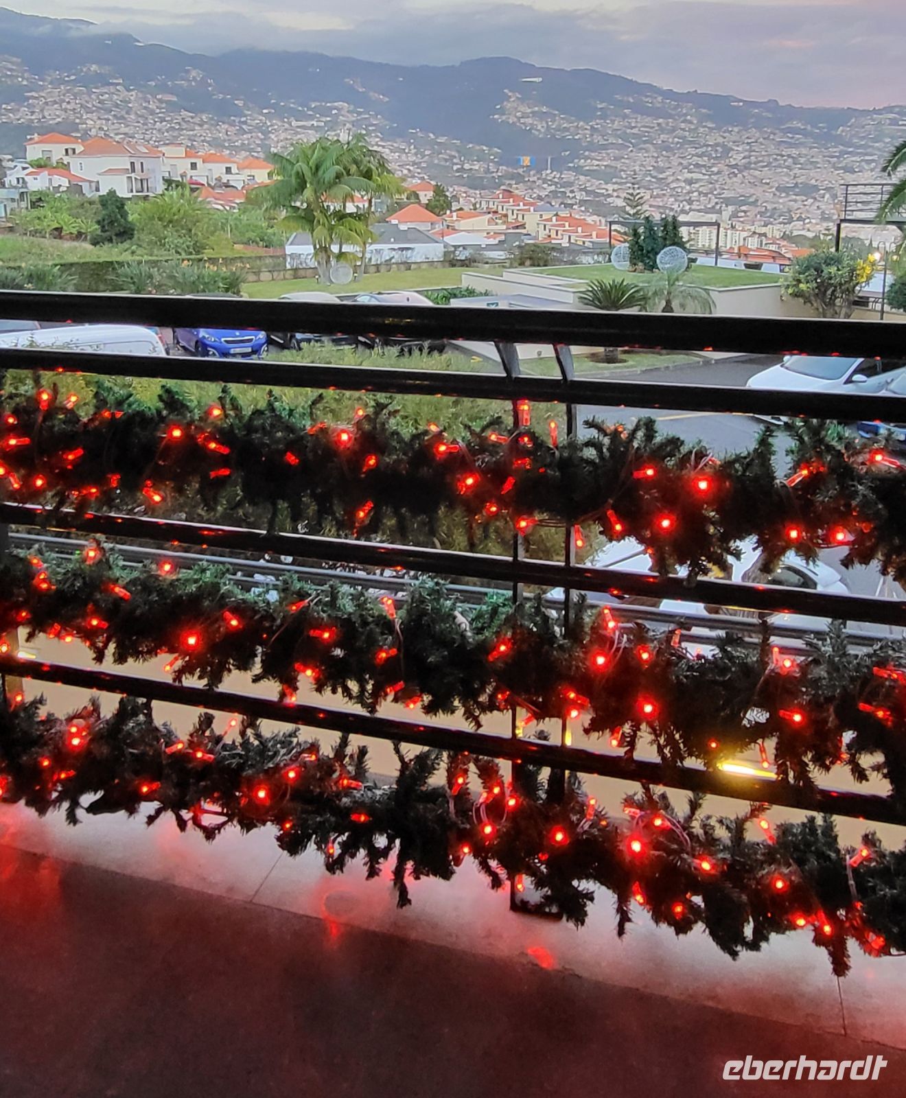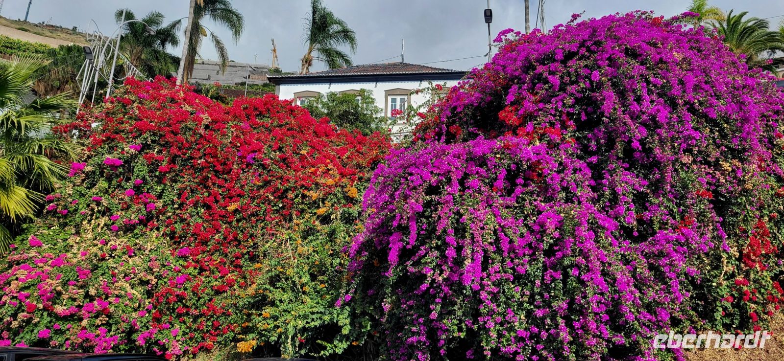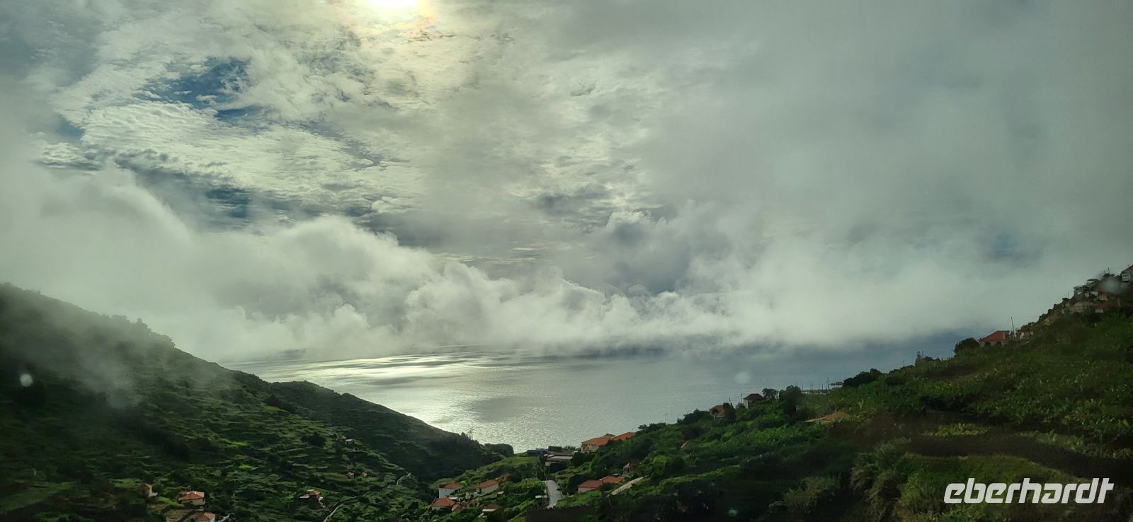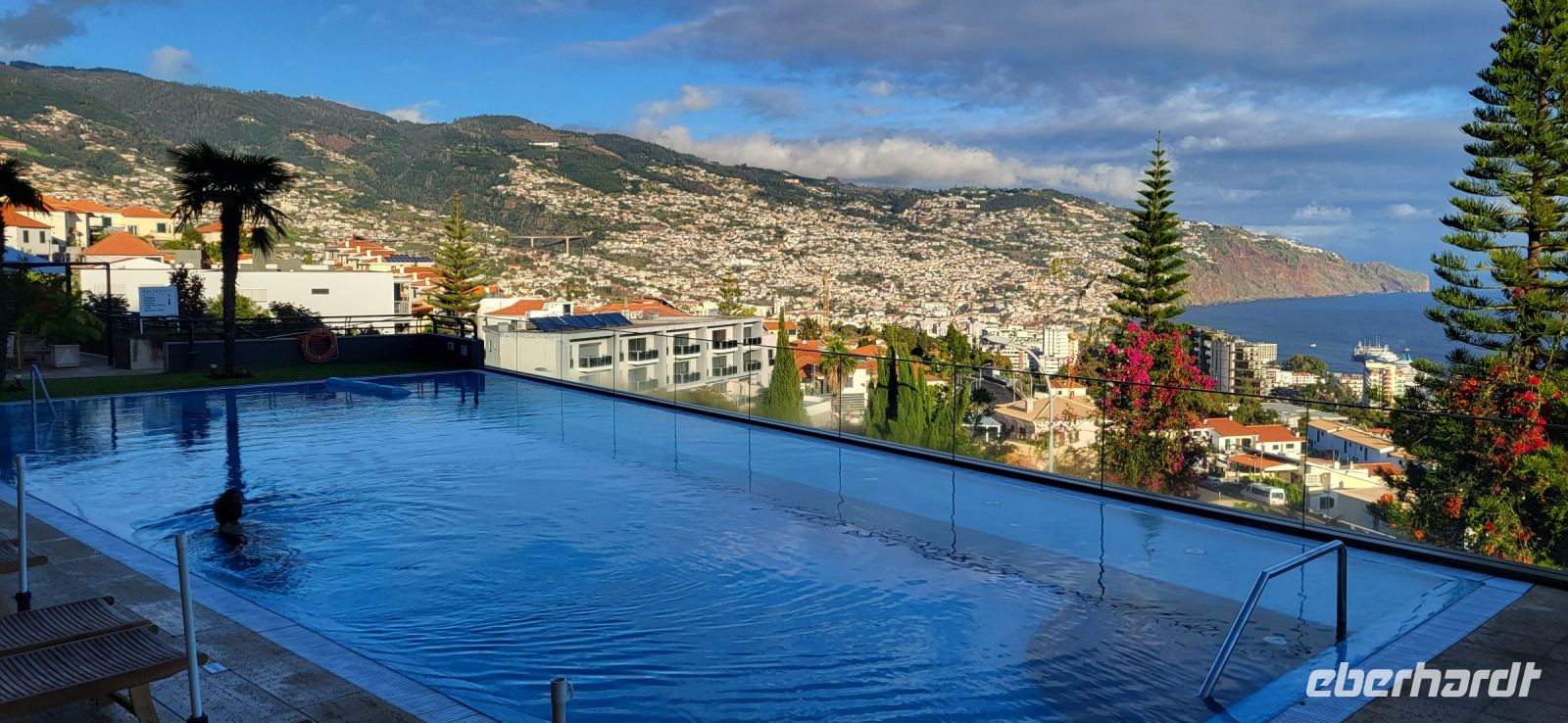 Voller Spannung auf unsere bevorstehende Silvesterreise zur Blumeninsel Madeira treten wir heute die Flüge aus verschiedensten Himmelsrichtungen Deutschlands nach Funchal, der Hauptstadt Madeiras an. Unser freundlicher Pilot erklärt allen Gästen, dass nur besonders trainierte Piloten auf Madeira landen dürfen und diese alle sechs Monate an einem Flugsimulator ihre Fähigkeiten auffrischen müssen. Da die Insel mitten im Atlantik liegt, haben so manche Flugzeuge mit den vorherrschenden Winden zu kämpfen, die jedoch alle mit Bravour meistern. Die Ankunft gelingt somit reibungslos und schnell. Reiseleiterin Fatima Pereira und Susanne Schirmann, Reisebegleiterin Eberhardt TRAVEL erwarten die Gäste und schon bald bringt uns unser nagelneuer Bus mit 55 Plätzen und unserem freundlichen Busfahrer Nuno zum 4-Sterne-Hotel Panoramico, welches oberhalb der Stadt Funchal, mit einem fantastischen Blick auf die Bucht gelegen ist. Auf dem Weg dorthin gewinnen wir erste Eindrücke der herrlichen Natur und sehen blühende Aloen, Schwanenhalsagaven, Feuerranken und vieles mehr. Vor uns liegt die Bucht von Funchal, die einem Amphitheater gleicht. Wir checken zügig mithilfe der freundlichen Mitarbeiter des Panoramico ein und so mancher ist schon kurz darauf mit dem kostenfreien Hotelshuttle auf dem Weg in die Stadt, um sich einen ersten Überblick zu verschaffen. Alternativ spazieren wir zum Supermarkt in unserer Nähe und auch die Bäckerei daneben will entdeckt werden. Ein erster herrlicher portugiesischer Kaffee wird genossen und gesellig sitzen wir zum Austausch zusammen. Vor dem Abendessen treffen wir uns zu einem Infogespräch und lernen die Besonderheiten dieser Reise und unsere Mitreisenden bei einem Glas Poncha kennen. Ein leckeres Buffet erwartet uns im Anschluss, wir langen kräftig zu. Anschließend lädt die Cocktailbar zum geselligen Beisammensein ein - für die, die heute noch fit sind. Ein erster erlebnisreicher Auftakt unserer Silvestertour, zumal wir ja heute Morgen noch im trüben Deutschland waren …wir ahnen es schon-Es war bestimmt die richtige Entscheidung hierher zu reisen!