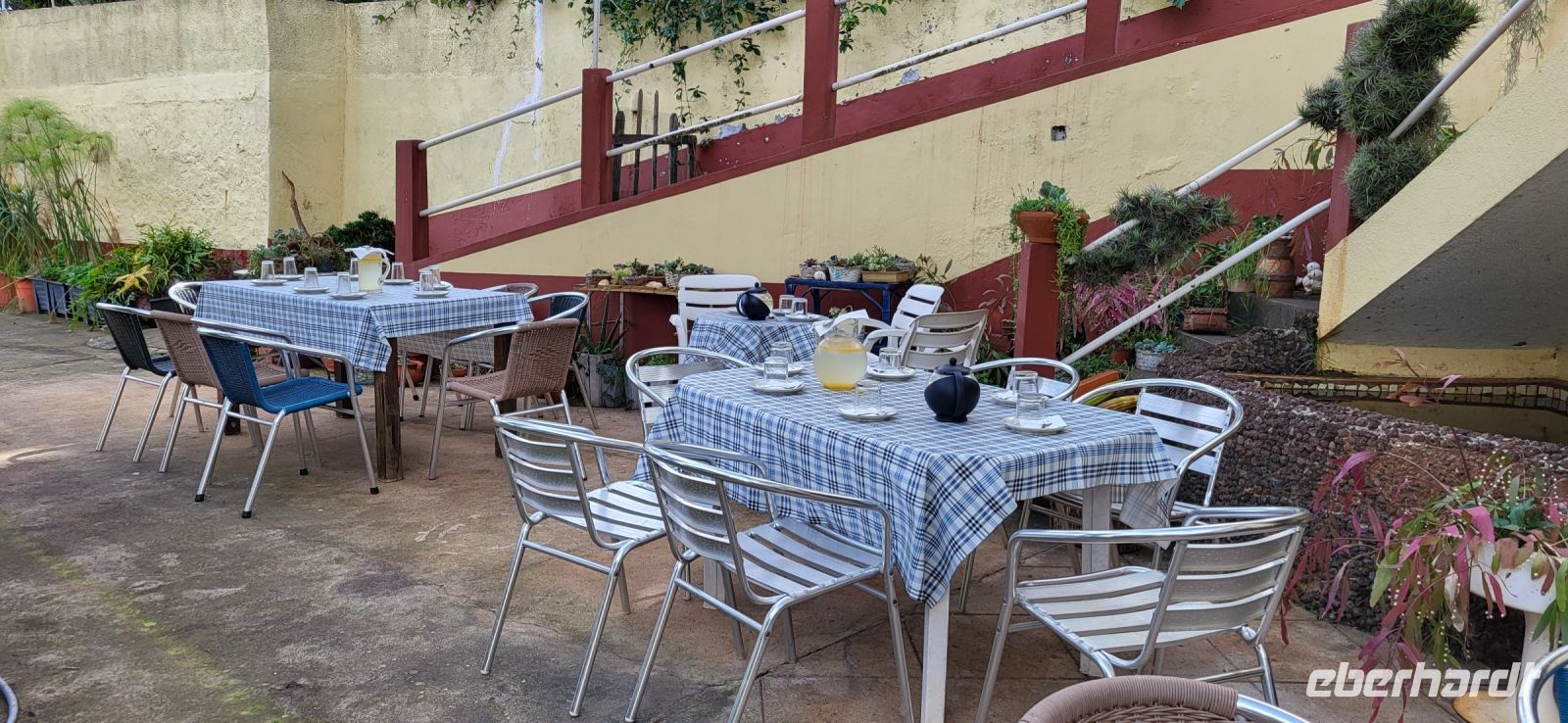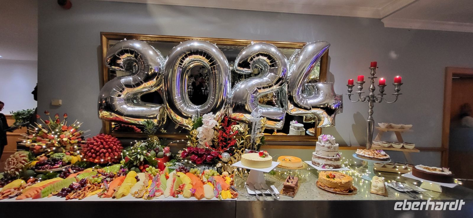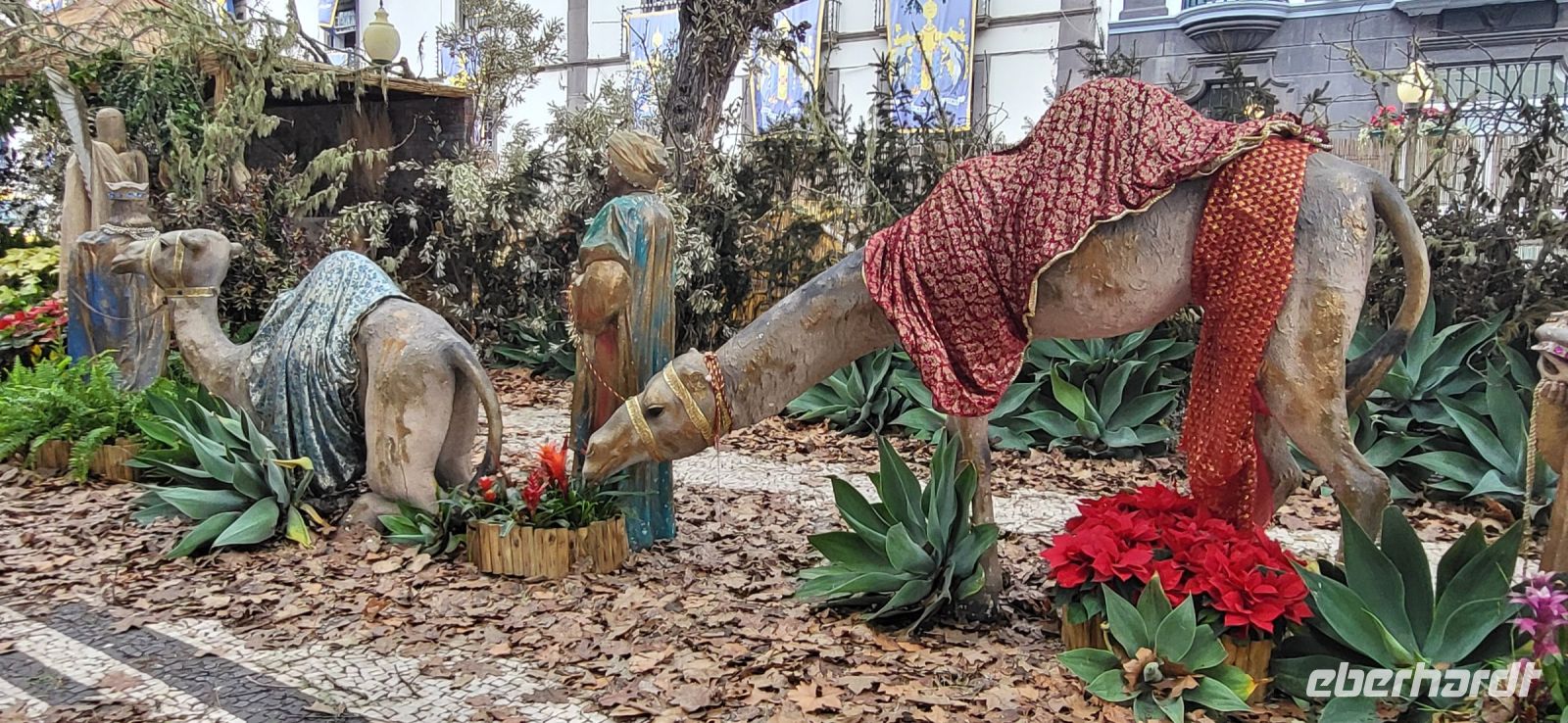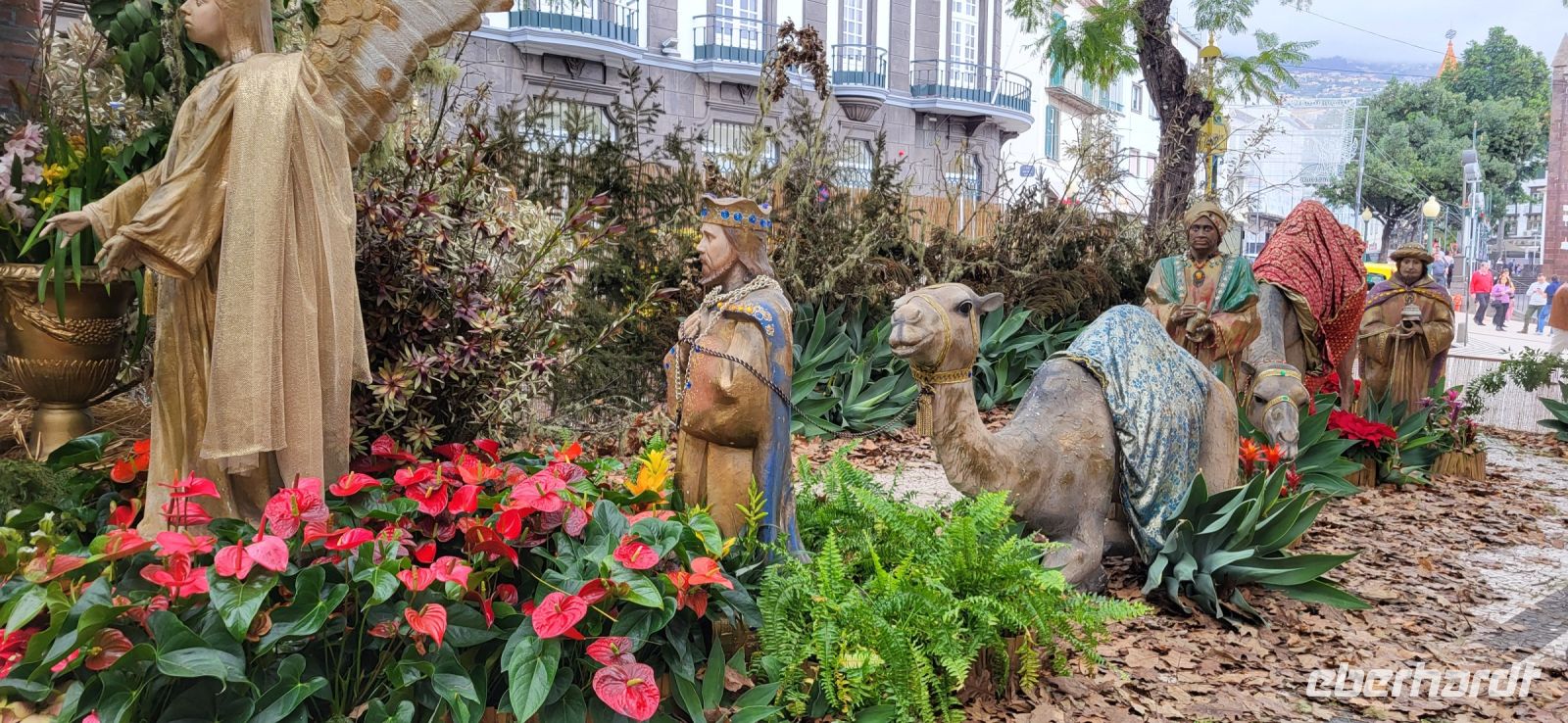 Voller Spannung auf unsere bevorstehende Silvesterreise zur Blumeninsel Madeira treten wir heute die Flüge aus verschiedensten Himmelsrichtungen Deutschlands nach Funchal, der Hauptstadt Madeiras an. Unser freundlicher Pilot erklärt allen Gästen, dass nur besonders trainierte Piloten auf Madeira landen dürfen und diese alle sechs Monate an einem Flugsimulator ihre Fähigkeiten auffrischen müssen. Da die Insel mitten im Atlantik liegt, haben so manche Flugzeuge mit den vorherrschenden Winden zu kämpfen, die jedoch alle mit Bravour meistern. Die Ankunft gelingt somit reibungslos und schnell. Reiseleiterin Fatima Pereira und Susanne Schirmann, Reisebegleiterin Eberhardt TRAVEL erwarten die Gäste und schon bald bringt uns unser nagelneuer Bus mit 55 Plätzen und unserem freundlichen Busfahrer Nuno zum 4-Sterne-Hotel Panoramico, welches oberhalb der Stadt Funchal, mit einem fantastischen Blick auf die Bucht gelegen ist. Auf dem Weg dorthin gewinnen wir erste Eindrücke der herrlichen Natur und sehen blühende Aloen, Schwanenhalsagaven, Feuerranken und vieles mehr. Vor uns liegt die Bucht von Funchal, die einem Amphitheater gleicht. Wir checken zügig mithilfe der freundlichen Mitarbeiter des Panoramico ein und so mancher ist schon kurz darauf mit dem kostenfreien Hotelshuttle auf dem Weg in die Stadt, um sich einen ersten Überblick zu verschaffen. Alternativ spazieren wir zum Supermarkt in unserer Nähe und auch die Bäckerei daneben will entdeckt werden. Ein erster herrlicher portugiesischer Kaffee wird genossen und gesellig sitzen wir zum Austausch zusammen. Vor dem Abendessen treffen wir uns zu einem Infogespräch und lernen die Besonderheiten dieser Reise und unsere Mitreisenden bei einem Glas Poncha kennen. Ein leckeres Buffet erwartet uns im Anschluss, wir langen kräftig zu. Anschließend lädt die Cocktailbar zum geselligen Beisammensein ein - für die, die heute noch fit sind. Ein erster erlebnisreicher Auftakt unserer Silvestertour, zumal wir ja heute Morgen noch im trüben Deutschland waren …wir ahnen es schon-Es war bestimmt die richtige Entscheidung hierher zu reisen!