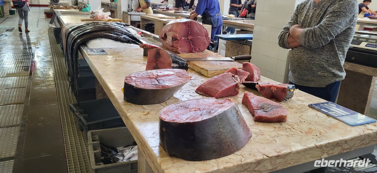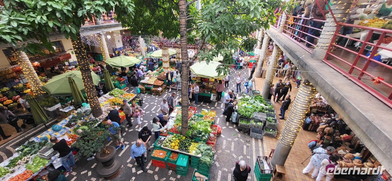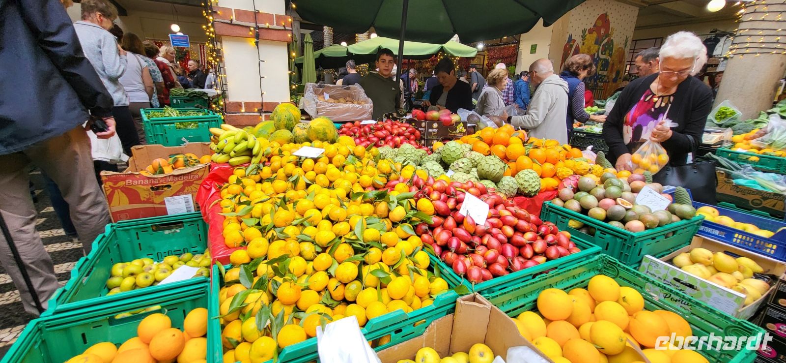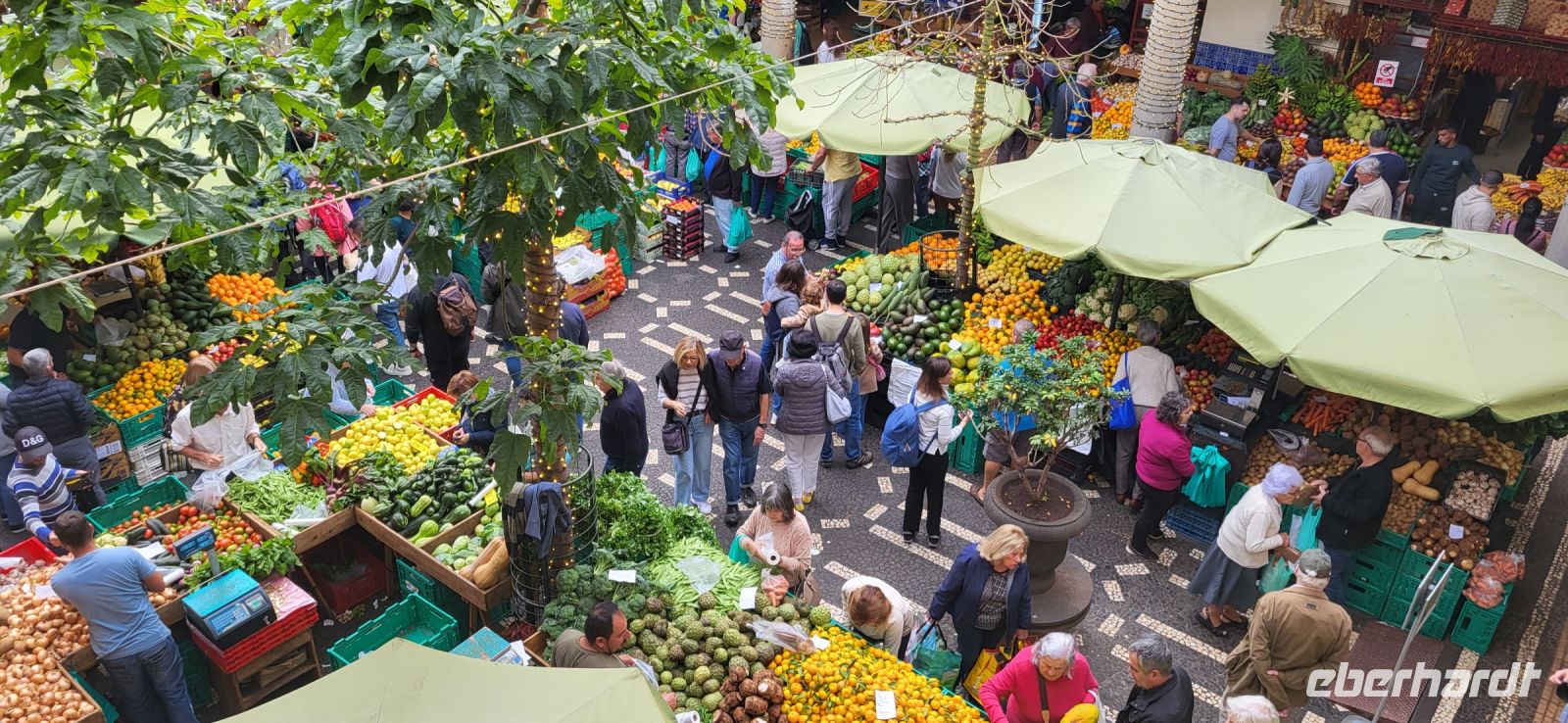 Nach einem köstlichen Frühstück vom reichhaltigen Buffet begeben wir uns mit unserer Reiseleiterin Fatima Pereira und Busfahrer Nuno auf Citytour durch Funchal. Für unseren Rundgang in der Altstadt erhalten wir Kopfhörer und Funkgeräte, mit deren Hilfe wir auch aus der Distanz wunderbar verstehen, was Fatima uns interessantes zu berichten hat. Madeira ist ja bekanntlich auch der Geburtsort von Cristiano Ronaldo, nach dem mittlerweile auch der Flughafen benannt wurde und dessen Familie noch immer hier ansässig ist. Somit ist natürlich Fußball auf der Insel Programm und vieles erinnert hier an den Weltfußballer. Mit Blick auf die drei „Desertas“, die unbewohnten Naturinseln mit Seelöwenbevölkerung nähern wir uns dem Stadtzentrum. Vorbei an so manchen Bananenplantagen, Feuerranken, afrikanischen Tulpenbäumen und Bougainvillea passieren wir den Hafen und können bereits einen Blick auf die hier ankernde Santa Maria, einem Nachbau eines der Schiffe von Christof Columbus, erhaschen. Diese ist für eine schöne Küstenfahrt buchbar und ein tolles Erlebnis. Des Weiteren sehen wir die Marina, also den Jachthafen, das bekannte Ronaldo Museum mit dessen Statue davor, den St. Lorenzo Palast mit Festung aus dem 16. Jahrhundert und halten an der Seilbahnstation, von wo aus wir die Altstadt zu Fuß erkunden. Von Fatima erfahren wir, dass Madeira insgesamt 260.000 Einwohner hat, von denen ca. 110.000 in der Stadt Funchal leben, heute am Morgen ist es jedoch noch angenehm ruhig. Wir passieren die Gasse der bekannten „Kunsttüren-Arte das Portas“, die von einheimischen Künstlern verschönert wurden. In der Markthalle, „Mercado dos Lavradores“ genießen wir das bunte Treiben, staunen über die kunstvoll hergerichteten Obst-und Blumenstände, da heute zudem noch Bauernmarkt und viel Trubel herrscht, erklärt uns Fatima die einheimischen Spezialitäten bereits vorab außerhalb des Markts vor einem einheimischen Obstgeschäft. So sehen wir unter vielem anderen die Frucht des Philodendron, die auch wegen ihres Geschmacks „Ananas-Banane“ genannt wird, sowie verschiedene Maracujas, Baumtomaten, Drachenfrüchte und weitere exotische Köstlichkeiten. In der Fischhalle begegnen wir zum ersten Mal der Spezialität der Insel, dem Espada, dem „schwarzen Degenfisch“ und auch ein riesiger Thunfisch, aus dem leckere Steaks gewonnen werden, darf nicht fehlen. Unsere Tour durch Funchal setzen wir weiter zu Fuß fort. Wir gelangen zur Kathedrale da Sé, die wir von innen anschauen und mit Gottes Segen enden wir in der Blandys Wine Lodge, wo wir den bekannten Madeira Wein, eine Art Likörwein, probieren dürfen. Bevor dieser jedoch genossen werden darf, gibt es zunächst eine interessante Führung und Fatima erklärt, wie der Wein gewonnen und verarbeitet wird. Im Gegensatz zur herkömmlichen Weinlagerung wird dieser anstatt im Keller auf dem warmen Dachboden gelagert. Der letzte Programmpunkt des gemeinsamen Tages ist der Besuch des Kräutergartens von Esmeralda, die hier einen biologischen Garten auf Ihrem Anwesen unterhält. Zunächst führt uns diese durch ihren Garten Eden, erklärt uns viel Wissenswertes über Naturheilkunde. Wir hören, was entzündungshemmend wirkt, welche Pflanze Kohlenhydrate besser verdauen lässt, was gut für unser Gehirn und somit gegen Alzheimer ist, etc. Gespannt lauschen und so manches probieren wir direkt vor Ort. Anschließend stärken wir uns mit selbstgemachten Köstlichkeiten und leckerem Getränk von Mutter Natur. Am Nachmittag zieht es die meisten von uns hinauf nach Monte, welches wir per Seilbahn erreichen. Wir statten der dortigen Wallfahrtskirche einen Besuch ab, in der ja bekanntlich das Grab des letzten österreichischen Kaisers Karl zu finden ist, der 1922 hier im Exil verstarb. Natürlich schauen wir auch noch den Korbschlittenfahrern zu, wie diese eine ca. 2 Km lange Strecke ins Tal zurücklegen. Zurück am Hafen bleibt noch viel Zeit, die Promenade entlangzuschlendern, nochmals die Altstadt zu erkunden und diesen erlebnisreichen Tag Revue passieren zu lassen. Nach so vielen Eindrücken haben wir uns das Abendessen redlich verdient, genießen dies und die gesellige Runde in vollen Zügen. Vor dem Reich der Träume wartet noch die Cocktailbar mit Livemusik und wer will, kann noch ein wenig das Tanzbein schwingen.