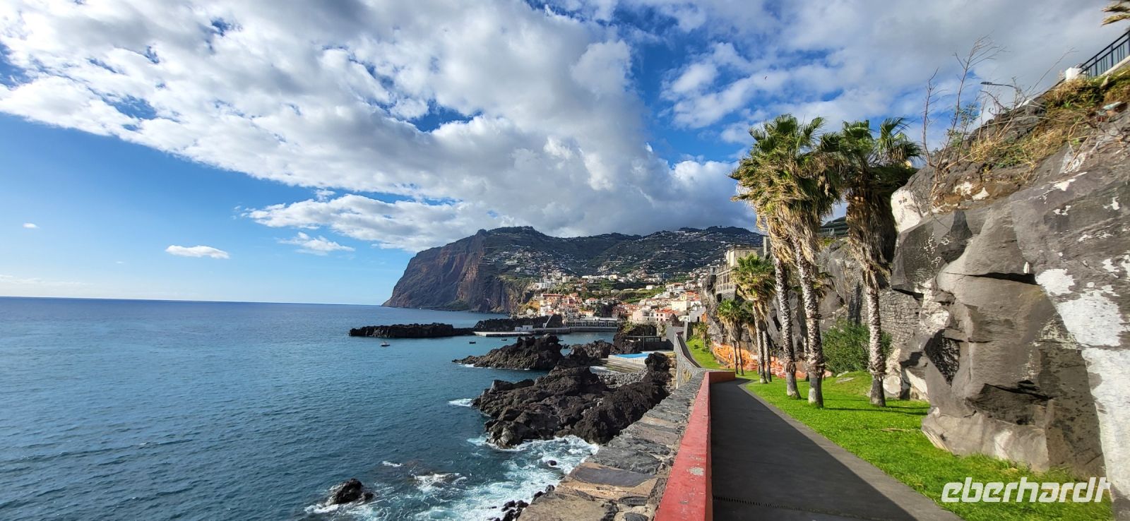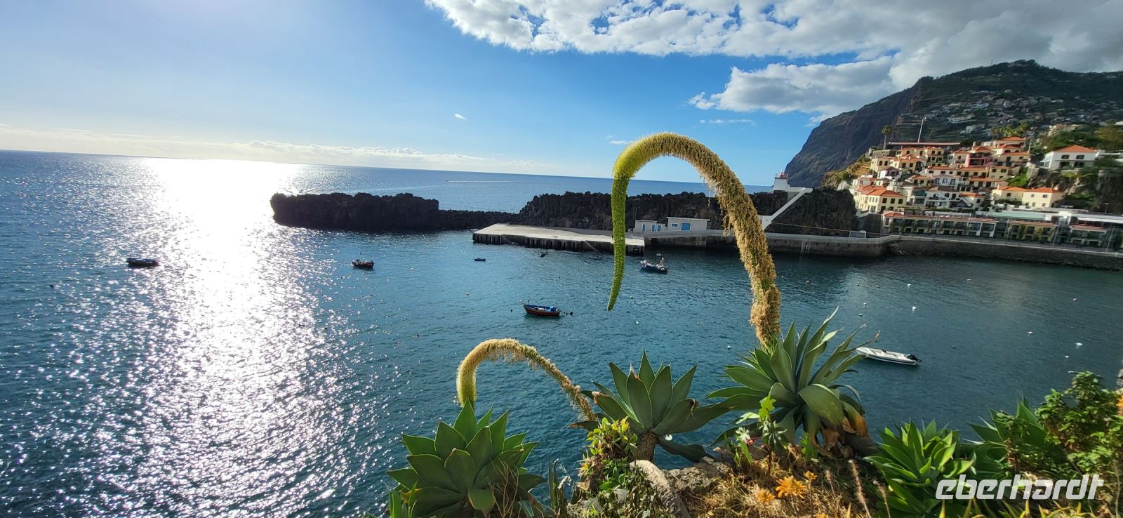 Der heutige Tag verspricht schon am frühen Morgen ein Traumtag zu werden… Nach einer geruhsamen Nacht und tollem Frühstück starten wir zunächst zum 355 m hoch gelegenen Aussichtspunkt „Pico dos Barcelos“ von dem man eine herrliche 360° Rundumsicht über Funchal hat. Der Platz bietet ein wunderbares Panorama, welches insbesondere zu Silvester ein umso beliebterer Treffpunkt ist. Weiter geht die Fahrt nach „Eira do Serrado“, auf 1094 m Höhe gelegen, mit toller Bergsicht und Blick in das 500 m tiefer gelegene „Curral das freiras“, das sogenannte Nonnental. Die Fahrt hinauf und hinunter ist ein Abenteuer, wir bewundern Fahrer Nuno, der nach außen völlig gelassen die engen Kurven bewältigt und sind umso dankbarer, dass wir den Weg nicht selbst fahren müssen. Am späten Vormittag besuchen wir das Museum und die Bananenplantage in Ponta do Sol. Eindrucksvoll wird uns sehr modern per Animation das Wachstum der Bananenstaude anhand eines Hologramms demonstriert. Dank einer örtlichen Führerin und Fatimas Übersetzungen erfahren wir viel Wissenswertes über diese besonderen Stauden, die auf Madeira im sonnigen Süden üppig gedeihen. Natürlich sehen wir anschließend die Pflanzen auch in Natura und im angegliederten Café können wir sogar Bier mit Banane als Zutat kosten-Fazit: Es schmeckt erstaunlich gut! Weiter geht die Fahrt nach „Cabo Girao“, Europas höchste Steilküste mit 580 m und wir ganz oben mit dabei. So haben wir auch hier eine unglaubliche Aussicht auf das vor uns liegende Meer, die Küste und die ganz Mutigen begeben sich auf die gläserne Plattform mit freiem Blick in die Tiefe. Die klare Sicht ermöglicht uns eine tolle Fernsicht bis Funchal und auch die drei Desertas sind in der Ferne gut erkennbar. Auf unserer Fahrt führt uns Fatima in die einheimische Kaffeekunst ein, wir lernen, was „Bica“- „Garoto“-„Chino“- „Chinesa“ bedeuten und können von nun an perfekt auf Portugiesisch unseren köstlichen Kaffee bestellen … Grins. Als letzten Programmpunkt des heutigen Tages besuchen wir das bekannteste und schönste Fischerdorf der Insel „Camara de Lobos“, welches übersetzt „Bucht der Seelöwen“ bedeutet. Hier herrscht ein buntes Treiben unter das wir uns sehr gerne mischen und das Flair auf uns wirken lassen. Bei sommerlichen Temperaturen von 22 Grad und vollem Sonnenschein genießen wir die Inselspezialitäten wie die „Poncha“, die aus Zuckerrohrschnaps, Zitrone, frischem Orangensaft und Honig hergestellt wird. Die ganz Mutigen unter uns kosten die „Nikita“, ein Gemisch aus Bier, Weißwein und Ananaseis. Es sieht besser aus und schmeckt auch besser als es zunächst klingt. Das alles mit Blick auf die tolle Bucht, die vielen schönen und bunten Fischerboote, die Bananenplantagen, Schwanenhalsagaven und überhaupt das herrliche Panorama. Der weitere Nachmittag steht nun zur freien Verfügung. Einige Gäste fahren in den Botanischen Garten, andere zieht es nochmals an den Hafen Funchals und die Wanderfreudigen unter uns gehen gemeinsam mit Susanne den 9 km langen und wunderschönen Spazierweg am Meer entlang zurück nach Funchal. Hier ziehen wir schon ein kleines Resümee unserer Silvesterreise und sind uns schnell einig, dass es die beste Entscheidung war, diese Reise angetreten zu sein. Erst recht in der heutigen Zeit und bei uns in Deutschland zu einer eher trüben Jahreszeit, wissen wir hier das Klima, die vielen Farben, blühende Pflanzen, gepflegte Orte umso mehr zu schätzen. So viele schöne Eindrücke des heutigen Tages machen uns hungrig und umso mehr freuen wir uns heute auf unser tolles Abendessen im Hotel.