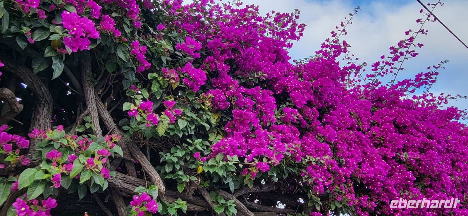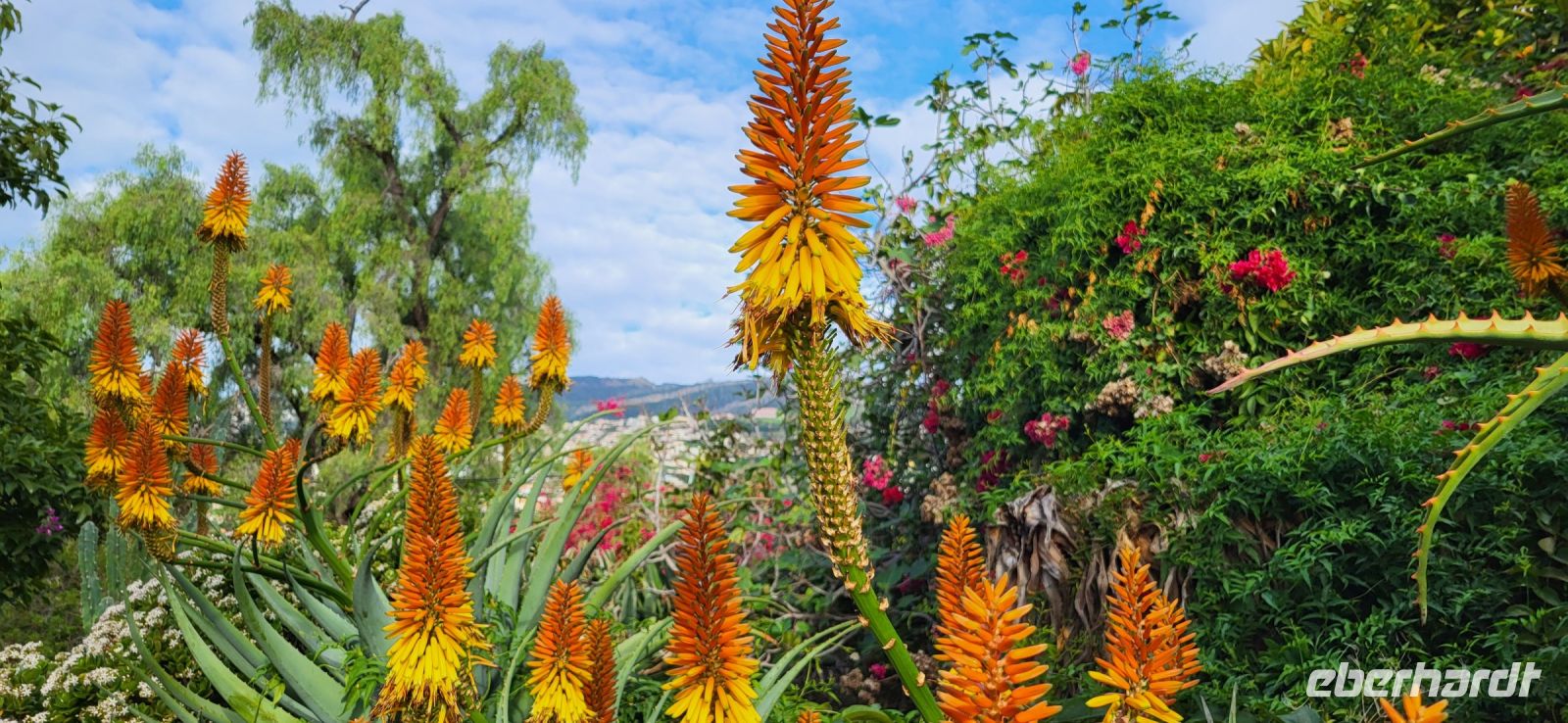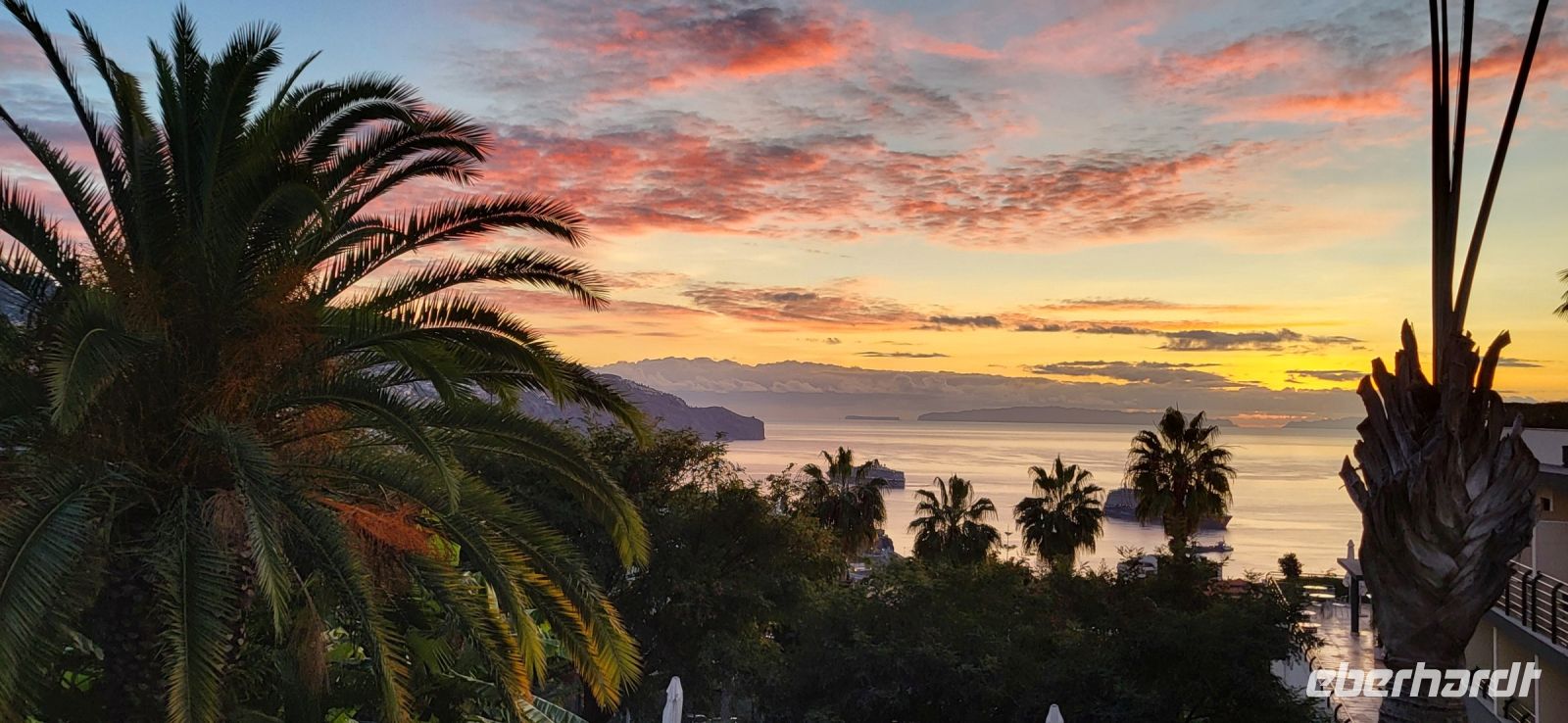 Der letzte Tag des Jahres bricht mit einem wunderbaren Sonnenaufgang und möglichem Frühstück auf der Hotelterrasse an. Wir kehren in uns und sind sehr dankbar, dass wir diesen an einem solch wunderschönen Fleckchen Erde bei herrlichem Wetter und Temperaturen verbringen dürfen. So lacht die Sonne schon am frühen Morgen und wir starten zunächst zum Orchideengarten „Quinta da Boa Vista“, also zum sogenannten Herrenhaus mit schöner Aussicht. Hier finden wir in einem großen Gelände unzählige Orchideenarten vor und es entstehen herrliche Aufnahmen der Pflanzen, die in Form und Farben nicht zu überbieten sind. Besonders schön ist der sogenannte „Jadewein“ eine grünliche Hängeorchidee … einfach toll. Fatima führt uns mit gewohnter Bravour und zeigt uns außer den Orchideen auch das weitere Gelände mit wunderbarem Blick auf Funchal, weiteren Besonderheiten wie der Baumstrelitzie, Frangipani, dem falschen Pfefferbaum, Philodendron mit besonderen Früchten, etc. Unsere Silvestertour führt uns weiter zum Palheiro auch „Blandys Garden“ genannt, der vor ca. 200 Jahren angelegt wurde. Hier gewährt die wohlhabende Familie Blandy Besuchern einen Einblick in ihren privaten und sehr gepflegten Park mit Aussicht auf Funchal und den benachbarten Palheiro Golfplatz. Besonders bekannt ist die Anlage für die beeindruckende Kamelien Allee, deren unterschiedliche Kamelienarten hier von November-April in verschiedensten Farben blühen. Die herrliche Kamelienallee mit verschiedenfarbigen Blüten zieht uns in ihren Bann. Die Vielfalt der verschiedenen Pflanzen auf dem Anwesen hier scheint unendlich, von der Königsprotea und Nadelkissenprotea aus Südafrika bis hin zur Magnolie, viele Strelitzien, riesige Bäume, kunstvoll kreierte Parkanlagen-ein, gepflegtes Anwesen so weit das Auge reicht. Natürlich gibt es neben dem schmucken Wohnhaus der Familie Blandy auch die Johanneskapelle aus dem 18. Jahrhundert sowie ein Jagdhaus, welches heute als Hotel fungiert. Im ebenfalls ansässigen Teehaus kehren wir ein, sitzen auf der Sonnenterrasse und lassen uns einen Cafezinho schmecken. Danach kann jeder den weiteren Tag bis zum Silvesterabend nach Lust und Laune verbringen. Viele Gäste nutzen die Gelegenheit, um mit der Santa Maria, dem Nachbau eines der Schiffe von Columbus, die Küste entlang zu schippern. Andere machen sich mit mir auf zu einer Wanderung nach Camara de Lobos, dem berühmten Fischerdorf und Nachbarort. Wir wählen eine schöne Route, die am Meer entlang geht und wir somit dem heutigen Silvesterrummel der Stadt entgehen. Einfach herrlich, ein tolles Panorama, sommerliche Temperaturen-schöner kann man das Jahr doch nicht ausklingen lassen. Abends staunen und genießen wir das grandiose Silvesterbuffet. Nachdem wir vorzüglich gespeist haben und die heutigen Getränke zum Abendessen inkludiert sind, gehen wir hoch auf die Dachterrasse des Hotel Panoramico, von wo aus wir als Hotelgäste exklusiv das weit über die Grenzen hinaus bekannte Silvesterfeuerwerk erleben zu dürfen. Es wird nochmals Sekt für die Gäste spendiert und schon bald staunen wir über die Vielfalt des Feuerwerks und über die unglaubliche 360° Kulisse, die sich uns bietet. 9 Kreuzfahrtschiffe haben sich im Hafen versammelt, um Europas schönstes Feuerwerk zu erleben. Anschließend tanzen wir zur Begrüßung des neuen Jahres bei viel frischer Luft und tollen Klängen des DJs…. Möge 2024 endlich für uns alle ein friedliches Jahr werden!
