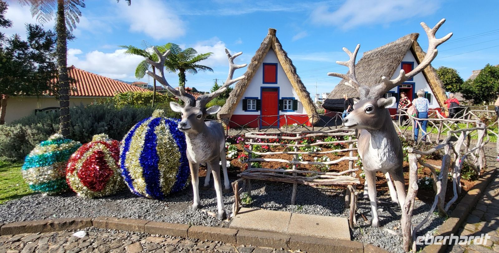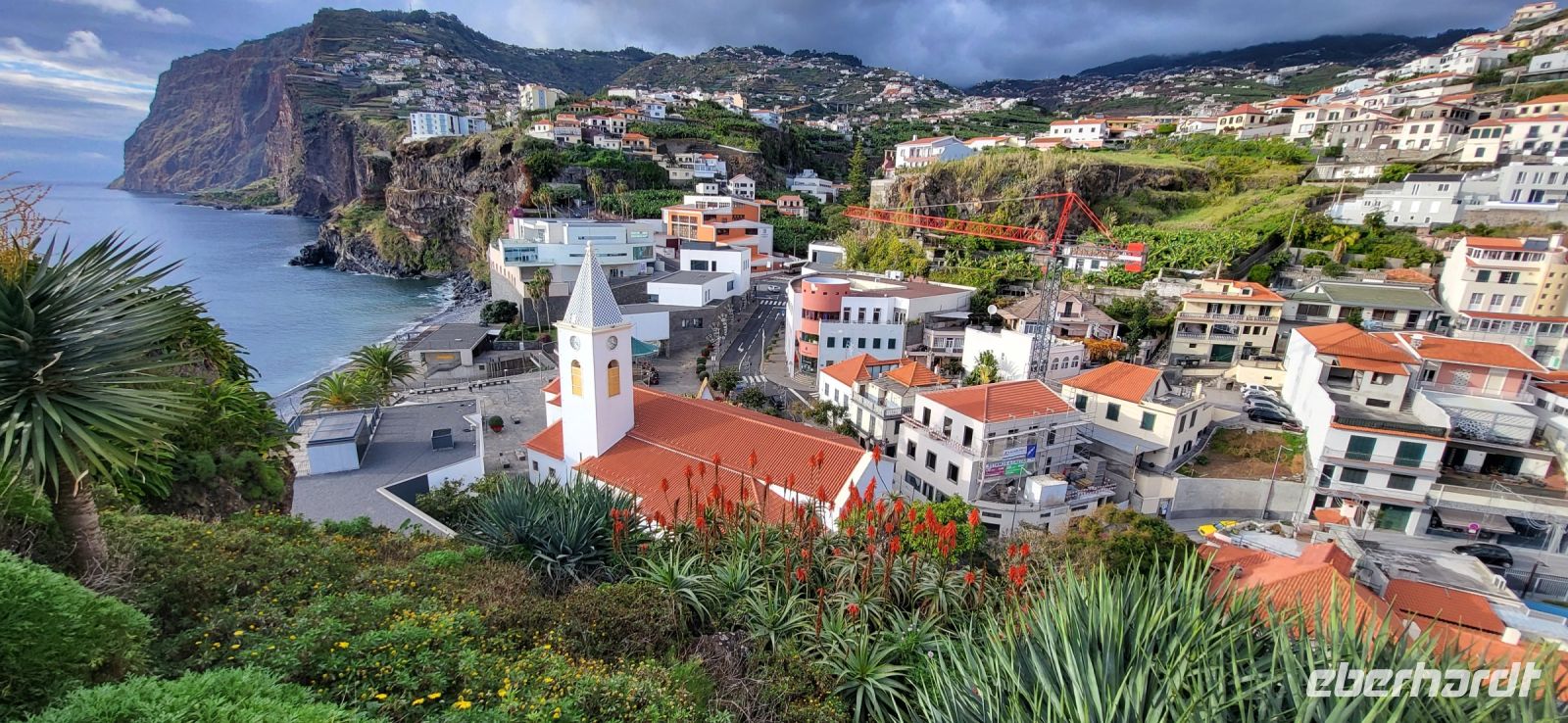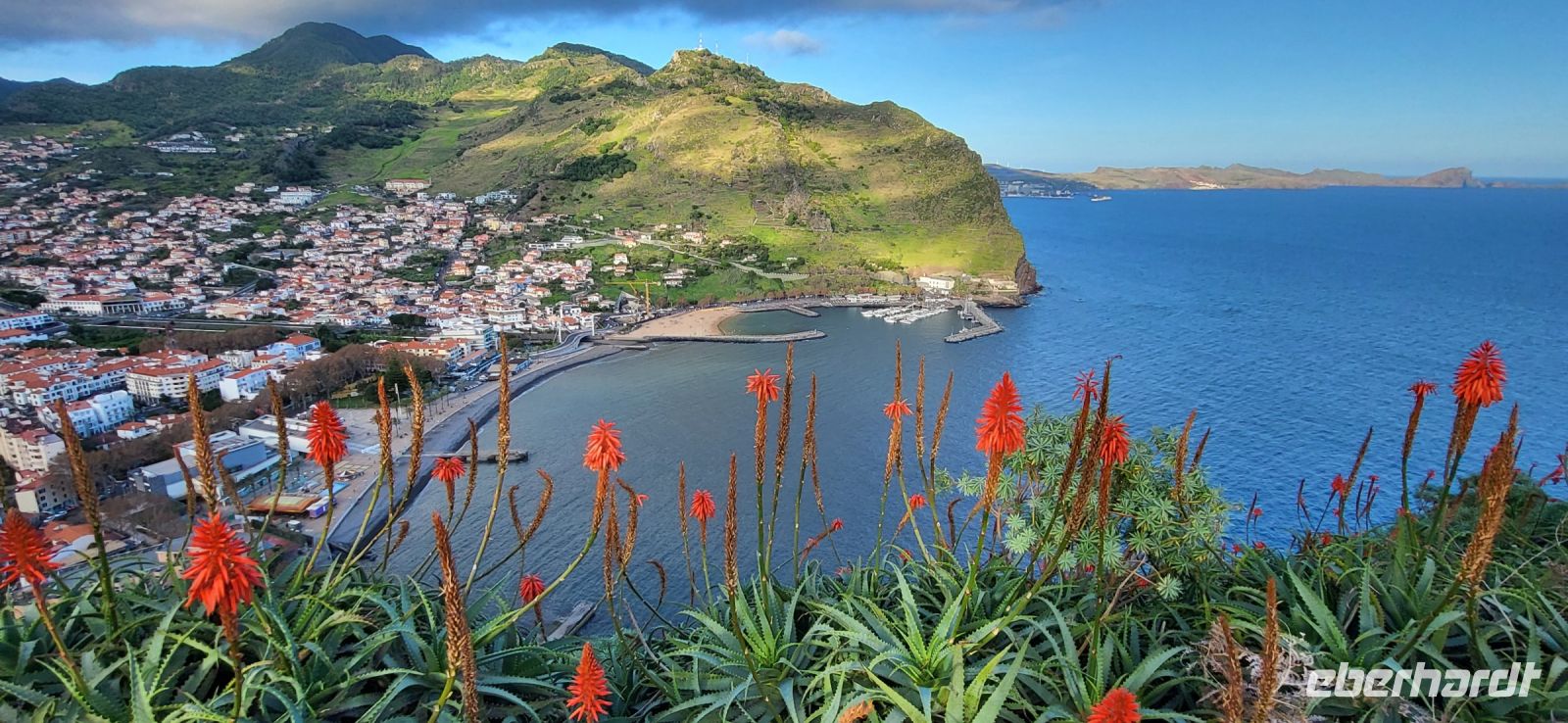 Heute lernen wir den Nordosten Madeiras kennen. Um zu unserem ersten Ziel des Tages zu gelangen, verlassen wir Funchal und befinden uns nun schon bald auf 700 m Höhe, wo allmählich die Besiedlung endet und es schon deutlich kühler ist. Die Natur ändert sich und es wachsen mannshohe Heidelbeersträucher, Brombeeren, Stechginster und Erika. Bei der heutigen Fernsicht entdecken wir die Nachbarinsel Porto Santo, welche 12 Km lang und nur 6 Km breit ist. 5000 Einwohner sind hier beheimatet und bekannt wurde die Insel durch ihren 9 Km langen Natursandstrand. Wir erreichen den Gipfel von Pico do Ariero und befinden uns indessen auf 1810 m Höhe und es bietet sich uns eine grandiose Aussicht auf die umliegenden Inseln sowie die Ostspitze Madeiras. Nachdem wir das Bergpanorama genossen und einen leckeren Kaffee auf der Aussichtsterrasse getrunken haben, steuern wir unser nächstes Wanderziel an. In Ribeiro Frio kann man die Forellenzucht besuchen oder hat ein wenig Freizeit um sich umzuschauen. Im Anschluss erfolgt eine einstündige Levadawanderung zu Balcoes (Balkon auf Portugiesisch), von wo aus wir wiederum ein herrliches Bergpanorama genießen. Wie immer warten hier die possierlichen Madeira Buchfinken auf uns, die wir mit mitgebrachtem Vogelfutter anlocken und diese sich somit gerne fotografieren lassen. Unseren Mittagsstopp planen wir für heute in Santana, wo wir die berühmten bunten Häuser mit Weizenstrohdächern besichtigen und natürlich auch Mittagessen wollen. Die Dächer der bunten Häuser müssen alle vier Jahre neu gedeckt werden und sind mit ca. 2000 € Kosten für die Einheimischen eine recht kostspielige Angelegenheit. Am Nachmittag halten wir zu einem schönen Spaziergang am Meer im kleinen Küstenort Porto da Cruz, wo auch eine Zuckerrohrfabrik ansässig ist und wir diese besichtigen. Im Anschluss werden wir zu einer Rumprobe eingeladen, um den hier produzierten Rum testen zu können. Bevor wir nach Funchal zurückfahren, erfolgt ein letzter Fotostopp mit Blick auf die Stadt Machico und die Ostspitze Ponta de Sao Lourenco. Eine Vielzahl an Weihnachtskerzen, rot leuchtend, bieten dazu eine weitere tolle Kulisse. Zurück fahren wir nochmals am Flughafen vorbei und erfahren, dass die Landebahn früher nur 1600 m lang war, jedoch nunmehr seit 23 Jahren 2800 m misst und somit alle Flugzeugtypen hier landen können. Lediglich die Piloten benötigen aufgrund der hier oft herrschenden Winde eine Zusatzqualifikation. So ein ereignisreicher Tag lässt uns abends hungrig das tolle Buffet im Hotel Panoramico stürmen und eine Folklore Darbietung in der Cocktailbar rundet einen weiteren, sehr erlebnisreichen und traumhaft schönen Tag auf Madeira ab.