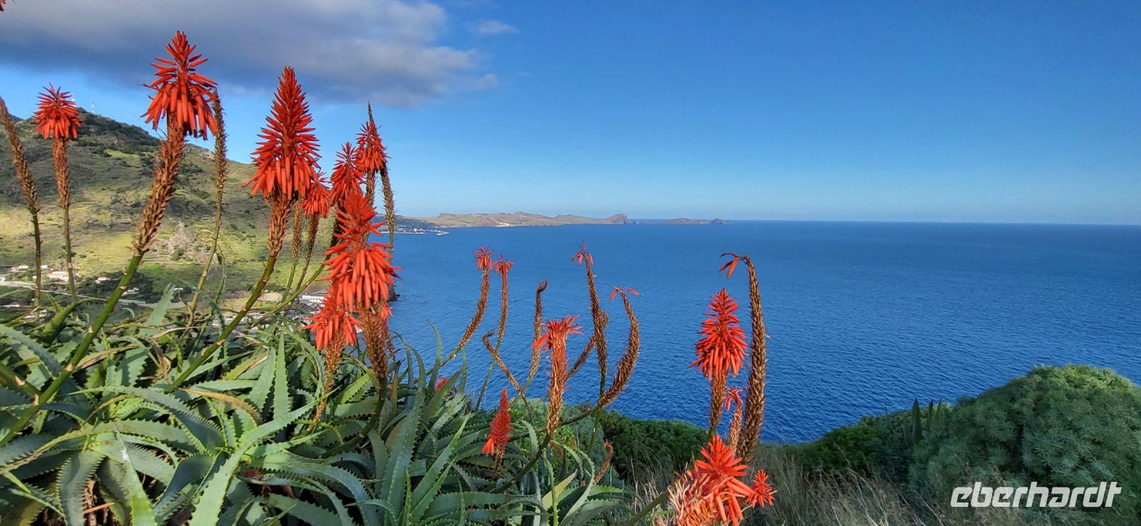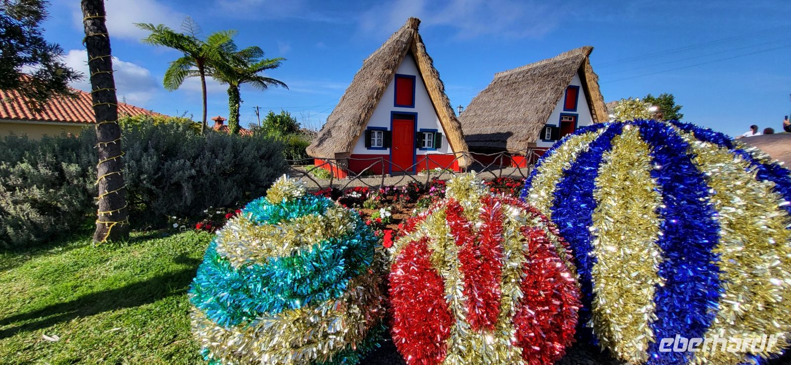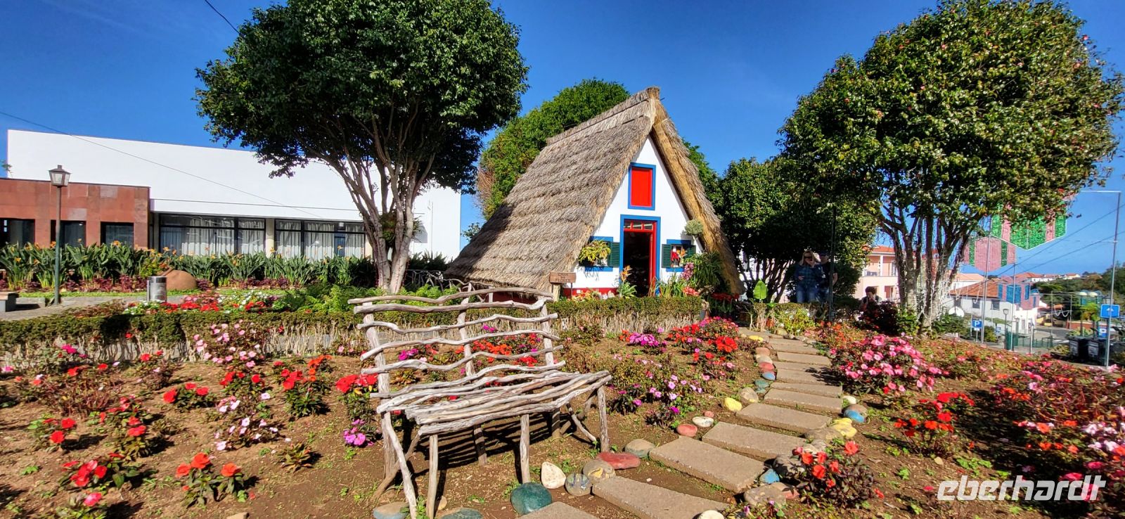 Heute lernen wir den Nordosten Madeiras kennen. Um zu unserem ersten Ziel des Tages zu gelangen, verlassen wir Funchal und befinden uns nun schon bald auf 700 m Höhe, wo allmählich die Besiedlung endet und es schon deutlich kühler ist. Die Natur ändert sich und es wachsen mannshohe Heidelbeersträucher, Brombeeren, Stechginster und Erika. Bei der heutigen Fernsicht entdecken wir die Nachbarinsel Porto Santo, welche 12 Km lang und nur 6 Km breit ist. 5000 Einwohner sind hier beheimatet und bekannt wurde die Insel durch ihren 9 Km langen Natursandstrand. Wir erreichen den Gipfel von Pico do Ariero und befinden uns indessen auf 1810 m Höhe und es bietet sich uns eine grandiose Aussicht auf die umliegenden Inseln sowie die Ostspitze Madeiras. Nachdem wir das Bergpanorama genossen und einen leckeren Kaffee auf der Aussichtsterrasse getrunken haben, steuern wir unser nächstes Wanderziel an. In Ribeiro Frio kann man die Forellenzucht besuchen oder hat ein wenig Freizeit um sich umzuschauen. Im Anschluss erfolgt eine einstündige Levadawanderung zu Balcoes (Balkon auf Portugiesisch), von wo aus wir wiederum ein herrliches Bergpanorama genießen. Wie immer warten hier die possierlichen Madeira Buchfinken auf uns, die wir mit mitgebrachtem Vogelfutter anlocken und diese sich somit gerne fotografieren lassen. Unseren Mittagsstopp planen wir für heute in Santana, wo wir die berühmten bunten Häuser mit Weizenstrohdächern besichtigen und natürlich auch Mittagessen wollen. Die Dächer der bunten Häuser müssen alle vier Jahre neu gedeckt werden und sind mit ca. 2000 € Kosten für die Einheimischen eine recht kostspielige Angelegenheit. Am Nachmittag halten wir zu einem schönen Spaziergang am Meer im kleinen Küstenort Porto da Cruz, wo auch eine Zuckerrohrfabrik ansässig ist und wir diese besichtigen. Im Anschluss werden wir zu einer Rumprobe eingeladen, um den hier produzierten Rum testen zu können. Bevor wir nach Funchal zurückfahren, erfolgt ein letzter Fotostopp mit Blick auf die Stadt Machico und die Ostspitze Ponta de Sao Lourenco. Eine Vielzahl an Weihnachtskerzen, rot leuchtend, bieten dazu eine weitere tolle Kulisse. Zurück fahren wir nochmals am Flughafen vorbei und erfahren, dass die Landebahn früher nur 1600 m lang war, jedoch nunmehr seit 23 Jahren 2800 m misst und somit alle Flugzeugtypen hier landen können. Lediglich die Piloten benötigen aufgrund der hier oft herrschenden Winde eine Zusatzqualifikation. So ein ereignisreicher Tag lässt uns abends hungrig das tolle Buffet im Hotel Panoramico stürmen und eine Folklore Darbietung in der Cocktailbar rundet einen weiteren, sehr erlebnisreichen und traumhaft schönen Tag auf Madeira ab.