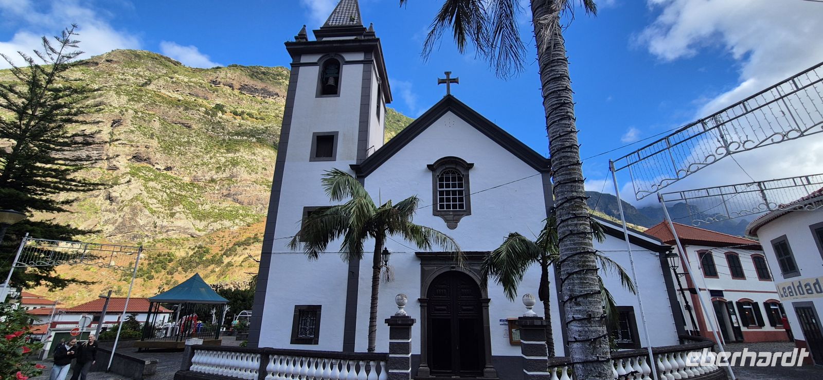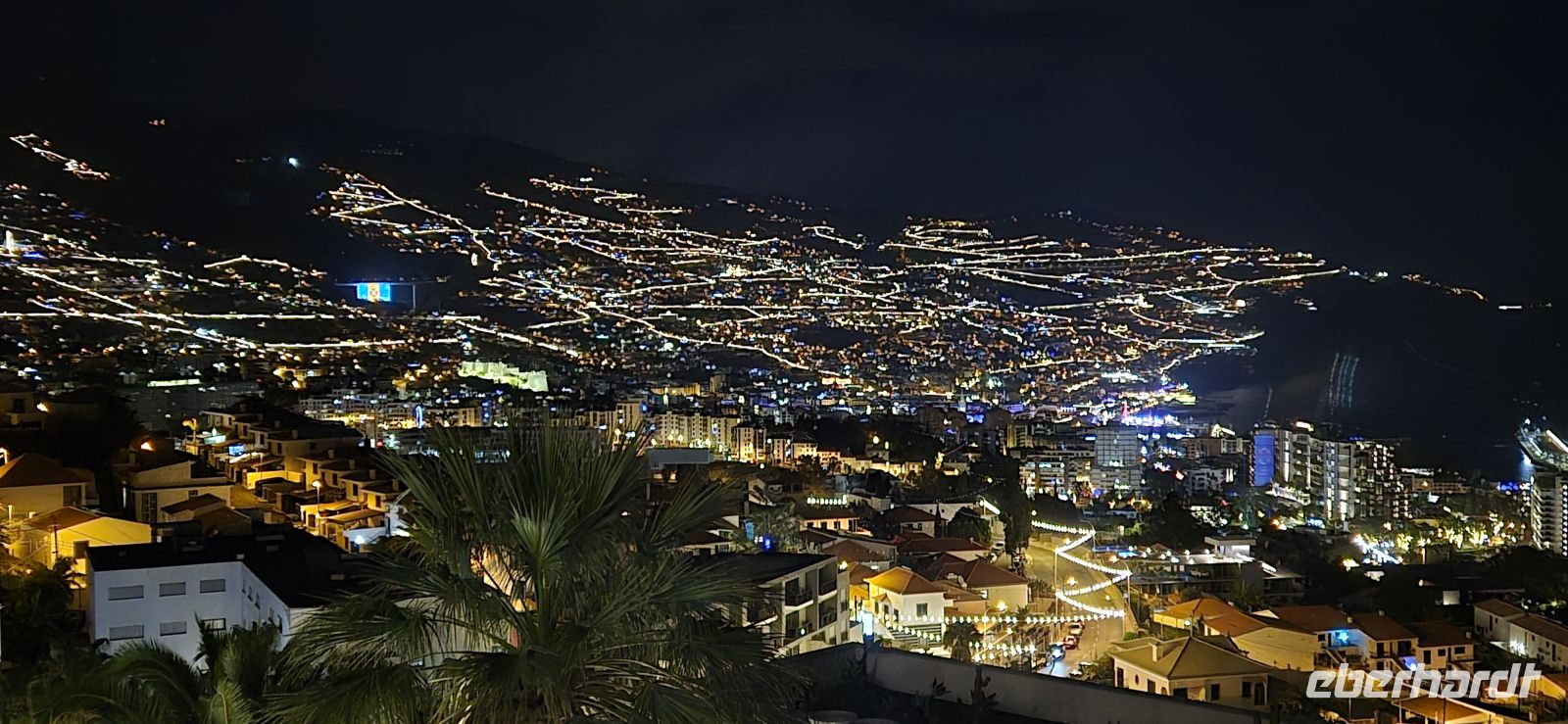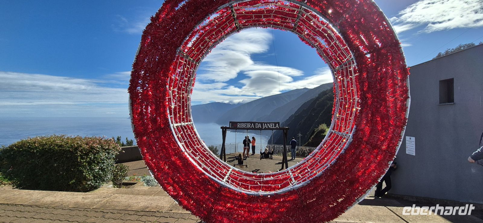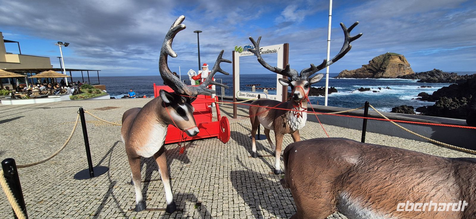 An der Nordküste angekommen blicken wir nun auf steil abfallende Felsen, die uns bis nach Porto Moniz begleiten. Dort legen wir unsere Mittagspause ein. Einige von uns wagen sich in die berühmten Naturschwimmbecken aus Lavagestein – das Wasser ist mit rund 19 Grad zwar frisch, aber herrlich belebend. Wer nicht schwimmt, kann das Spektakel vom Ufer aus genießen und gemütlich am Meer entlang schlendern. Gestärkt und erfrischt fahren wir weiter entlang der Nordküste, vorbei an kleinen Ortschaften wie Seixal mit traumhaftem Meerblick. Selbst die Friedhöfe liegen hier spektakulär. Unser letzter Halt des Ausflugs planen wir in São Vicente ein und spazieren durch das ruhige Dorf, besuchen die barocke Kirche aus dem Jahr 1692 – ein weiteres schönes Zeugnis der Geschichte Madeiras. Auf der Rückfahrt haben wir eigentlich vor, mit unserem Bus über den Pass und nicht durch den Tunnel zu fahren. Doch auf halber Strecke macht uns ein Steinschlag auf der Straße einen Strich durch die Rechnung. Ein Weiterkommen ist unmöglich – wenden kann unser langer Bus hier ebenfalls nicht. Also heißt es: rund 25 Minuten rückwärts den Berg hinunter. Eine echte Meisterleistung unseres Busfahrers Luis, der uns ruhig und sicher wieder nach unten bringt. Einen großen Applaus spendend und wohlbehalten entscheiden wir uns anschließend doch für den Tunnel und erreichen über die Südseite wieder Funchal – erleichtert und beeindruckt zugleich. Am Abend lassen wir den Tag genussvoll ausklingen. In einem typischen Spezialitätenrestaurant, der „Quinta Estacao“ probieren wir die berühmte Insel-Spezialität: den traditionellen „Espetada“-Rindfleischspieß. Anschließend erleben wir Funchal leider mit kühlem Nass von oben bei einer stimmungsvollen Panorama- und Lichterfahrt. Die Stadt ist festlich geschmückt, weihnachtlich beleuchtet und zeigt sich von ihrer festlichen Seite – ein wunderschöner Abschluss dieses erlebnisreichen Tages.