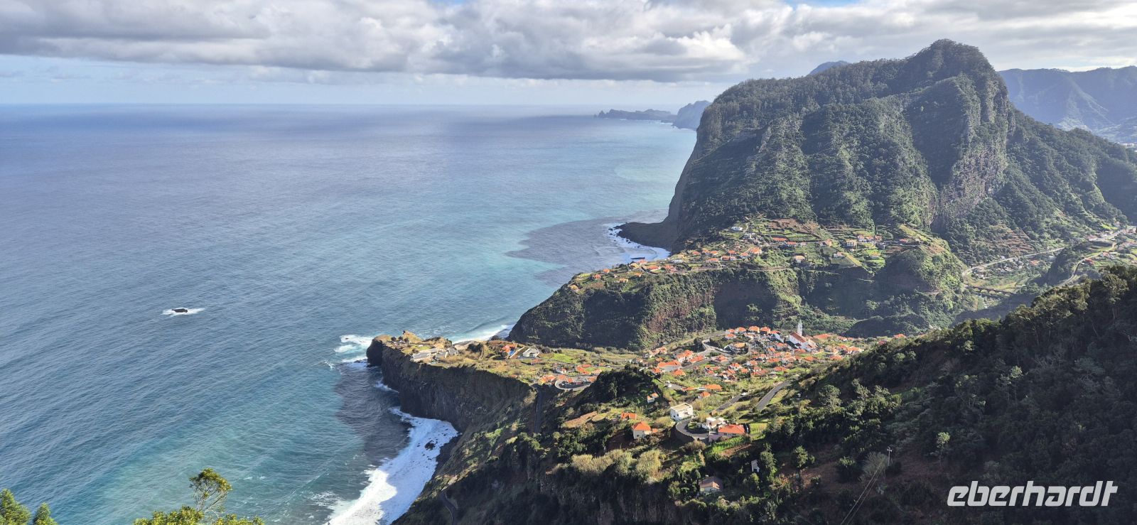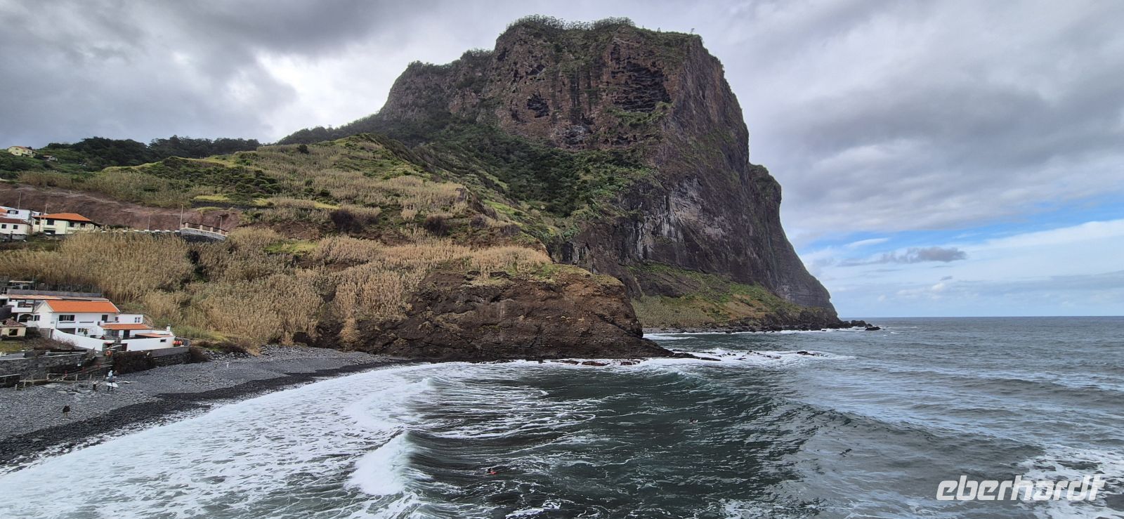 In unserem Mittagsziel Santana, ursprünglich „Santa Ana“ warten die berühmten strohgedeckten Häuser auf uns – bunt, charmant und typisch Madeira. Wir erfahren, wie aufwendig und kostspielig die Pflege dieser strohgedeckten Dächer ist, bevor es weiter an die Nordküste nach Porto da Cruz geht. Zunächst testen wir auch hier die Spezialität Poncha, die uns nochmals besser schmeckt als am Abend zuvor, von dort starten wir den Spaziergang am Meer entlang und runden den Nachmittag eindrucksvoll ab.