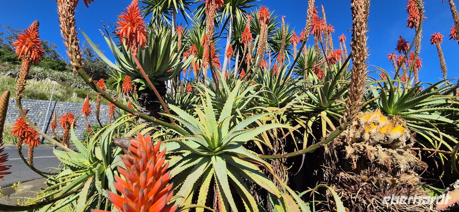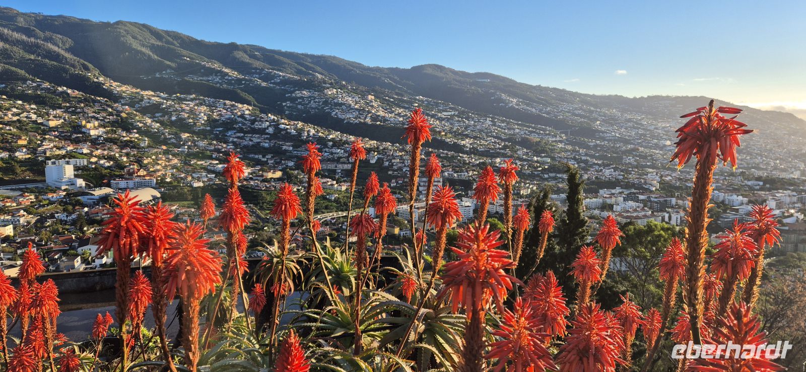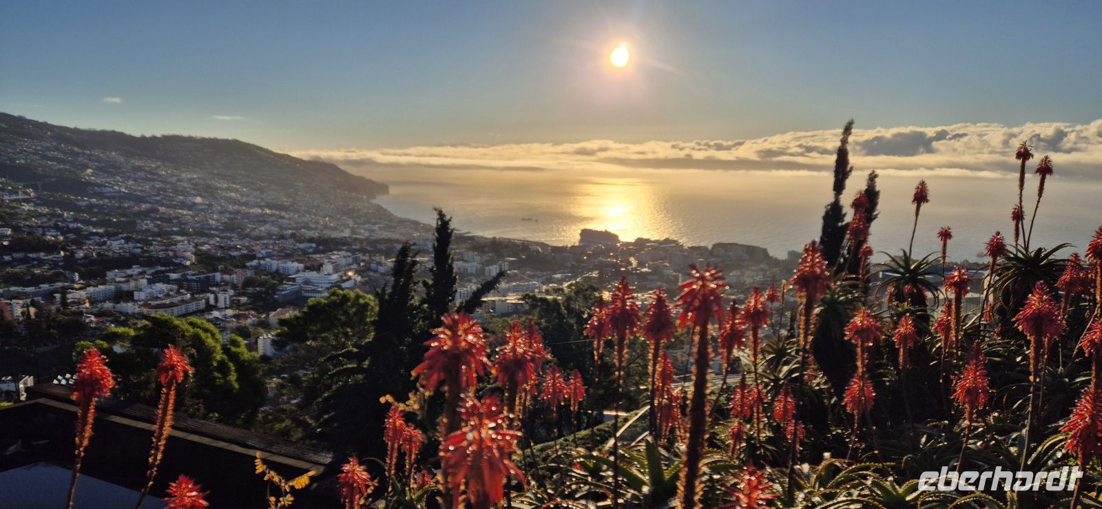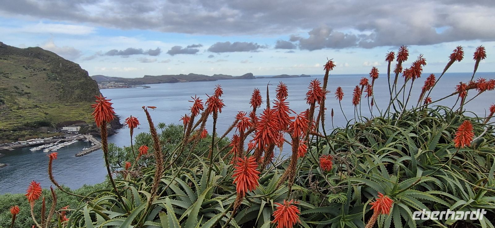 Auf dem Rückweg erfolgt noch ein letzter Fotostopp mit Blick auf Machico mit einem der wenigen Sandstrände der Insel, dessen Sand einst aus Marokko aufgeschüttet wurde. Die Ostspitze „Ponta de São Lourenço“ und die davor blühenden Aloen, hier auch Weihnachtskerzen genannt, lassen unsere Handys glühen. Zurück in Funchal klingt der erlebnisreiche Tag beim Abendbuffet im Hotel aus – und erfüllt von vielen neuen Eindrücken, üppiger Natur und toller Momente geht unser erster Ausflugstag zu Ende.