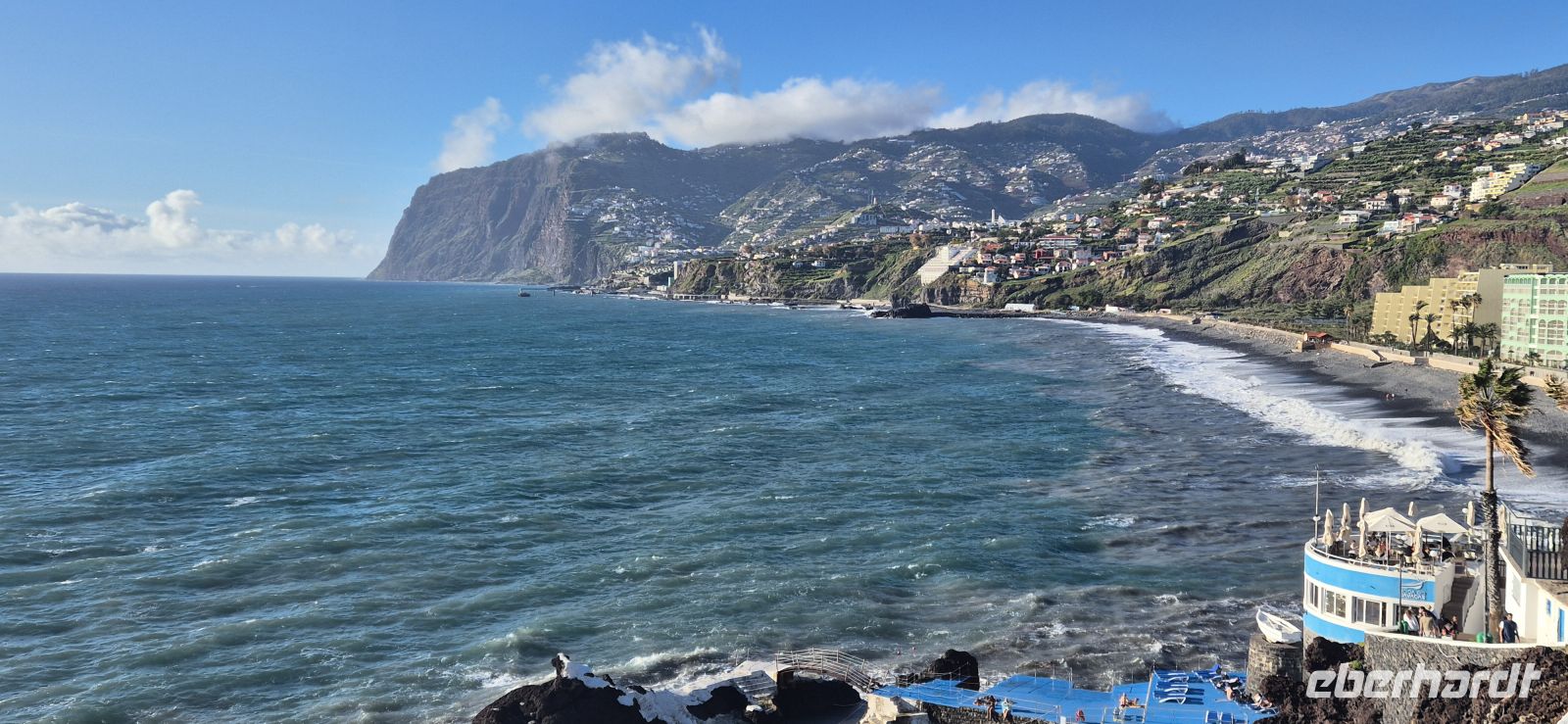 Nach einer regenreichen und stürmischen Nacht starten wir voller Vorfreude in einen weiteren abwechslungsreichen Tag auf Madeira. Der Wetterwechsel ist unglaublich. Nun wolkenloser Himmel, die Sonne scheint und wir? Wir können unser Glück nicht fassen. Unser erster Halt ist Pico dos Barcelos. Von hier oben eröffnet sich uns ein beeindruckender 360-Grad-Blick über Funchal – die Stadt liegt uns regelrecht zu Füßen. Kein Wunder, dass dieser Aussichtspunkt besonders rund um den Jahreswechsel so beliebt ist. Weiter geht es hinauf nach Eira do Serrado auf über 1.096 m Metern Höhe. Die kurvenreiche Fahrt ist ein Erlebnis für sich, doch unser Fahrer Luis, der nicht nur hervorragend rückwärts fahren kann, bringt uns mit bewundernswerter Ruhe sicher ans Ziel. Oben angekommen genießen wir den spektakulären Blick hinab ins Curral das Freiras, das Nonnental, das rund 500 Meter unter uns liegt. Bei einem Kaffee auf der Panoramaterrasse lassen wir diese besondere Bergwelt und das geniale Wetter entspannt auf uns wirken. Vorab bereits brachte uns unsere Reiseleiterin Fátima die Kunst des Kaffeebestellens auf Madeira näher. Bica, Garoto oder Chino – wir lernen schnell, dass man mit den richtigen Begriffen nicht nur besseren Kaffee bekommt, sondern auch gleich ein bisschen Portugiesisch mitlernt. In Ponta do Sol tauchen wir in die Welt der Madeira-Banane ein. Auf der Plantage erfahren wir Spannendes über Anbau und Ernte – modern erklärt im neugebauten Museum mit einer 3D-Animation. Eine Kostprobe darf nicht fehlen: Ein nur hier gebrautes Bananenbier sorgt für Überraschung. Im Anschluss erwartet uns ein weiterer Höhepunkt: Cabo Girão, mit 580 Metern die höchste Steilklippe Europas. Mutige wagen sich auf die gläserne Plattform und blicken direkt in die Tiefe und haben eine ungehinderte Sicht bis zum Grund. Ebenso beeindruckend ist die Sicht in die Ferne, sodass wir über das gesamte Meer bis nach Funchal schauen können. Abschließend erreichen wir das farbenfrohe Fischerdorf Câmara de Lobos. Bei angenehmen Temperaturen genießen wir das lebendige Treiben, die bunten Boote und schöne Stimmung in diesem malerischen Ort. Nach dem offiziellen Programmende bleiben zehn Gäste und ich noch im Ort. Wir schlendern gemütlich durch Câmara de Lobos, gönnen uns Kaffee und Kuchen und machen uns anschließend zu Fuß auf den Weg zurück nach Funchal – ganze neun Kilometer direkt am Meer entlang. Unterwegs kehren wir spontan in meinem Stammlokal auf ein kühles Getränk am Praia Formosa ein und genießen bei fantastischem Wetter diesen herrlichen Spaziergang in vollen Zügen. Am Abend treffen wir uns hungrig wieder zum gemeinsamen Abendessen. Den perfekten Abschluss bildet eine stimmungsvolle Folklore-Show in der Hotelbar – ein rundum gelungener Tag, der uns einmal mehr zeigt, wie toll es zu dieser Jahreszeit auf Madeira ist, während es zuhause oft grau und winterlich ist.