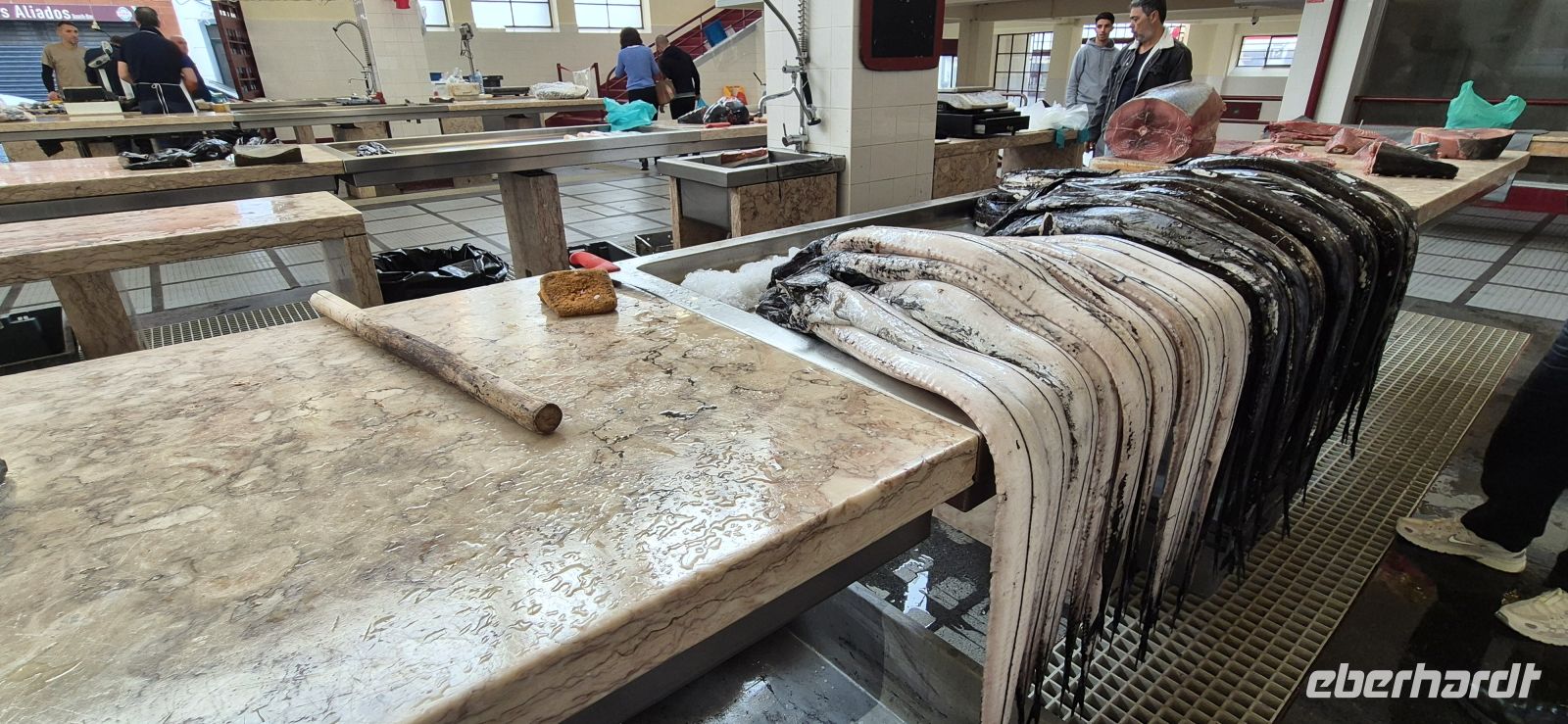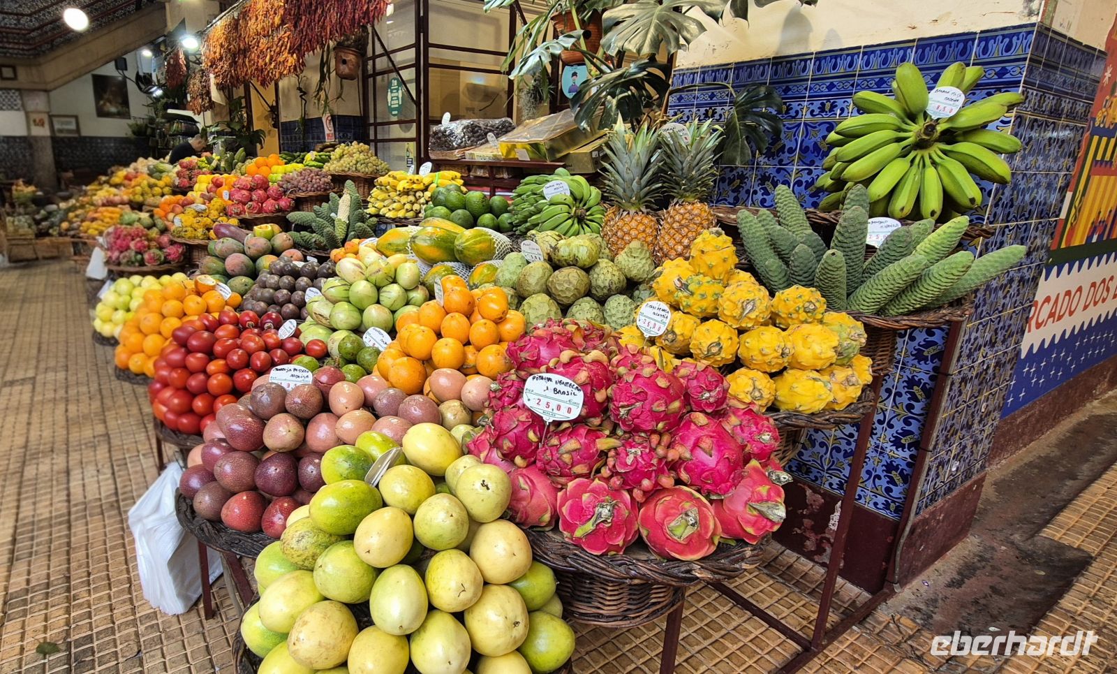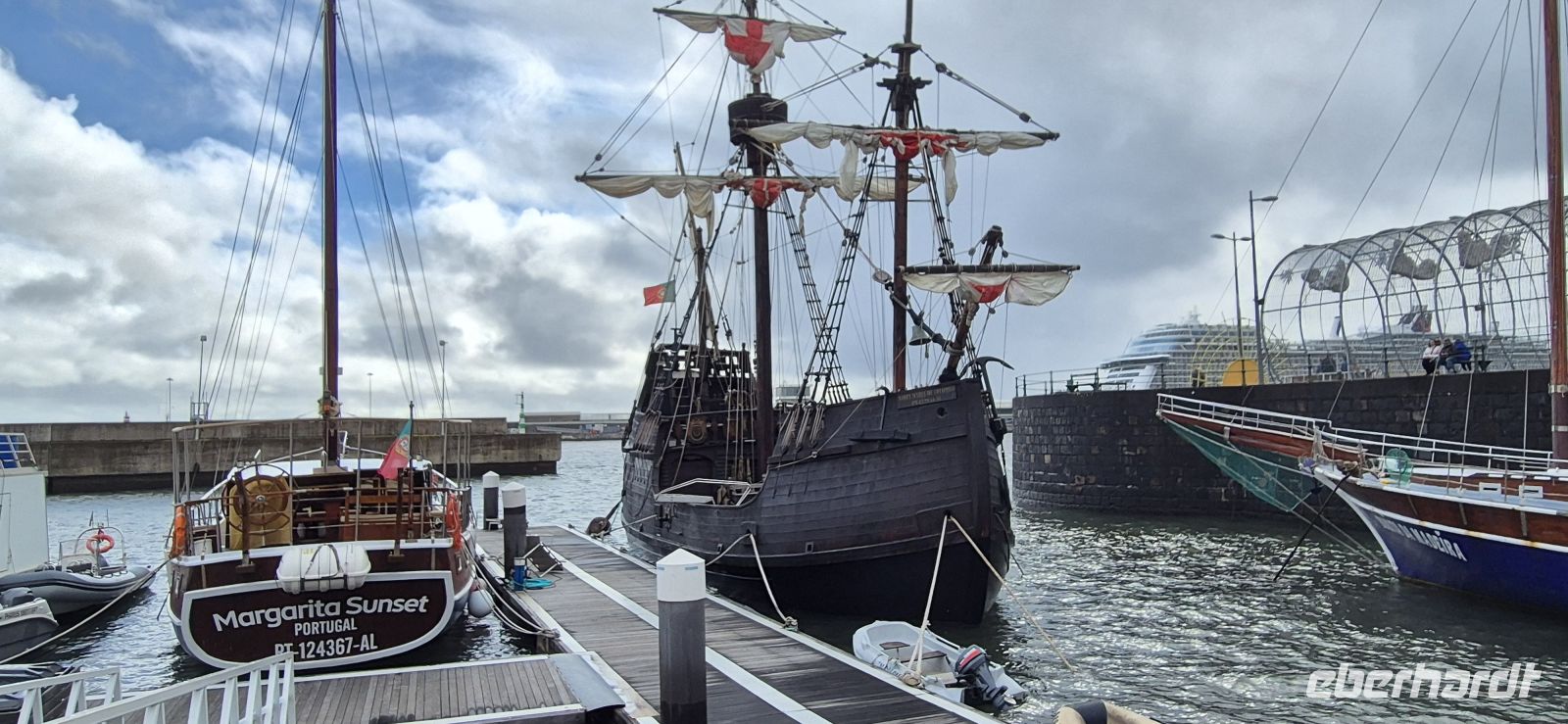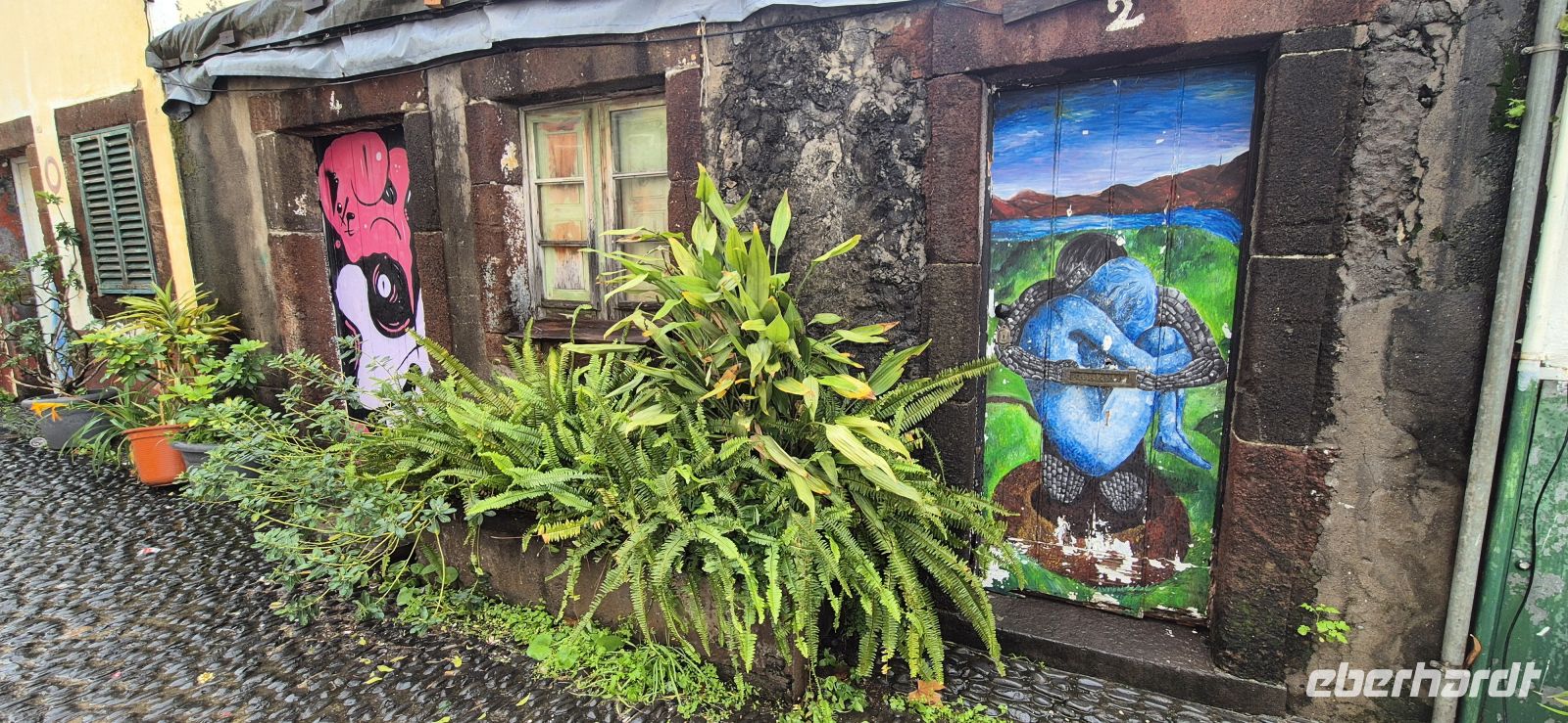 Gut gestärkt machen wir uns auf den Weg, die Hauptstadt der Insel, Funchal, mit 108.000 Einwohnern und einigen Kreuzfahrern näher kennenzulernen. Mit unserer liebenswerten Reiseleiterin Fatima tauchen wir direkt ins Stadtleben ein – dank Funkgeräten hören wir jedes Wort, selbst wenn wir ein paar Schritte zurückfallen. Schon bald wird klar: Auf Madeira kommt man an Cristiano Ronaldo nicht vorbei. Sein Name begegnet uns überall und gehört hier einfach dazu. Unsere Fahrt führt uns vorbei an sattgrünen Bananenstauden und üppig blühenden Pflanzen, während der Atlantik immer wieder durchblitzt. In der Altstadt spazieren wir durch schmale Gassen, entdecken fantasievoll bemalte Haustüren und lassen uns vom bunten Treiben auf dem Mercado dos Lavradores mitreißen. Exotische Früchte stapeln sich an den Ständen, und der schwarze Degenfisch in der Fischhalle sorgt für staunende Blicke, wie meinte Fatima so schön: „zum Glück schmeckt er besser, als er aussieht!“. Nachdem wir etwas Zeit zur freien Verfügung hatten und die Markthalle ausgiebig besichtigen konnten, spazieren wir weiter durch die Haupteinkaufstraße der Stadt. Vorbei an typisch portugiesischen Spezialitäten wie Stockfisch (Bacalhau), Pastel de Nata oder Bolo do Caco, einfach nur köstlich, muss man probiert haben. Ein genussvoller Stopp erwartet uns im Anschluss in der Blandy’s Wine Lodge. Bei einer Führung durch Fatima erfahren wir, was den Madeira-Wein so besonders macht, bevor wir zwei Sorten verkosten – ein echtes Stück Inseltradition im Glas. Danach geht es weiter nach Caniço zur Quinta Splendida. Hier werden wir kulinarisch mit Tee, Kaffee sowie saftigem Schokoladen- und Apfelnusskuchen empfangen. Trotz des regnerischen Wetters nehmen die meisten von uns an einer Führung über das Anwesen teil und spazieren mit Fatima durch die gepflegten Gärten, vorbei an Blumen, Kräutern und dem hauseigenen Gemüsegarten. Das Wetter zeigt sich heute von seiner nassen Seite – Madeira im Regen. Hilft alles nichts, ohne Regen gäbe es hier nicht eine solch wundervolle Natur! Doch die Stimmung bleibt bestens, denn am Abend freuen wir uns auf ein festliches Silvester-Gala-Buffet. In geselliger Runde lassen wir das Jahr ausklingen und hoffen auf einen gelungenen Jahreswechsel mit funkelndem Feuerwerk, das wir von unserer Dachterrasse aus bewundern dürfen.