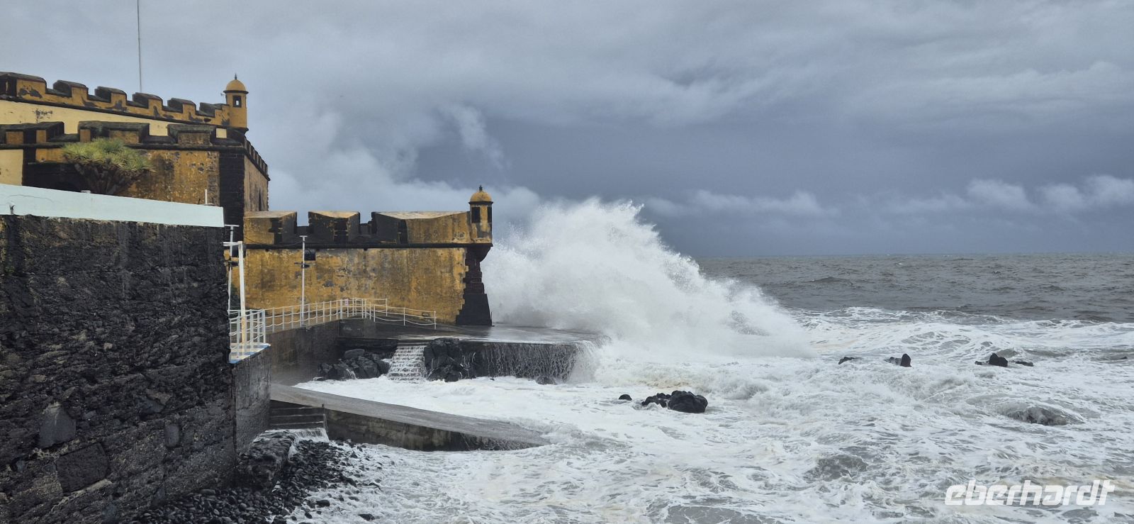 Der Neujahrstag beginnt anders als geplant: Unsere für mittags geplante Levada-Wanderung muss wegen der schlechten Wetterlage abgesagt werden, alle Wanderwege der Insel sind offiziell gesperrt. Somit schlafen wir erst mal aus, genießen das tolle Neujahrsfrühstück und nutzen stattdessen den unverhofften freien Tag spontan für einen gemütlichen Spaziergang in die Stadt. Einige Gäste schließen sich uns an, und gemeinsam machen wir uns zu Fuß vom Hotel auf den Weg nach Funchal. Wir schlendern noch einmal über den Weihnachtsmarkt, tauchen ein in die lebendige Altstadt und spazieren durch die berühmte Gasse mit den bunt bemalten Türen. Weiter geht es bis zum alten Fort, dann entlang der Küste zurück – mit Blick auf das heute sehr wilde Meer und frischer Brise – bis zum Ronaldo-Museum. Von dort laufen wir sportlich wieder hinauf zum Hotel Panoramico. Das Wetter zeigt sich heute launisch: Sonne, Wolken und ein paar Regentropfen wechseln sich ab, doch am Nachmittag strahlt schließlich wieder die Sonne. Ein ungeplanter, aber doch richtig schöner aktiver Start ins neue Jahr.