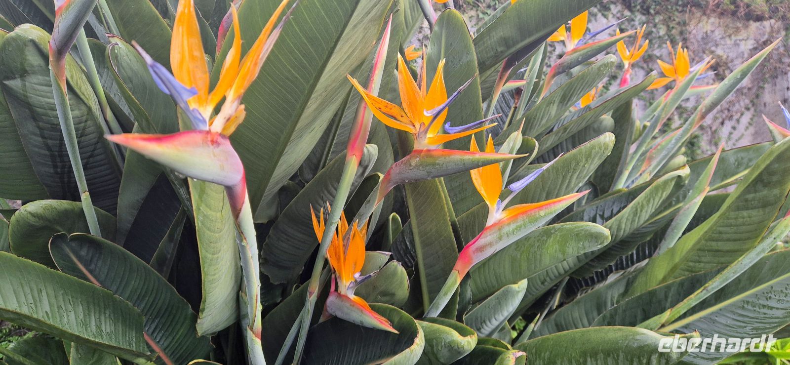 Bei angenehmer Ruhe im Speiseraum genießen wir ein leckeres Frühstück. Nun starten wir unseren heutigen letzten Programmtag mit einem Ausflug in den Palheiro Garten, der vielen auch als „Blandy’s Garden“ bekannt ist. Seit rund 200 Jahren schlängeln sich die steinernen Wege durch die gepflegte Gartenlandschaft und erzählen von einer Zeit, in der hier mit großer Liebe zur Botanik gestaltet wurde. Der Blick hinunter auf Funchal und den satten Grünton des Palheiro Golfplatzes ist schlicht beeindruckend und schon bald erreichen wir die berühmte Kamelienallee. Von November bis April entfaltet sie ihre volle Pracht und präsentiert sich in einer unglaublichen Farbvielfalt. Kräftiges Rubinrot, zartes Rosa, cremige Weißtöne. Doch damit nicht genug: Wir begeben uns auf eine botanische Weltreise. Wir sehen herrliche Königsproteen, die Nationalblumen Südafrikas, die hier ebenfalls bestens gedeihen. Magnolien setzen elegante Akzente, Strelitzien erinnern an exotische Paradiese und mächtige Bäume verleihen dem Garten ein ganz besonderes Ambiente. Historische Elemente fehlen ebenfalls nicht: Eine kleine Johanneskapelle aus dem 18. Jahrhundert sowie ein ehemaliges Jagdhaus, das heute als Hotel genutzt wird, fügen sich harmonisch in das grüne Ensemble ein. Nach so vielen Eindrücken gönnen wir uns eine Pause im Teehaus. Bei einem wärmenden „Cafezinho“ lassen wir das Gesehene Revue passieren. Sehr wohltuend, denn Petrus meint es leider nicht ganz so gut mit uns. Das Wetter zeigt sich ungewöhnlich launisch: Regen, Wolken und Sonne wechseln sich im Laufe des Tages immer wieder ab – und halten diesen Rhythmus leider hartnäckig durch. Dazu ist es etwas kühler, windiger und feuchter als sonst zu dieser Zeit auf Madeira üblich. Anschließend setzen wir unseren Ausflug fort und besuchen den Orchideengarten „Quinta da Boa Vista“. Schon beim Eintreten fühlen wir uns wie in einer anderen Welt – tropisch, farbenfroh und voller Leben. Unzählige Orchideen präsentieren sich in den außergewöhnlichsten Formen und Farben. Besonders ins Auge fällt uns der sogenannte „Jadewein“, eine grünlich schimmernde, hängende Orchidee, die mit ihrer außergewöhnlichen Erscheinung fasziniert. Normalerweise führt Inhaber Patrick persönlich durch seinen Garten und begeistert mit seiner großen Leidenschaft und seinem umfassenden Wissen – sein sprichwörtlich grüner Daumen ist überall sichtbar. Heute ist er zwar nicht vor Ort, doch seine deutsche Mitarbeiterin Kimi übernimmt die Führung und begleitet uns ebenso kompetent, informativ und mit spürbarer Begeisterung durch dieses florale Paradies.