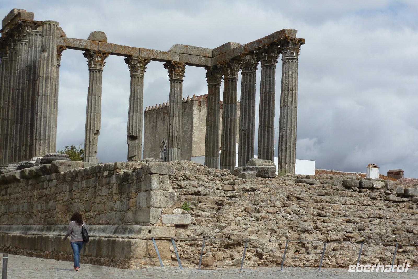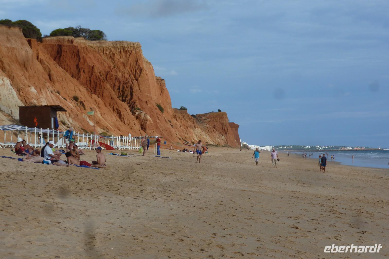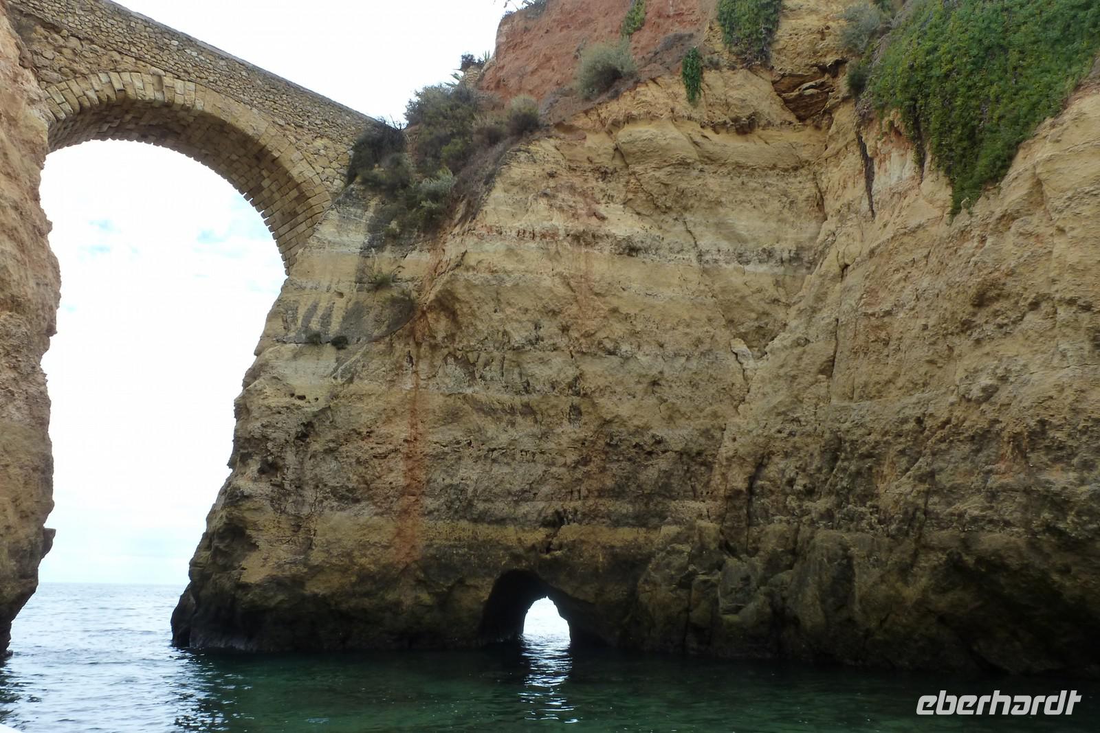 Heute geht es Richtung Süden. Vorbei am EXPO-Gelände über die 17 km lange Brücke Vasco da Gama starten wir nach Évora. Das Wahrzeichen der Sadt ist der römische Tempel der Göttin Diana, den man eher zufällig entdeckt hatte. Nach der Mittagspause führt uns Luisa weiter durch die Gassen des Ortes bis zur Franziskanerkirche. Bevor wir wieder in den Bus steigen, sehen wir „neomaurische Restbebauung'' in der Nähe der alten Stadtmauer, wo wir auch die Gelegenheit haben, frei laufende Pfaue zu bestaunen. Die weitere Fahrt führt uns vorbei an Korkeichen, märchenhaften Wiesen und sanften Hügeln, wobei uns Luisa mit der Geschichte des Hahns von Barcelo und mit Witzen über die Alentejaner - dem Äquivalent zu unseren Ostfriesenwitzen - unterhält. Am späten Nachmittag erreichen wir die Gebirgskette vor der Algarve. Auf der anderen Seite des Gebirges erwarten uns Orangenplantagen, Feigen- und Johannisbrotbäume.