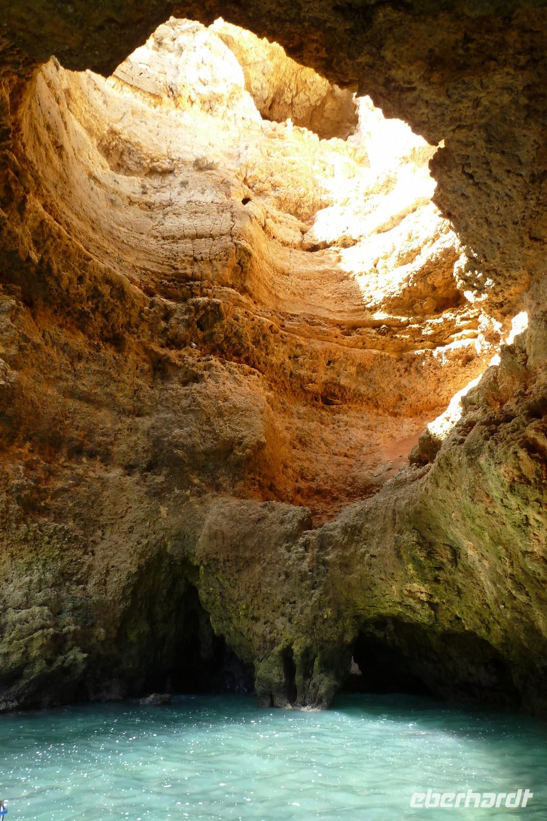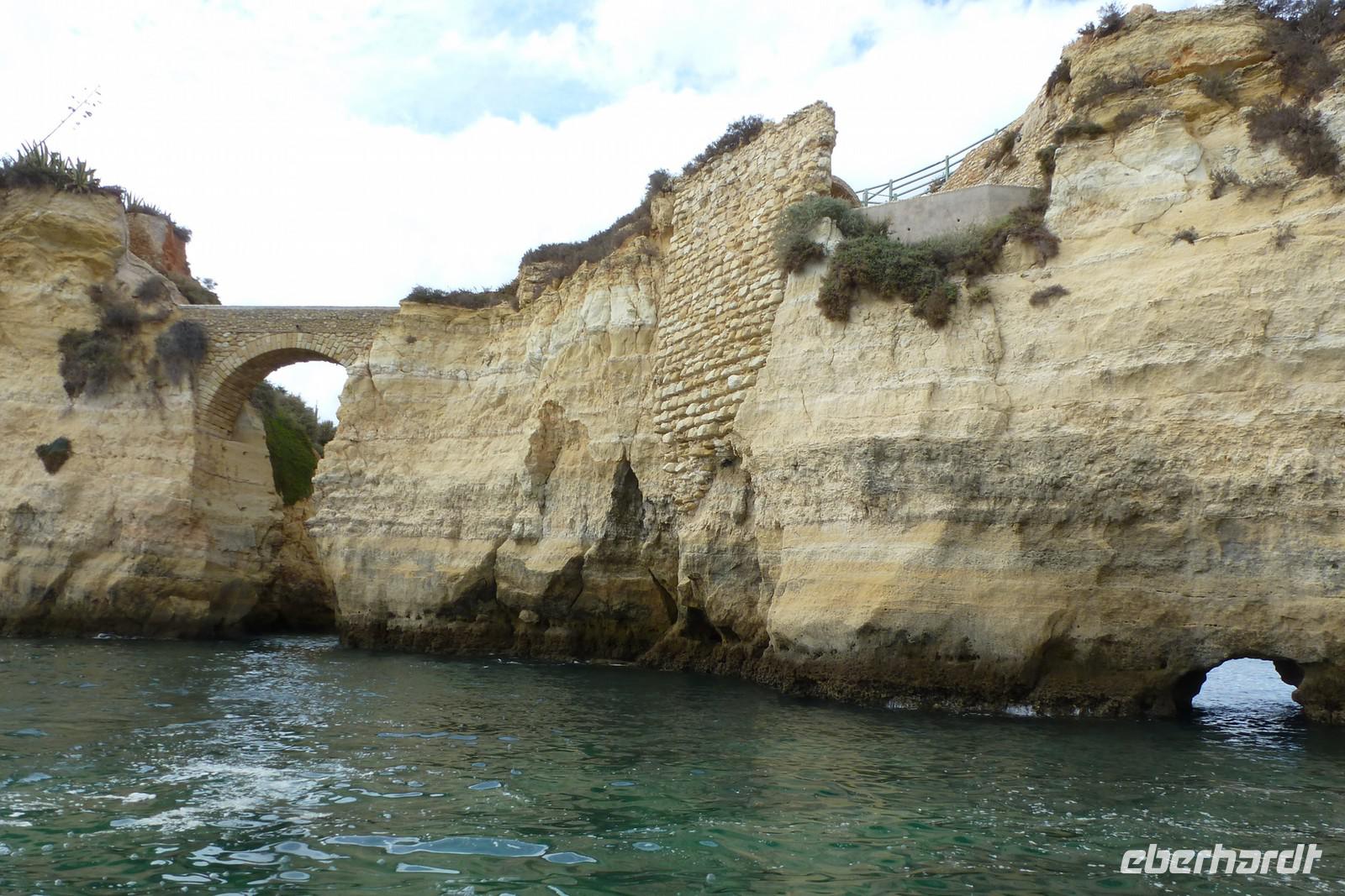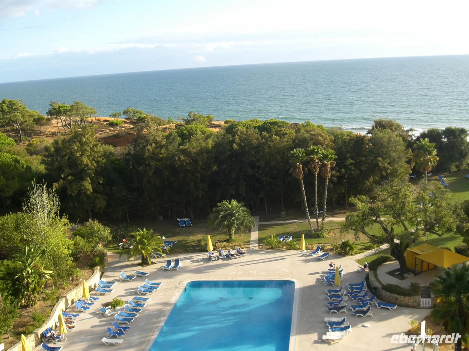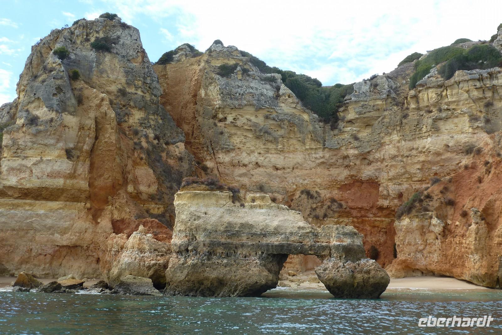 Heute geht es Richtung Süden. Vorbei am EXPO-Gelände über die 17 km lange Brücke Vasco da Gama starten wir nach Évora. Das Wahrzeichen der Sadt ist der römische Tempel der Göttin Diana, den man eher zufällig entdeckt hatte. Nach der Mittagspause führt uns Luisa weiter durch die Gassen des Ortes bis zur Franziskanerkirche. Bevor wir wieder in den Bus steigen, sehen wir „neomaurische Restbebauung'' in der Nähe der alten Stadtmauer, wo wir auch die Gelegenheit haben, frei laufende Pfaue zu bestaunen. Die weitere Fahrt führt uns vorbei an Korkeichen, märchenhaften Wiesen und sanften Hügeln, wobei uns Luisa mit der Geschichte des Hahns von Barcelo und mit Witzen über die Alentejaner - dem Äquivalent zu unseren Ostfriesenwitzen - unterhält. Am späten Nachmittag erreichen wir die Gebirgskette vor der Algarve. Auf der anderen Seite des Gebirges erwarten uns Orangenplantagen, Feigen- und Johannisbrotbäume.