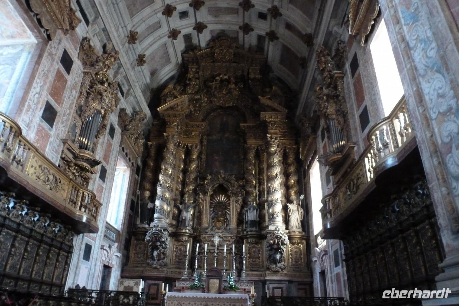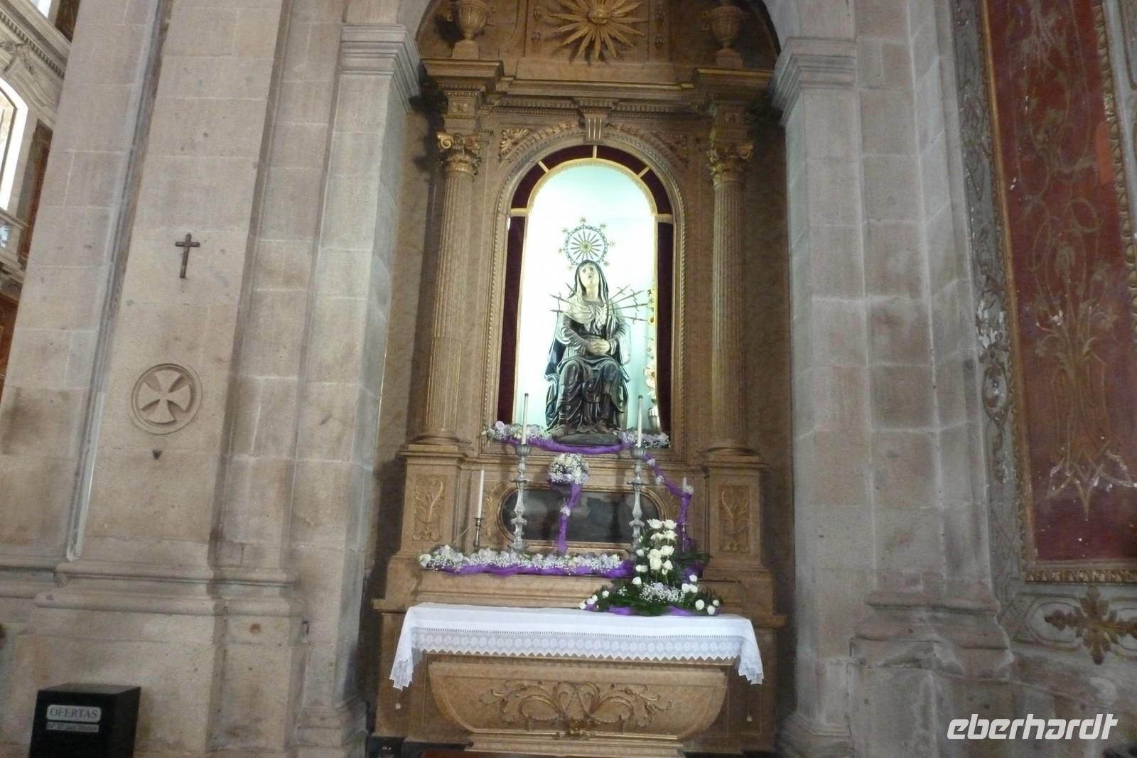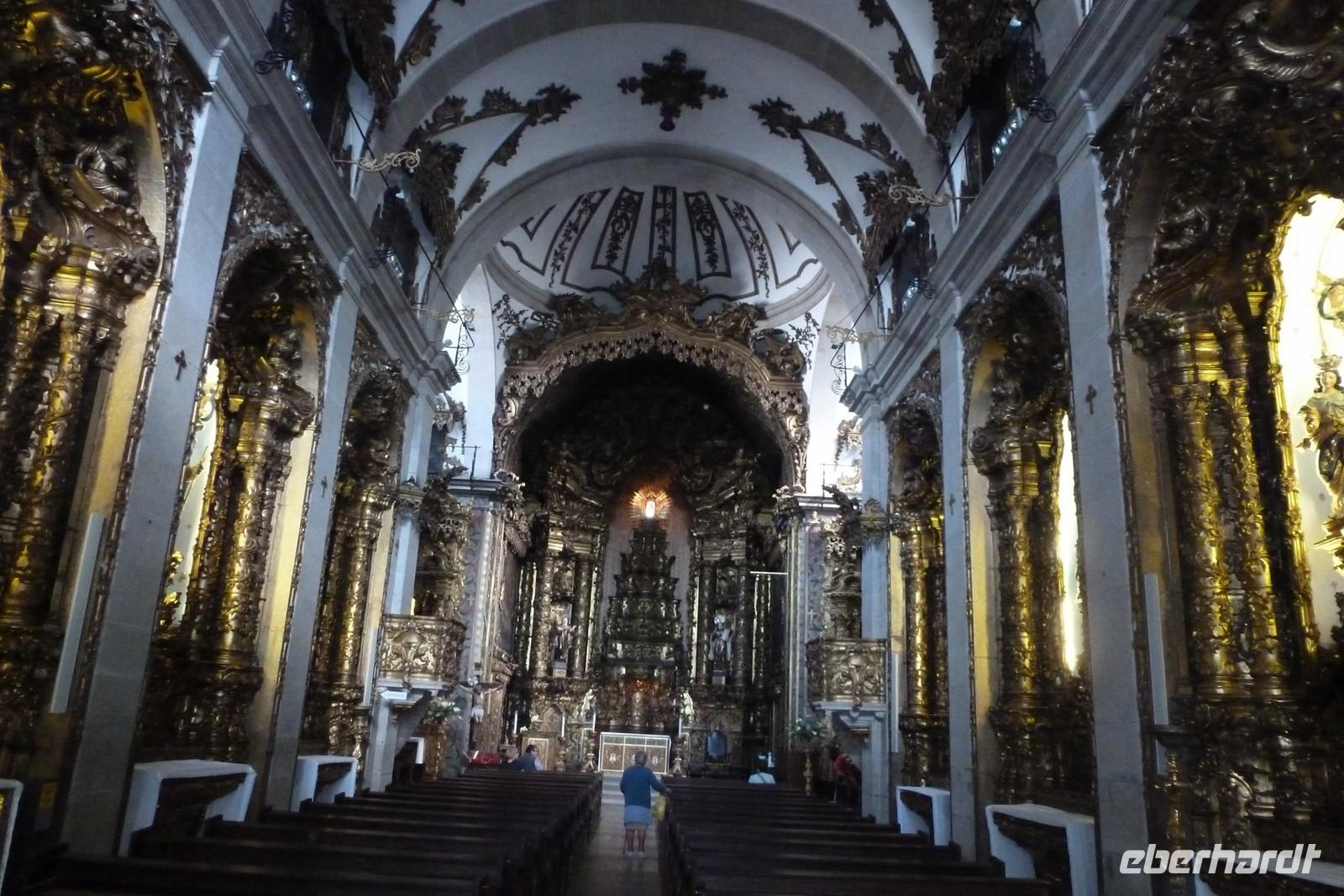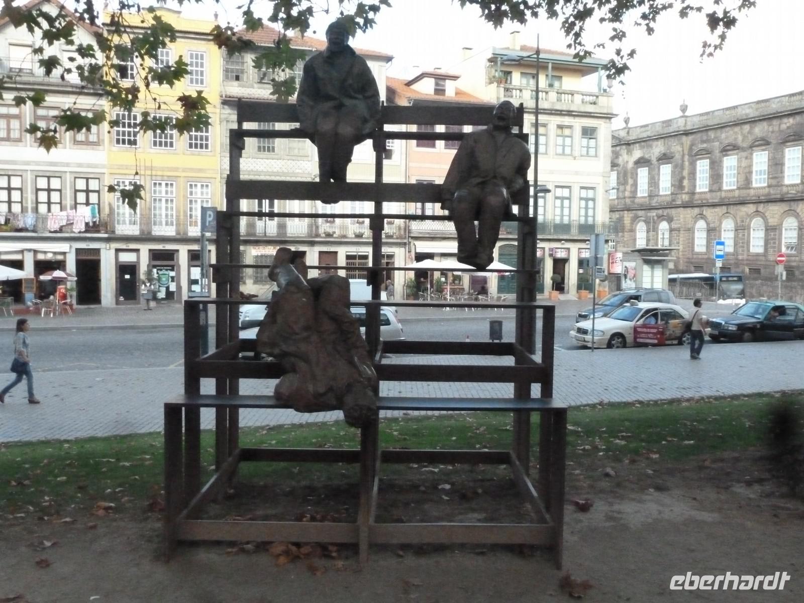 Heute ging es nach Guimaraes, der Wiege Portugals, wo unsere Besichtigung mit der alten Burganlage und der S.Miguel-Kapelle begann. In der Kapelle erzählt uns Luisa die Gründungsgeschichte Portugals sowie die inoffizielle, erwachsene Version. Anschließend ging es hinab ins Stadtzentrum, wo wir durch enge Gassen liefen und vor dem Regen dann zuerst unter dem alten Rathaus und dann in der Kathedrale Schutz suchten. In der Kathedrale hatten wir die Gelegenheit, eine Konzert der anderen Art zu hören, dass uns asiatisch inspirierte Improvisationsmusik darbot. Auf dem Weg zum Wallfahrtsort Bom Jesus erzählt uns Luisa von den verschiedenen Völkern, die im Laufe der Geschichte das Gebiet des heutigen Portugals besiedelten, darunter Iberer, Kelten, Römer, Germanen, Mauren und Spanier. Von der Wallfahrtskirche aus könnte man bei schönem Wetter einen fantastischen Blick auf Braga genießen, doch leider ist es bewölkt, wenn es nicht gerade regnet. Im Inneren der Kirche ist besonders der Reliquienschrein (hinter Glas) und das Altarbild zu empfehlen, wobei letzteres durch die plastischen Figuren mehr an eine Theaterszene erinnert als an ein Bild. Ein Highlight ist aber in jedem Fall auch die Fahrt mit der wasserbetriebenen, wirklich steilen Standseilbahn aus dem 19. Jahrhundert.Danach fahren wir weiter nach Braga und gönnen uns eine gemütliche Mittagspause. Luisa führt uns anschließend vorbei am Wehrturm zum Bischofspalast, dem alten Klarissinnen-Kloster, dem Garten der Heiligen Barbara und in die Kathedrale Sé ? einen romanischen Bau mit teils barocker Innenraumgestaltung im vorderen Hauptschiff sowie einem gotischen Eingangsportal. Am späten Nachmittag fahren wir nach Porto zurück und da unser Busfahrer ein großer Fan des FC Porto ist, macht es ihm nichts aus, uns für einen Fotostopp noch zum Stadion seines Lieblingsvereins zu fahren. Ein Tag mit vielen portugiesischen Facetten geht in unserem schönen Hotel zu Ende.