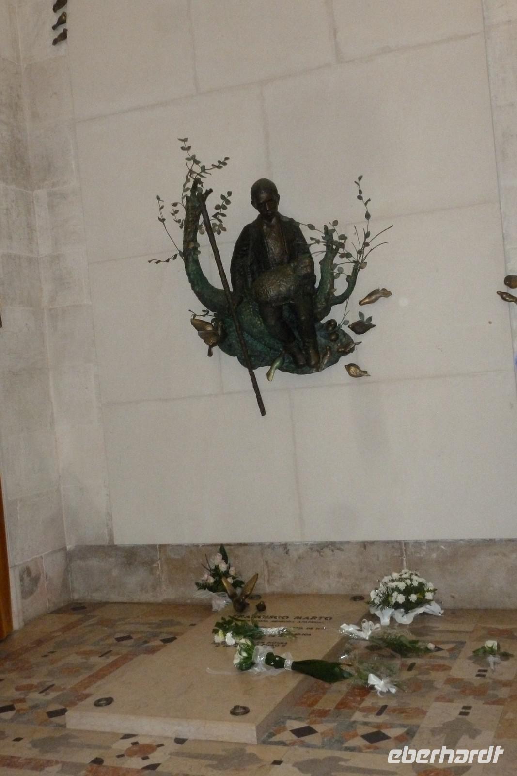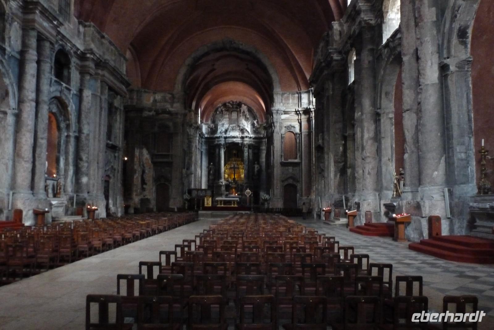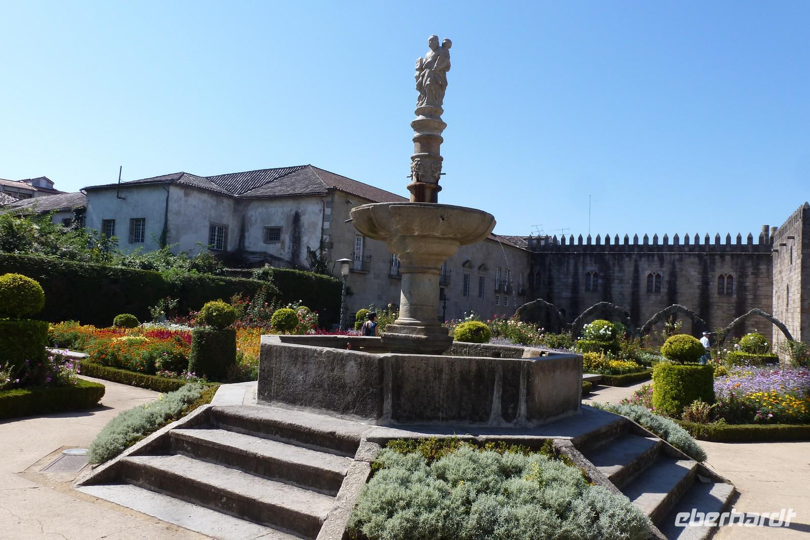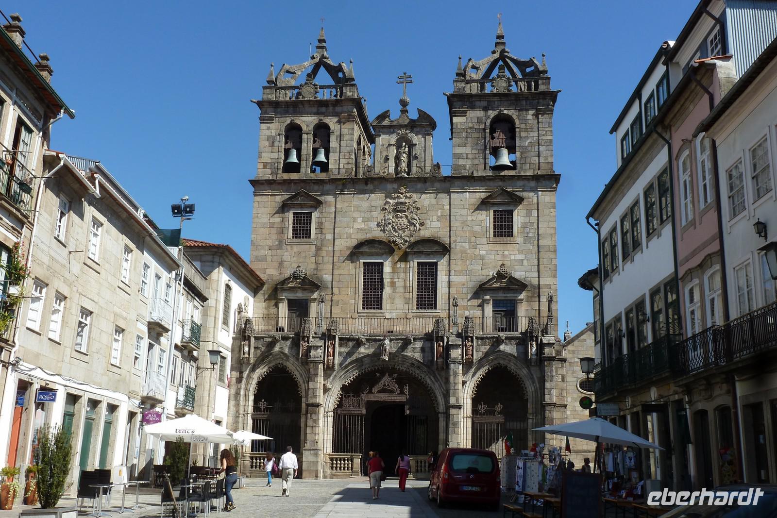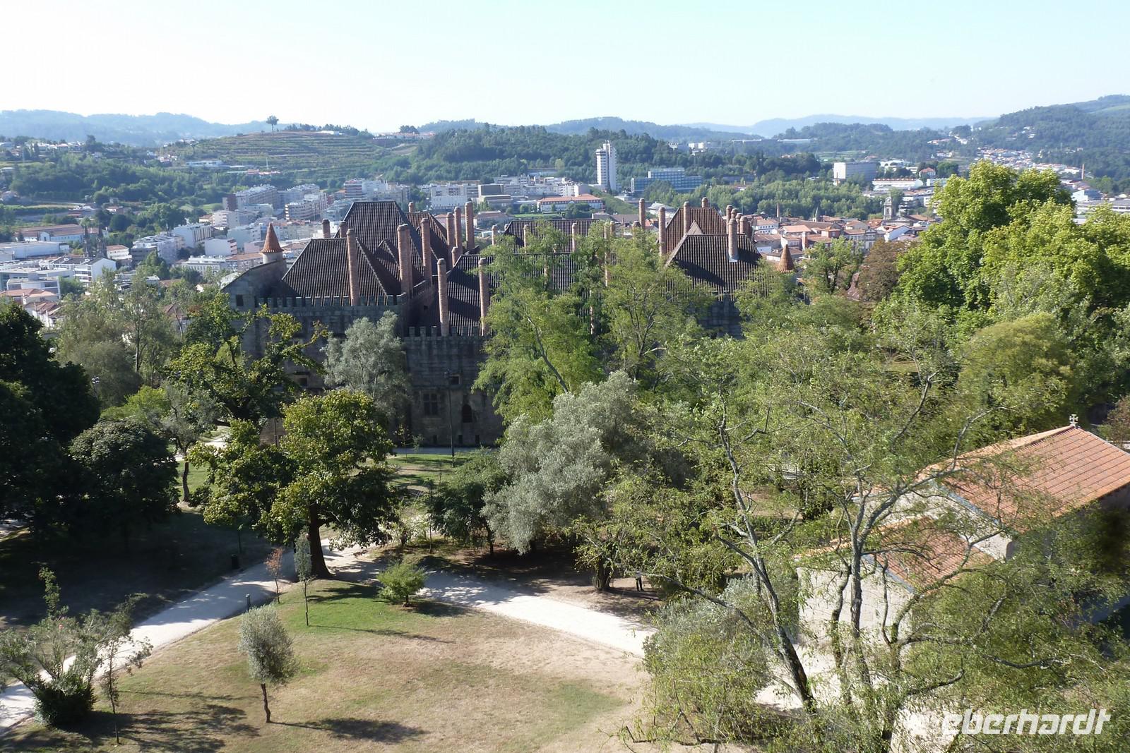 Heute ging es nach Guimaraes, der Wiege Portugals, wo unsere Besichtigung mit der alten Burganlage und der S.Miguel-Kapelle begann. In der Kapelle erzählt uns Luisa die Gründungsgeschichte Portugals sowie die inoffizielle, erwachsene Version. Anschließend ging es hinab ins Stadtzentrum, wo wir durch enge Gassen liefen und vor dem Regen dann zuerst unter dem alten Rathaus und dann in der Kathedrale Schutz suchten. In der Kathedrale hatten wir die Gelegenheit, eine Konzert der anderen Art zu hören, dass uns asiatisch inspirierte Improvisationsmusik darbot. Auf dem Weg zum Wallfahrtsort Bom Jesus erzählt uns Luisa von den verschiedenen Völkern, die im Laufe der Geschichte das Gebiet des heutigen Portugals besiedelten, darunter Iberer, Kelten, Römer, Germanen, Mauren und Spanier. Von der Wallfahrtskirche aus könnte man bei schönem Wetter einen fantastischen Blick auf Braga genießen, doch leider ist es bewölkt, wenn es nicht gerade regnet. Im Inneren der Kirche ist besonders der Reliquienschrein (hinter Glas) und das Altarbild zu empfehlen, wobei letzteres durch die plastischen Figuren mehr an eine Theaterszene erinnert als an ein Bild. Ein Highlight ist aber in jedem Fall auch die Fahrt mit der wasserbetriebenen, wirklich steilen Standseilbahn aus dem 19. Jahrhundert.Danach fahren wir weiter nach Braga und gönnen uns eine gemütliche Mittagspause. Luisa führt uns anschließend vorbei am Wehrturm zum Bischofspalast, dem alten Klarissinnen-Kloster, dem Garten der Heiligen Barbara und in die Kathedrale Sé ? einen romanischen Bau mit teils barocker Innenraumgestaltung im vorderen Hauptschiff sowie einem gotischen Eingangsportal. Am späten Nachmittag fahren wir nach Porto zurück und da unser Busfahrer ein großer Fan des FC Porto ist, macht es ihm nichts aus, uns für einen Fotostopp noch zum Stadion seines Lieblingsvereins zu fahren. Ein Tag mit vielen portugiesischen Facetten geht in unserem schönen Hotel zu Ende.