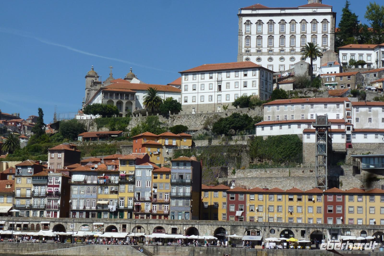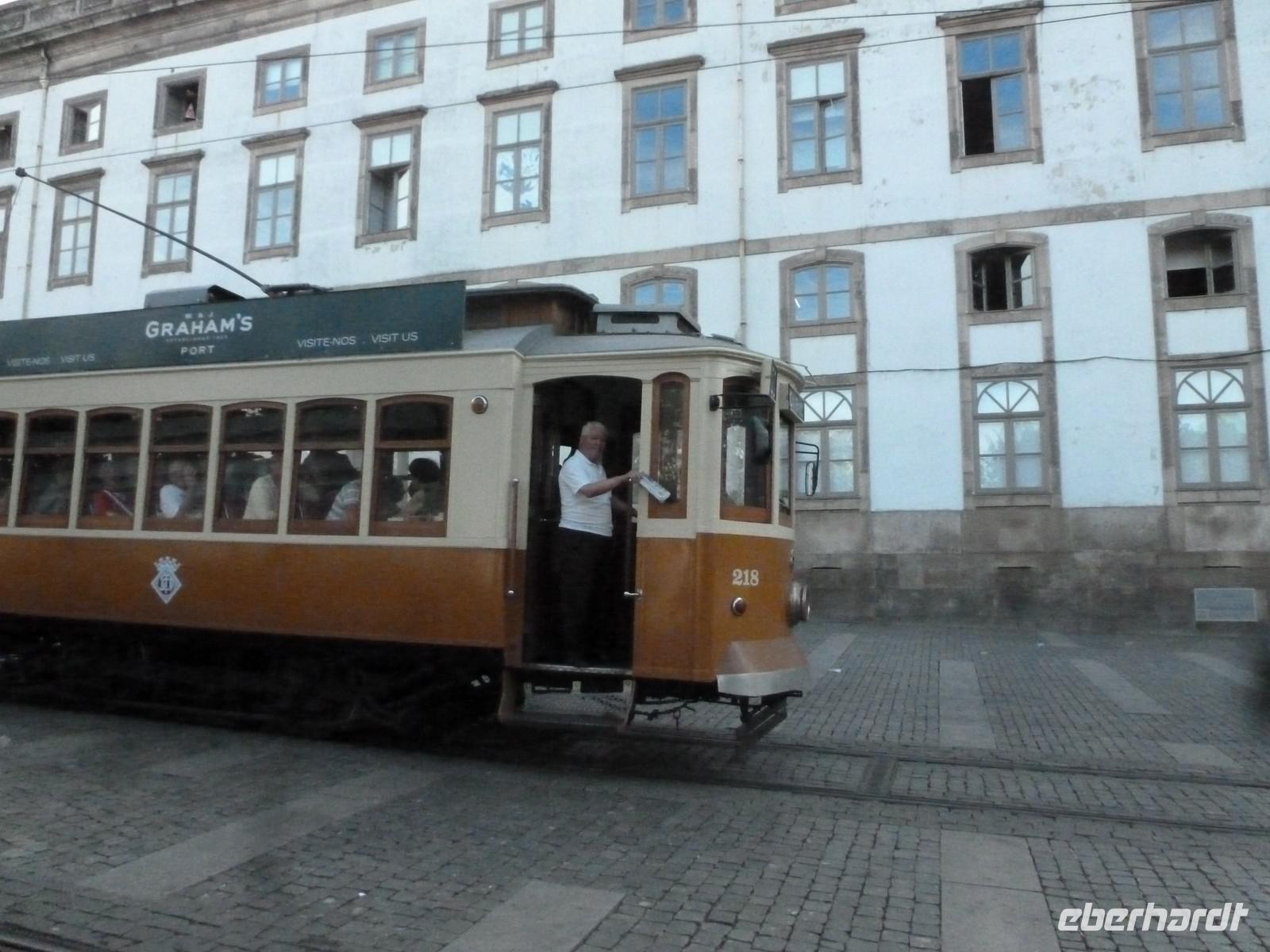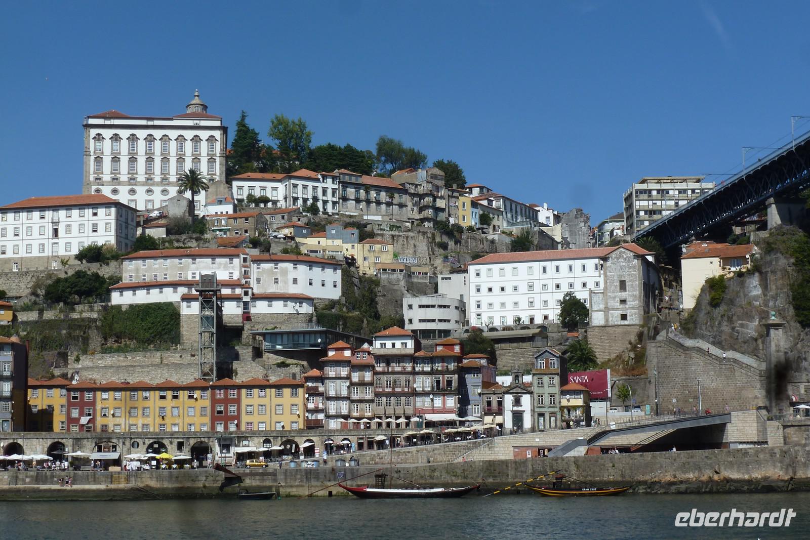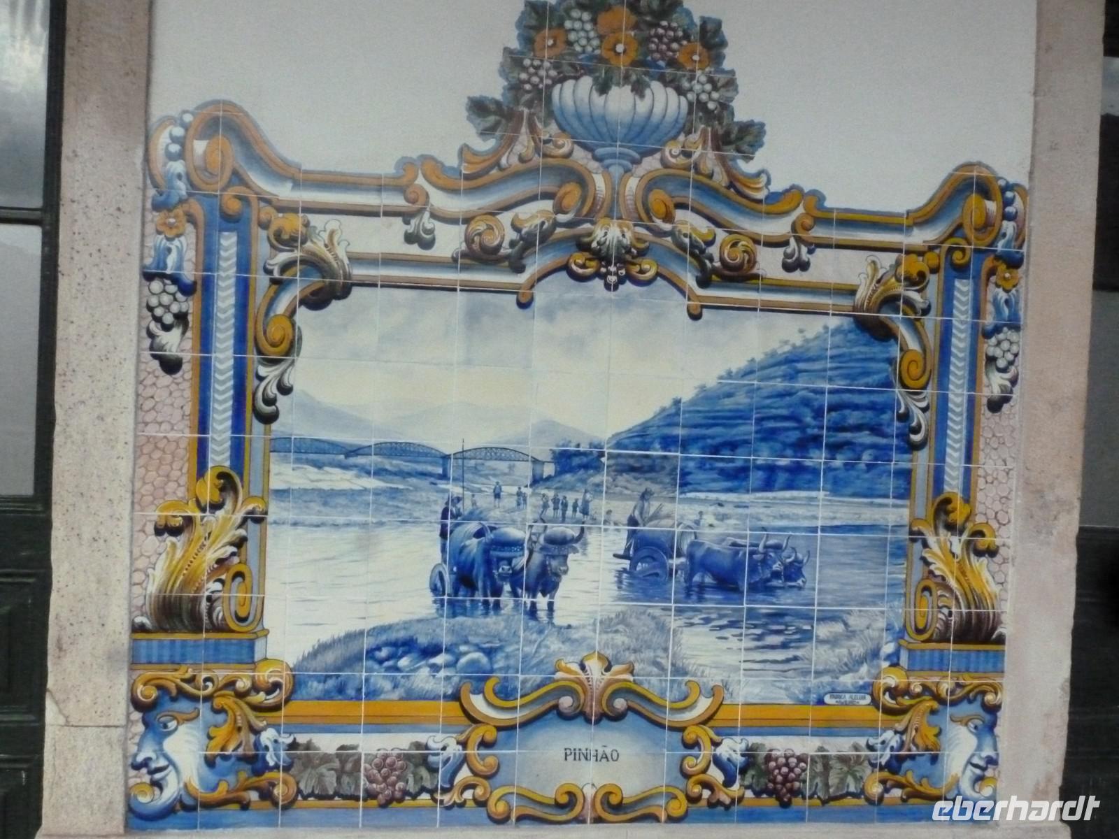 Heute fahren wir mit Luisa, die perfekt deutsch spricht zur Stadtrundfahrt in Porto. Dabei sehen wir die Casa da música, das Rektorat der Universität, die 2 nebeneinanderstehenden Kirchen direkt gegenüber der Universität. Bei einem Spaziergang vorbei an den "Männern, die sich totlachen", ein Kunstwerk im Park Campo Martires da Patria, sehen wir alte, mit Kacheln verzierte Häuserfassaden sowie die historische Straßenbahn von Porto. Weiter geht es zum Torre Clerigos und zum Vogelmarkt, wo wir ein wenig Freizeit für die Benutzung von Toiletten und den ersten portugiesischen Espresso haben. Weiterhin sehen wir das Alte Rathaus sowie den Platz Praca de Liberdade mit dem Denkmal von Pedro IV. und die Kathedrale von Porto mit ihrem prunkvollen Barockaltar. Auf dem Weg hinunter zum Douro kommen wir auch am Börsenpalast vorbei. Von Bord eines Schiffes konnten wir dann einen ganz anderen Blick auf Porto genießen, als wir unter den zahlreichen Douro-Brücken hindurch fuhren. Wieder an Land ging es weiter zur Portweinkellerei Burmester, wo wir die edlen Tropfen nicht nur anschauen, sondern selbstverständlich auch verkosten durften. Im Anschluss haben wir uns eine Mittagspause verdient, so dass manche Gäste zurück ins Hotel fahren und die Stadt dann von da aus erkunden konnten oder mit mir in der Stadt geblieben sind, um sich zum Beispiel den mit blau-weißen Kacheln verzierten Bahnhof Sao Bento anzuschauen. Der Nachmittag stand uns dann für die Verkostung portugiesischer Gerichte, die Erkundung von Porto, den Besuch des Straßenbahnmuseums oder die Besteigung des Torre Clerigos zur Verfügung.