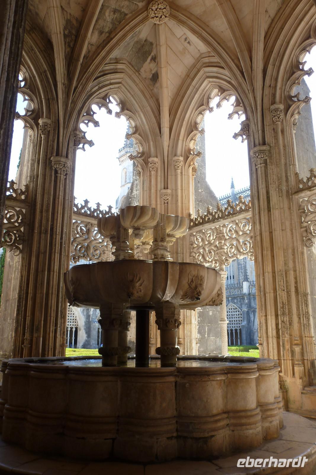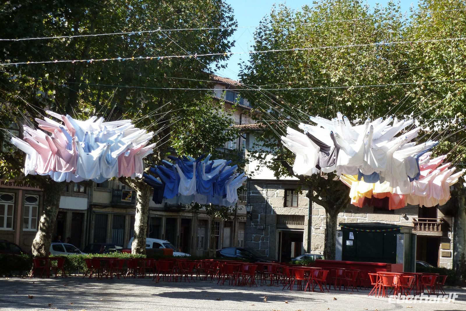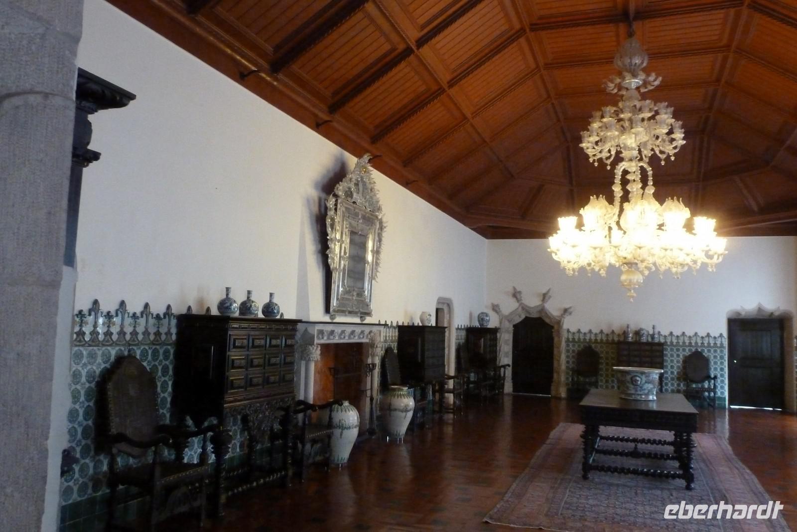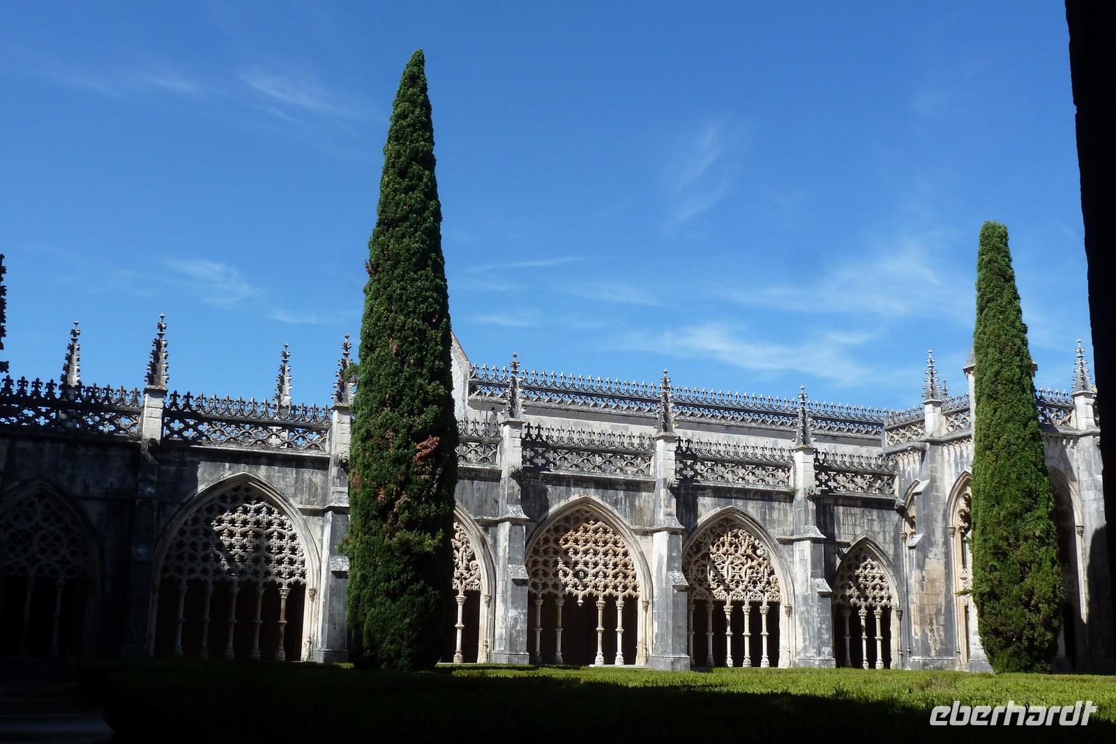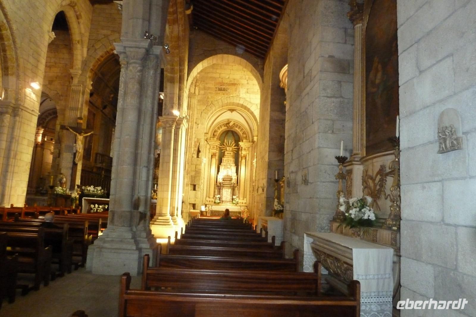 Zunächst fuhren wir nach Viseu, wo wir die Altstadt mit Kathedrale ? hier ist die Decke mit Knoten und Seilen aus Stein verziert - samt Kreuzgang besichtigten. Danach ging es weiter nach Luso, der Region der Spanferkel und Heilquellen. Unterwegs gibt uns Luisa einen Einblick in das Schul- und Sozialsystem von Portugal. Nach unserer Mittagspause bei deftigem Spanferkel bringt uns Vitor weiter nach Bucaco. Dieser Park mit seinen Azaleen, Rhododendren, Oleandersträuchern, Lilien, Farnen und vielen anderen Pflanzen, Sträuchern und Bäumen sowie dem ehemaligen Karthäuser-Kloster und nun Hotel/Palast im neo-manuelinischen Stil ist eigentlich eine Augenweide, doch für uns auf Grund des Regens leider nur aus dem Bus erfahrbar.