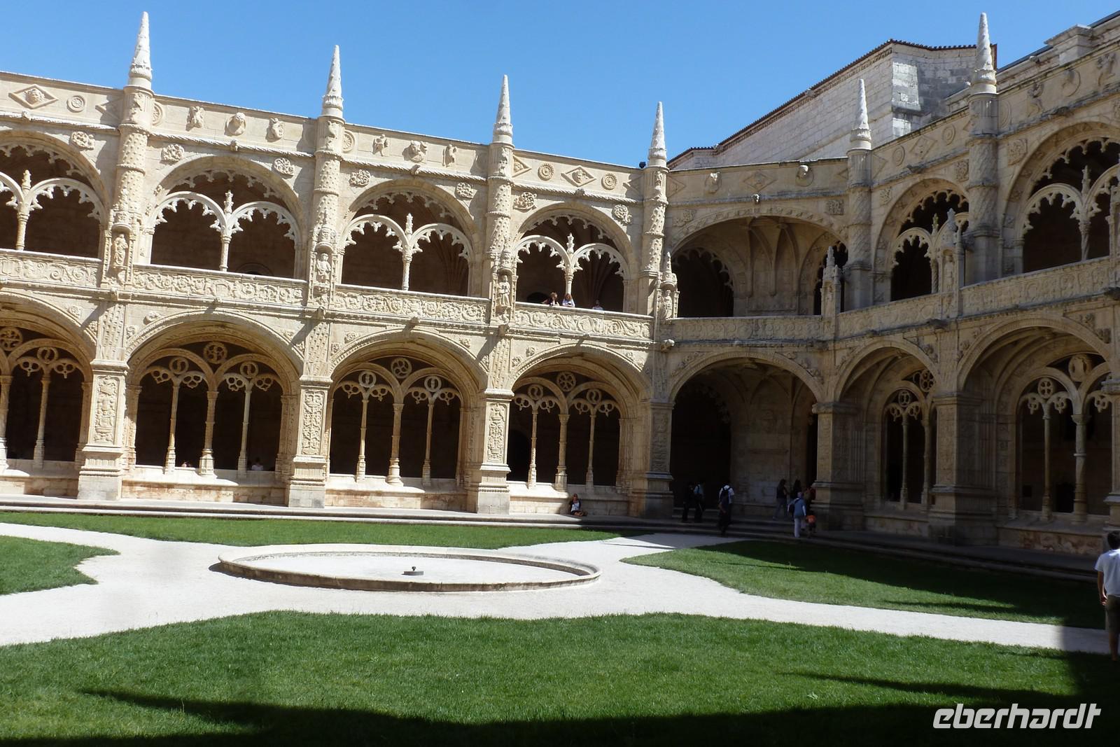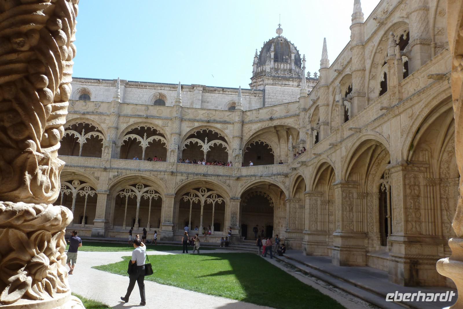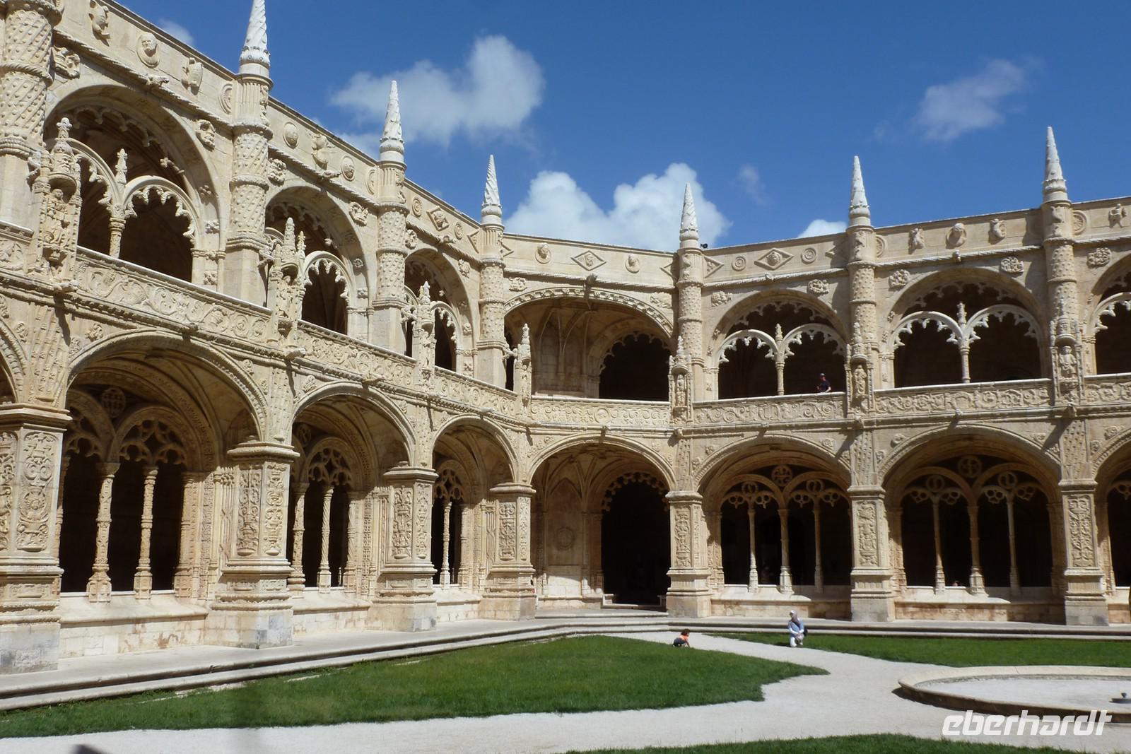Die Hauptstadt Portugals entdecken... mit Luisa besuchen wir zunächst den Park Eduards des VII., wo wir einen tollen Blick über die Stadt haben, dann die Kathedrale, die Altstadt Alfama, den Platz des Handels, den Rossio-Platz, darüber sehen wir die Festung, den Fahrstuhl Santa Justa, die bekannten Straßenbahnen sowie Bahnhof Rossio (Jugendstil). Allerdings werden wir vor Taschendieben gewarnt, die fließend Deutsch sprechen. Im Anschluss an den Zentrumsbesuch fahren wir nach Belem. Hier besichtigen wir das beeindruckende Hieronymuskloster mit dem tollen manuelinischen Kreuzgang und den Denkmälern für Vasco da Gama und den Nationaldichter Luis de Camoes. Nach einer kleinen Mittagspause, in der wir die -Pasteten von Belem- probieren konnten, fuhren wir zunächst zum Torre de Belem und anschließend zum Entdeckerdenkmal, vor dem die Eroberungen der portugiesischen Seefahrer auf einer Weltkarte im Boden, als riesiges Fliesenmosaik, dargestellt werden. Den Nachmittag können wir in der Stadt rund um den Rossio-Platz verbringen, wo uns Luisa zunächst noch das Haus des Alentejo sowie die Kirche des Hl. Dominikus zeigt. Nach dem Abendessen nehmen einige Gäste die Gelegenheit wahr, bei einem Fado Abend traditioneller portugiesischer Musik zu lauschen.
