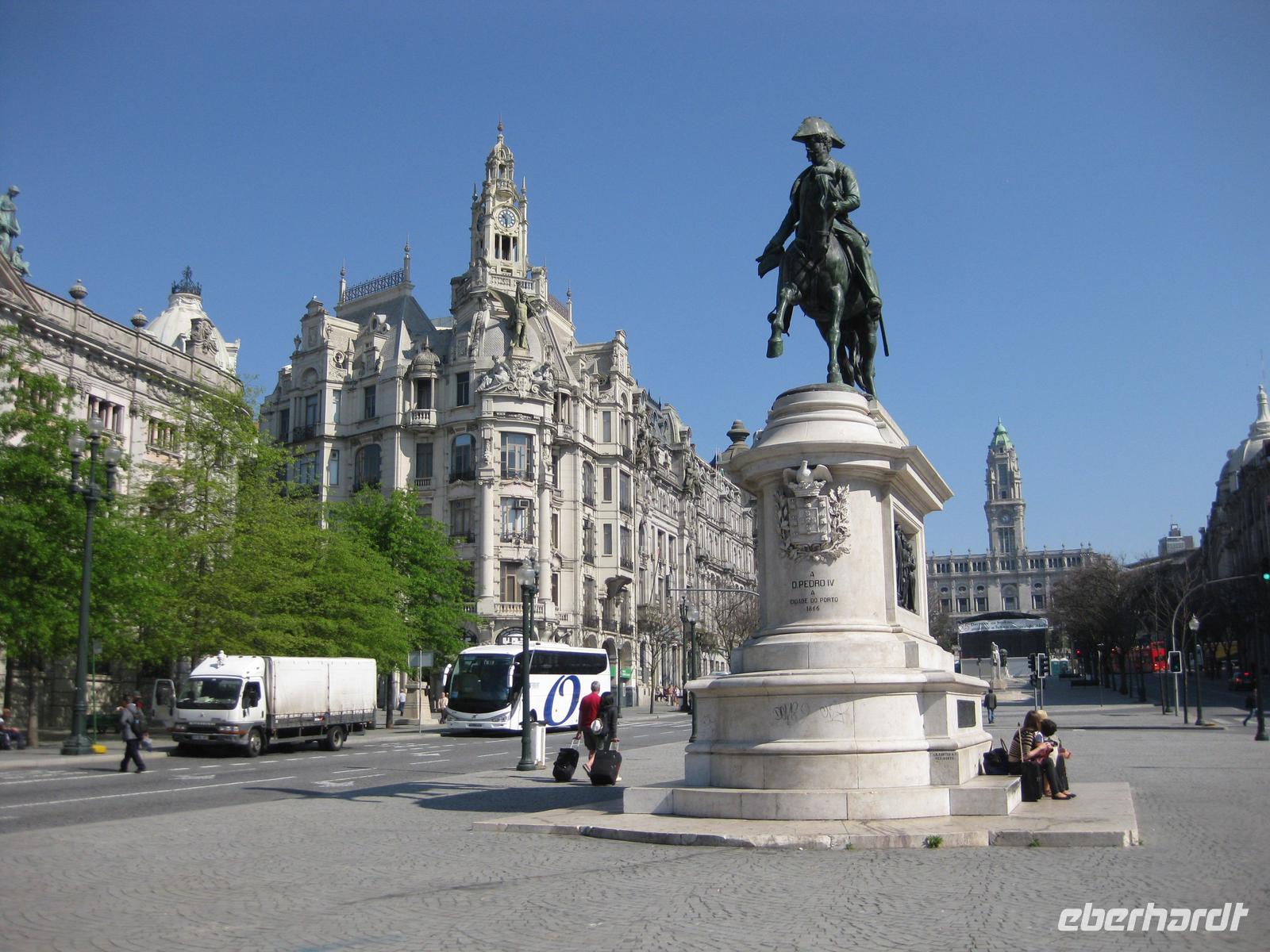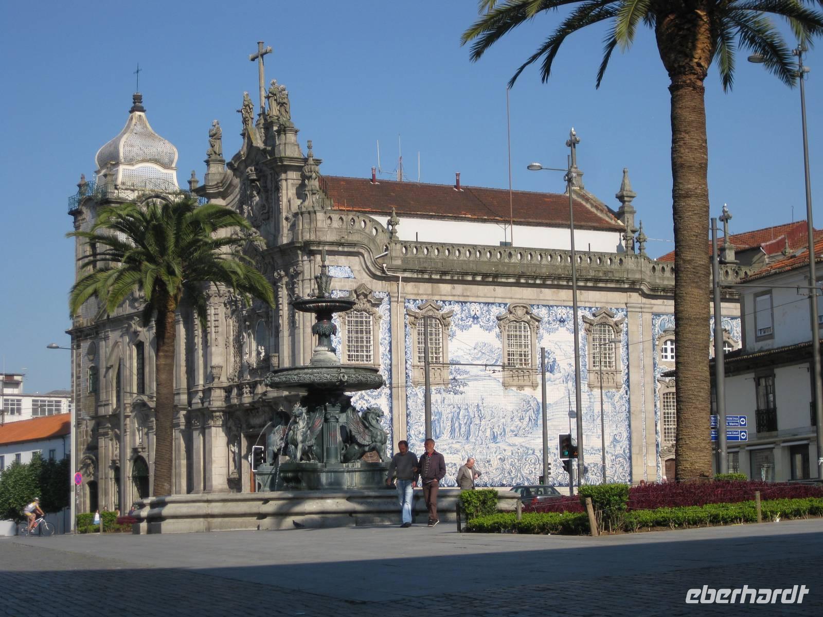 Zuerst fahren wir in die historische Altstadt von Porto, die zum Unesco-Weltkulturerbe zählt. Wir machen halt am Torre dos Clerigos, fahren zur Kathedrale Se, besichtigen diese und wir haben einen tollen Blick über die Stadt und auch zum Douro hinunter. Wir sehen während unserer Stadtbesichtigung viele mit überwiegend blauen Fliesen - Azulejos - geschmückte Hauswände. Diese Fliesen sind ein Wahrzeichen der Stadt. Wir sehen das Rathaus und machen einen Fotostopp auf der Praca da Liberdade beim Denkmal von Dom Pedro IV. Weiter sehen wir die Gebäude der Börse und der alten Markthalle, die heute leider geschlossen sind. Auf dem Platz davor befindet sich das Denkmal für Heinrich, dem Seefahrer.