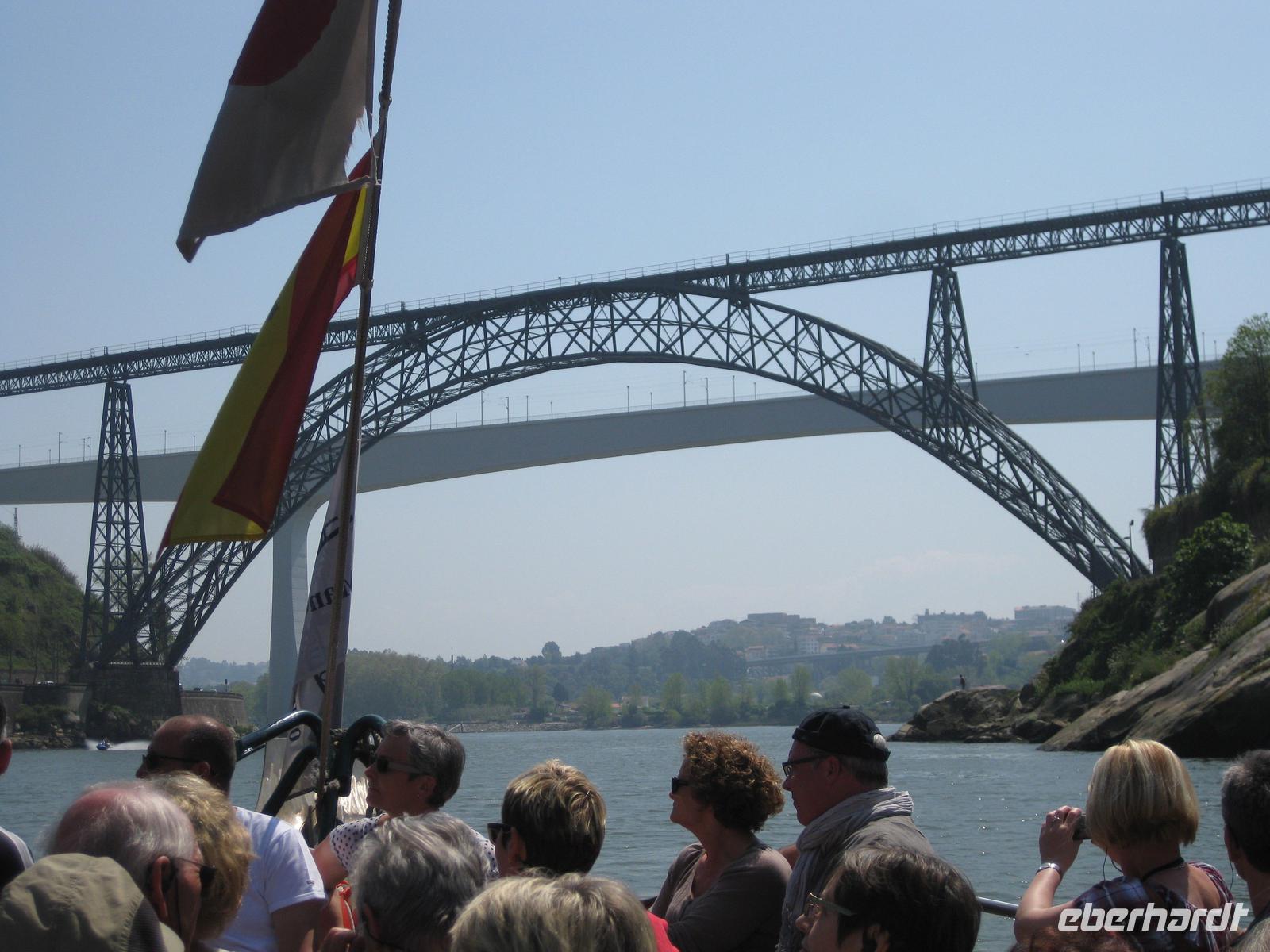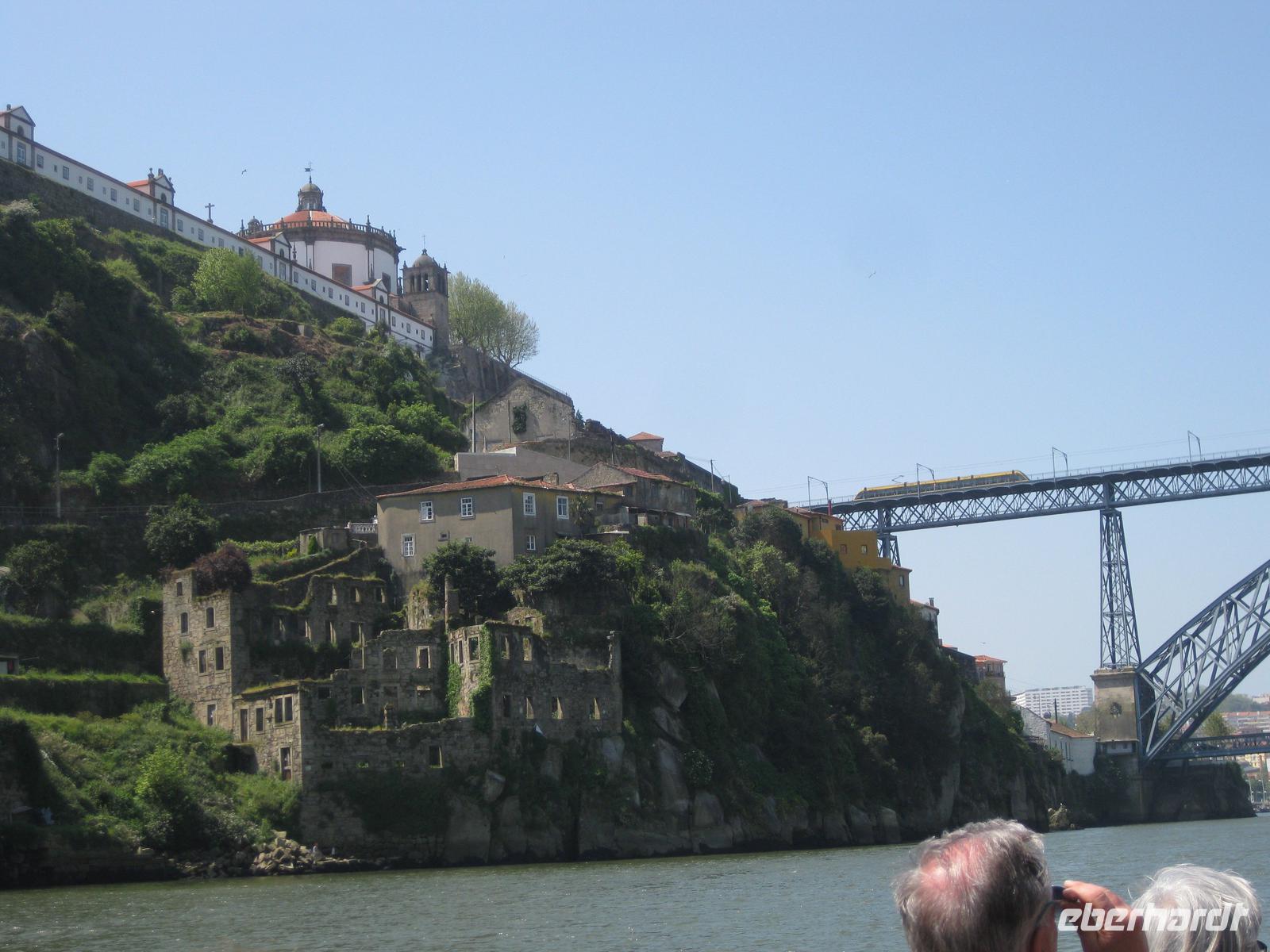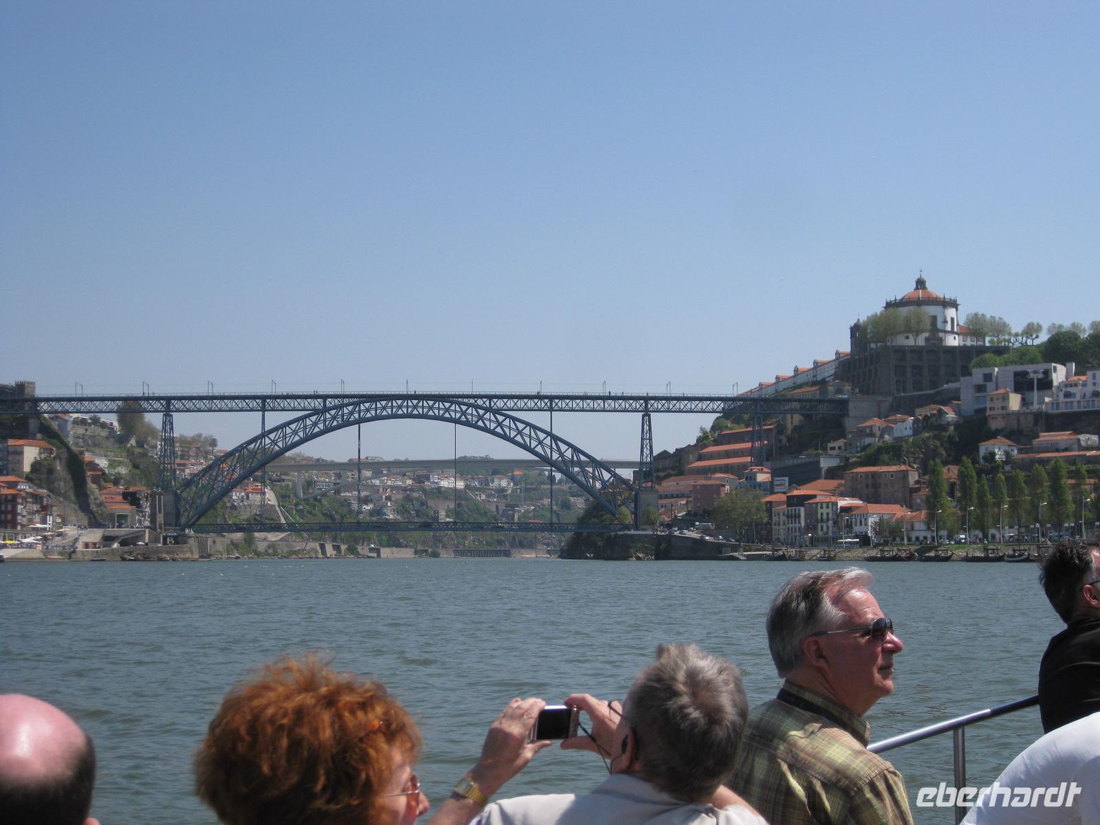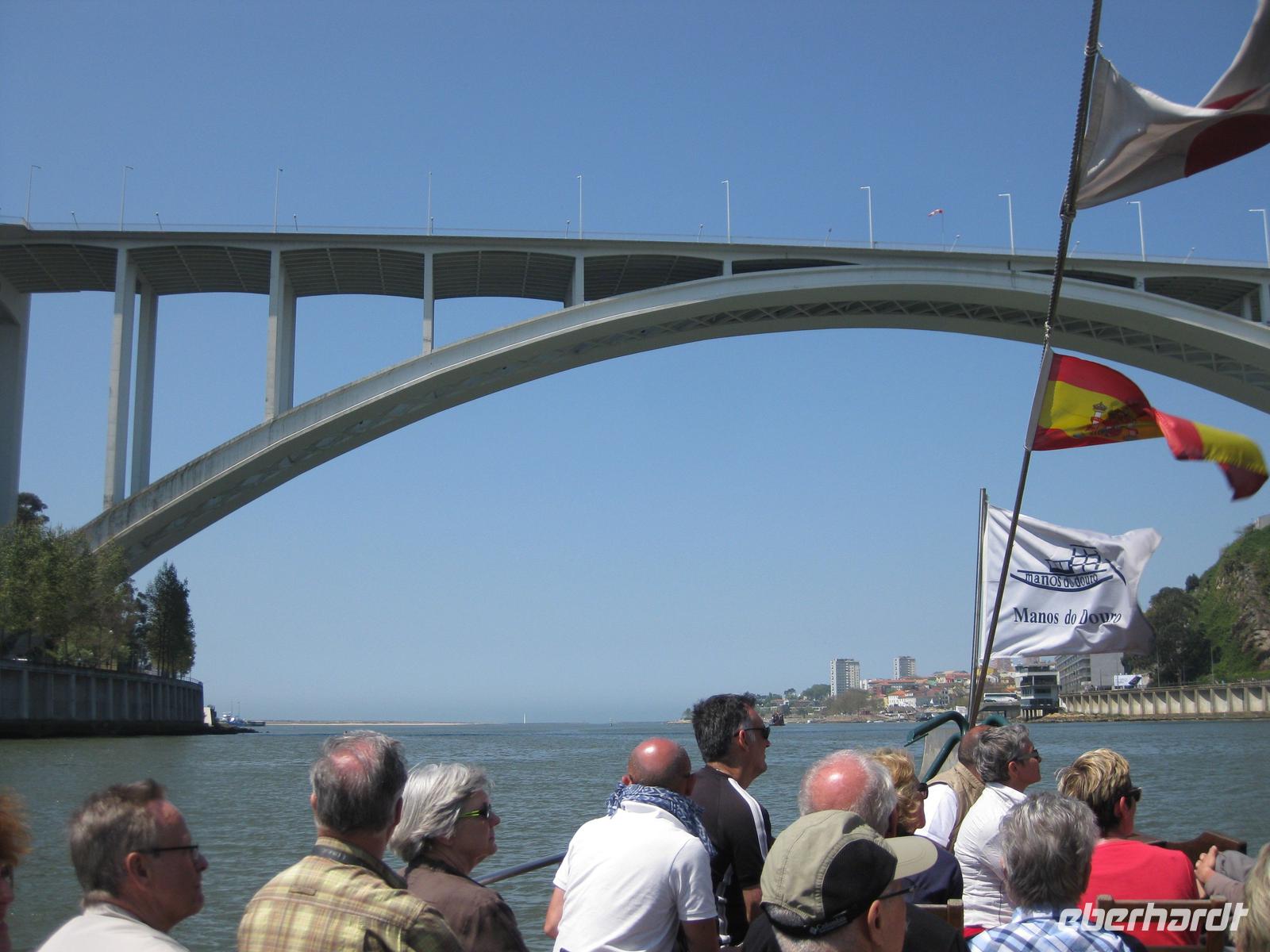 Zum Abschluss unserer gemeinsamen Stadtbesichtigung machen wir noch eine Bootsfahrt auf dem Douro. Die startet gleich in unmittelbarer Nähe der Portweinkellerei Burmester. Wir fahren ein Stück flussaufwärts und auch flussabwärts. Dabei fahren wir unter mehreren Brücken durch und sehen die Stadt aus einer ganz anderen, sehr eindrucksvollen Perspektive.