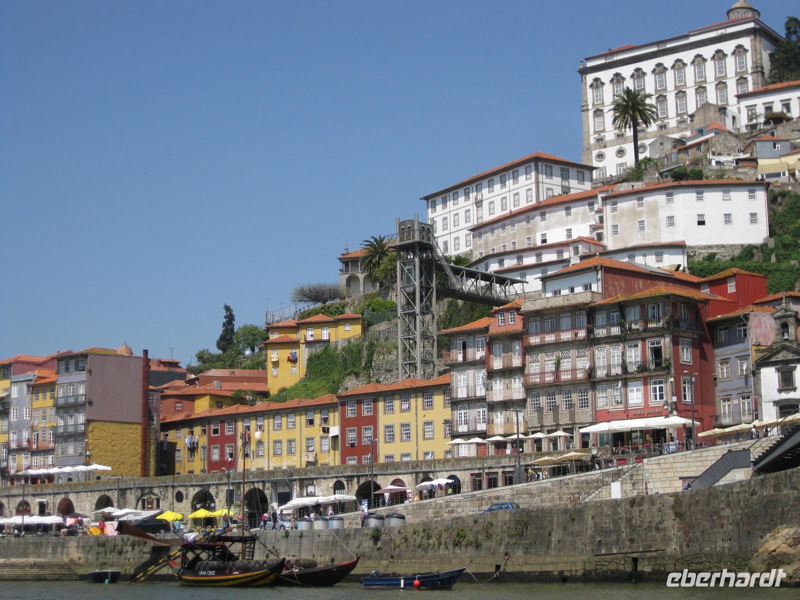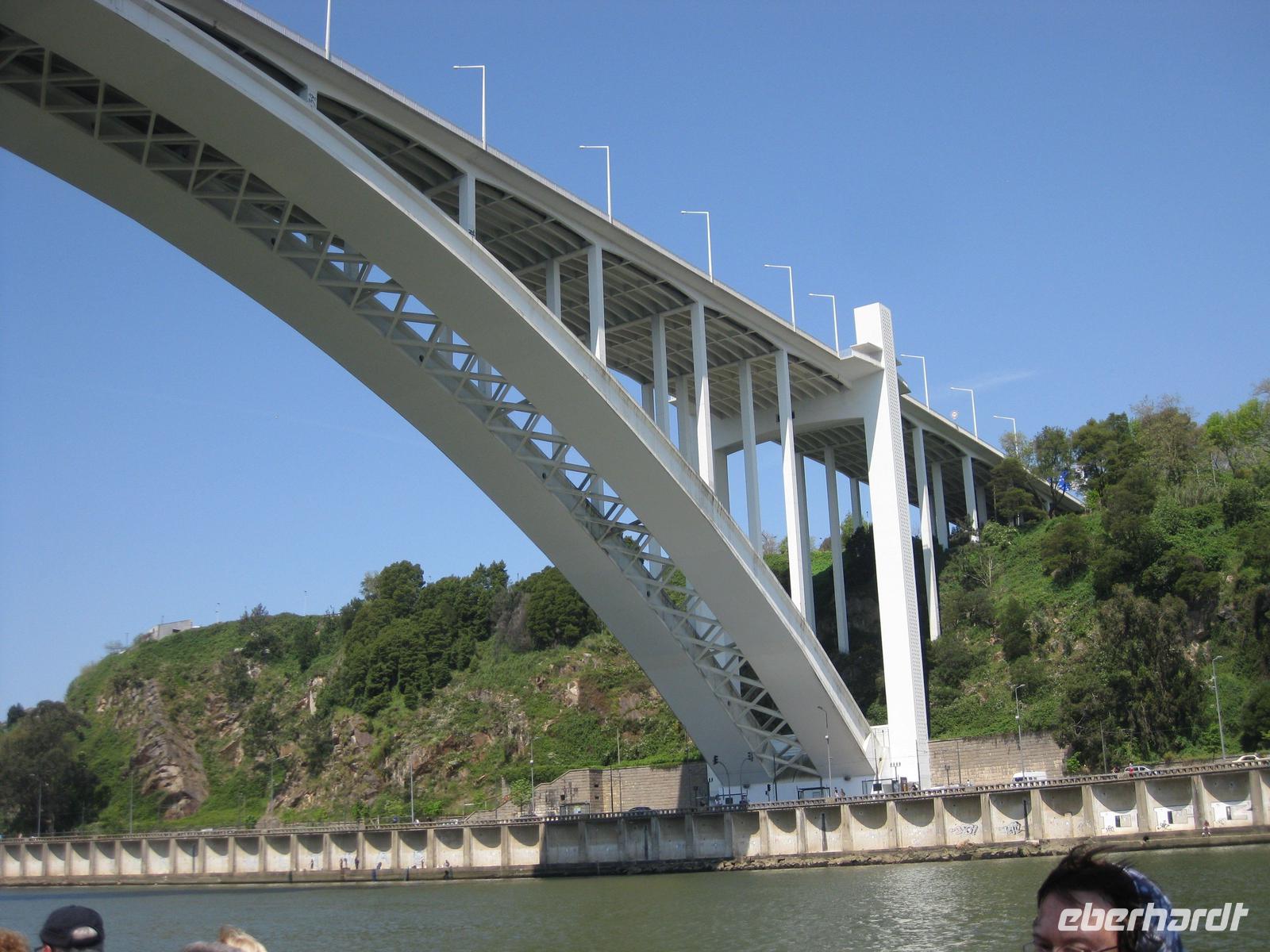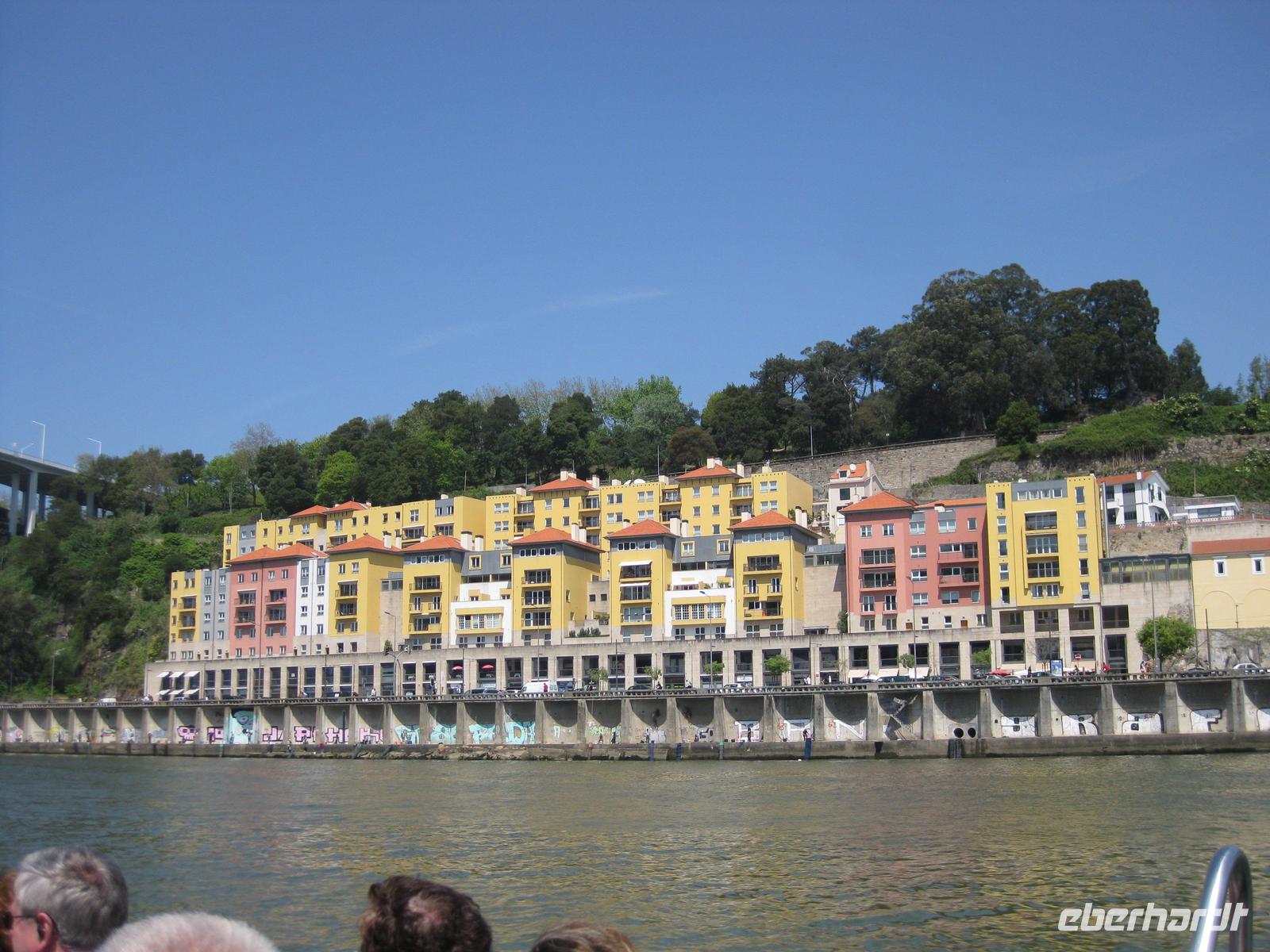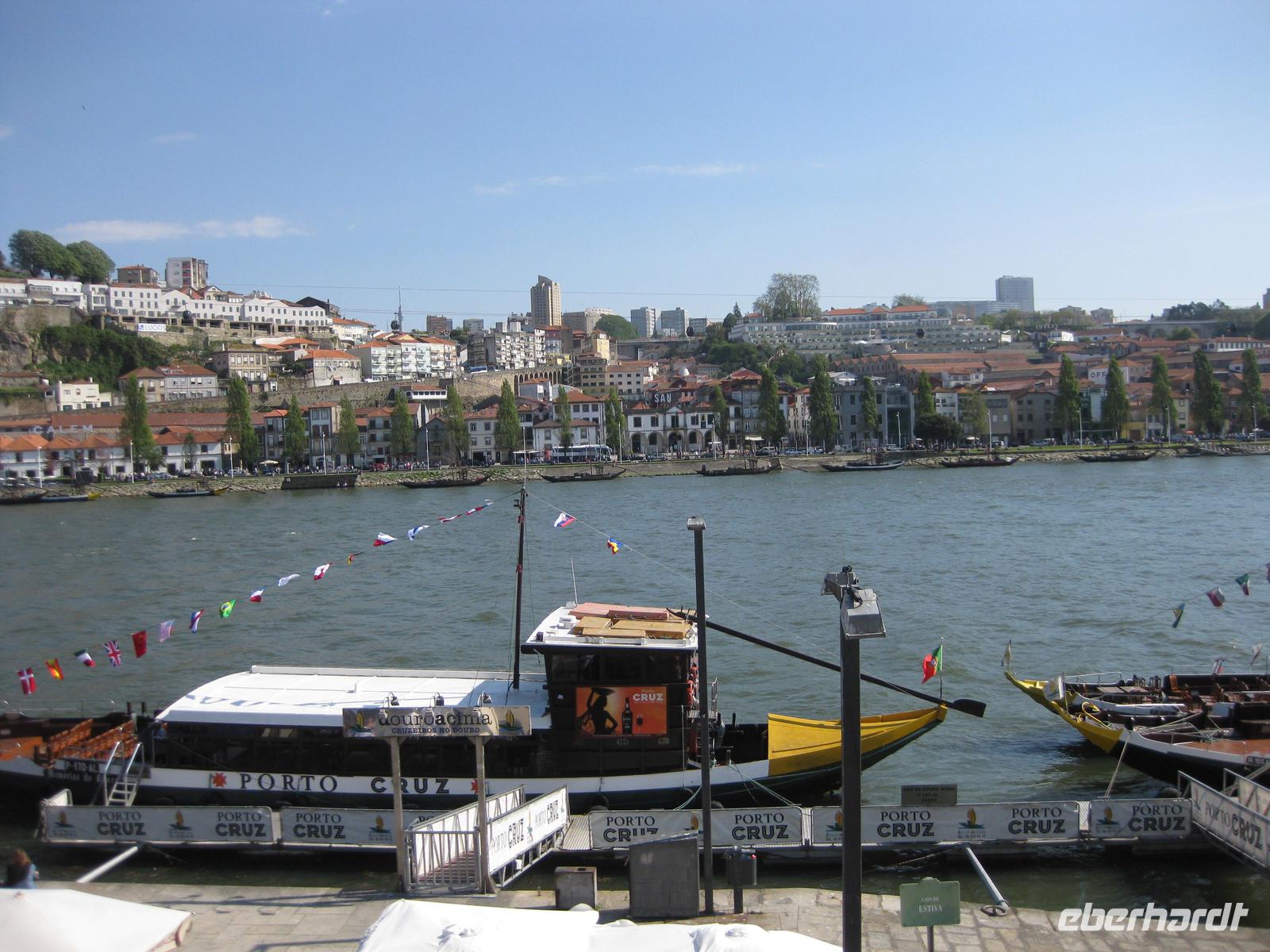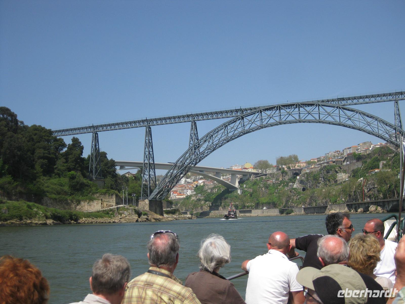Zum Abschluss unserer gemeinsamen Stadtbesichtigung machen wir noch eine Bootsfahrt auf dem Douro. Die startet gleich in unmittelbarer Nähe der Portweinkellerei Burmester. Wir fahren ein Stück flussaufwärts und auch flussabwärts. Dabei fahren wir unter mehreren Brücken durch und sehen die Stadt aus einer ganz anderen, sehr eindrucksvollen Perspektive.