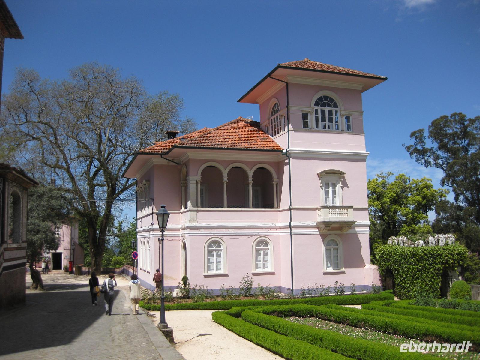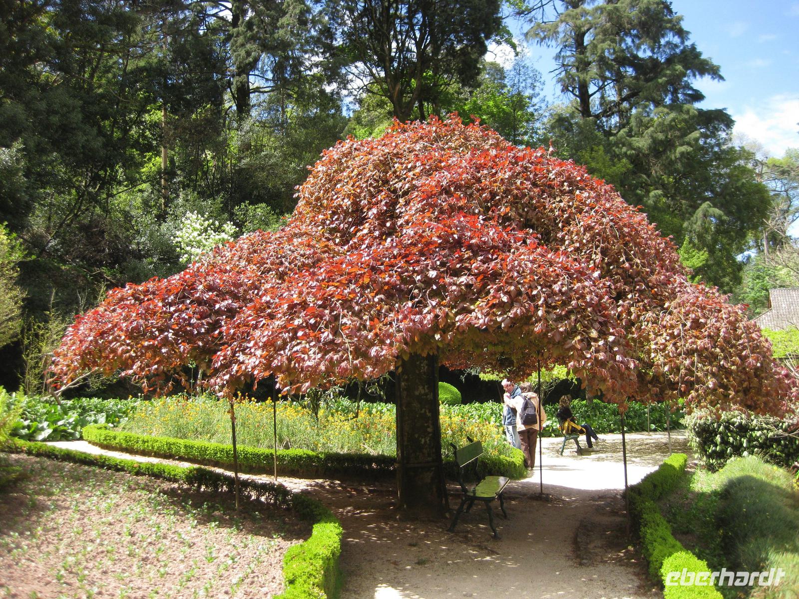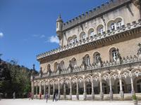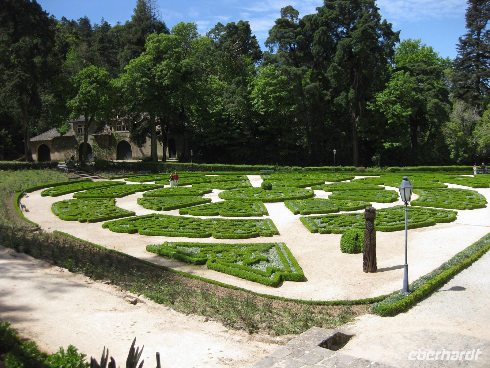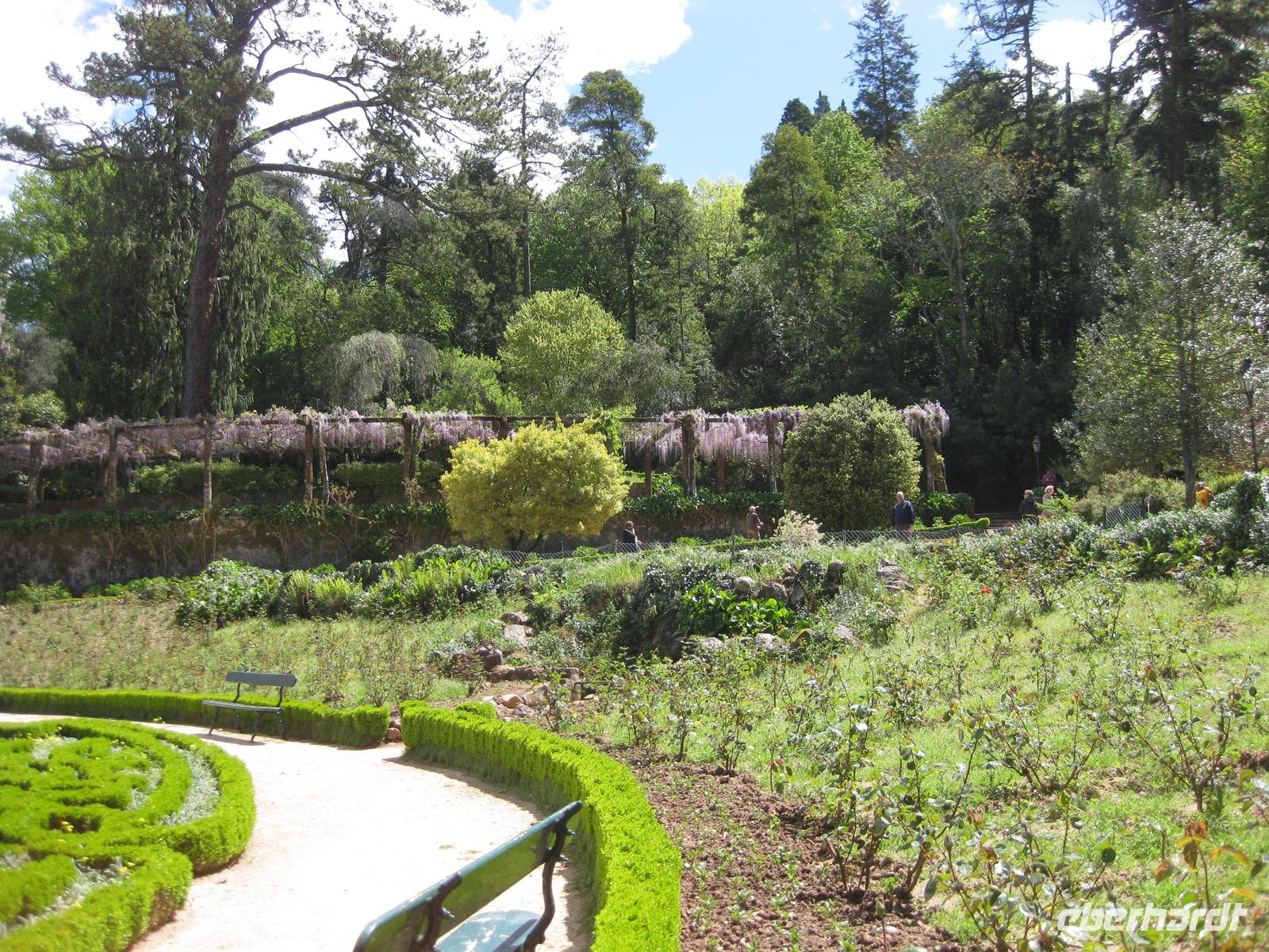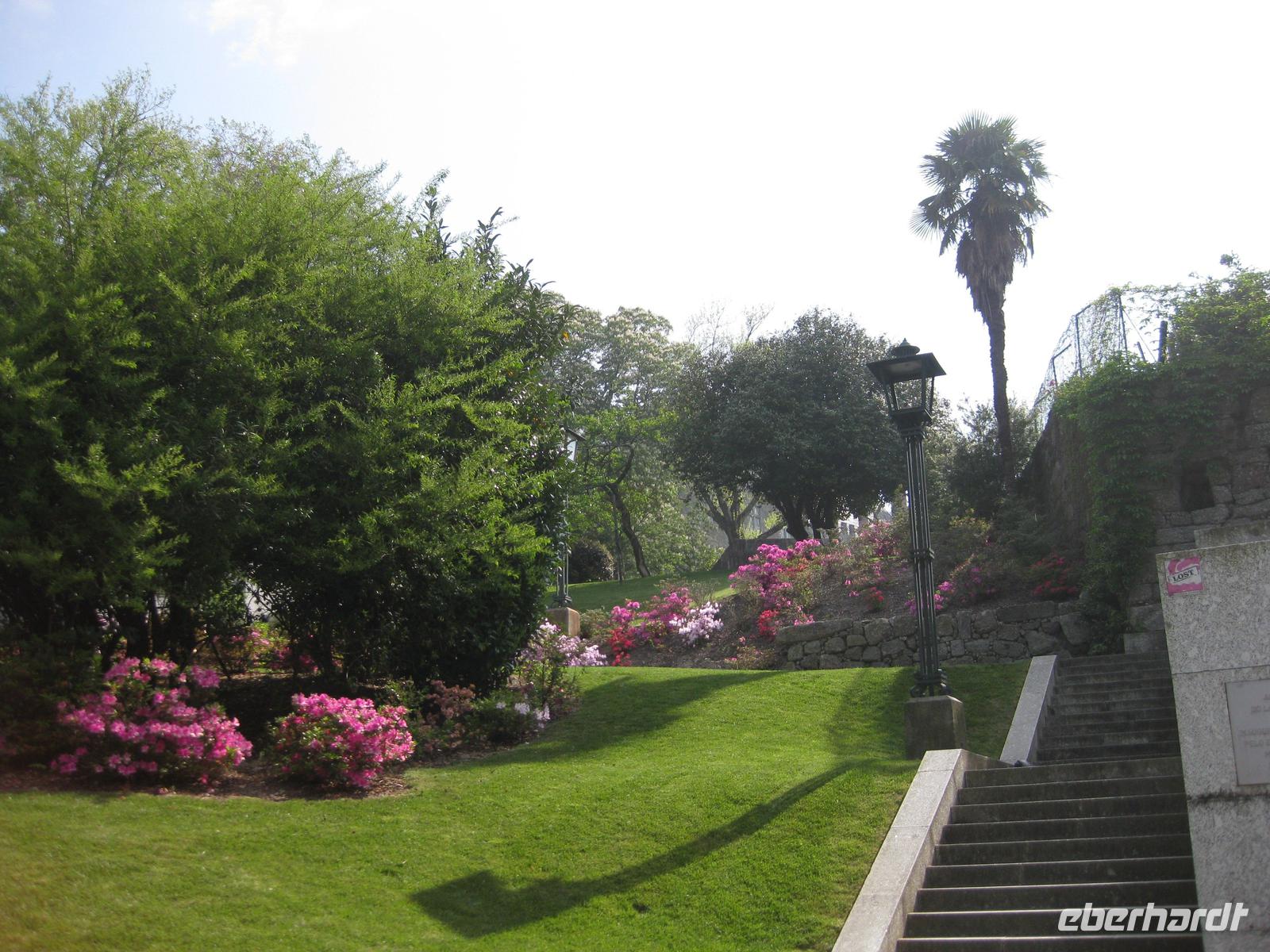 Dann geht es weiter bis zum Parque Nacional do Bucaco bei Luso. Der Parque Nacional do Bucaco ist ein riesiger Waldpark mit einer Sammlung unzähliger Arten von Pflanzen und Bäumen aus aller Welt. Und mittendrin ist ein "Märchenschloss", dass uns vom Baustil her an unser Schloss Neuschwanstein erinnert. Das war früher die Sommerresidenz der portugisischen Königsfamilie und ist jetzt das Luxushotel "Palacio Hotel do Bucaco". Es ist umgeben von einem schönen Park mit vielen Blumen und Pflanzen, besonders beeindruckend ist der mit Blauregen überdachte Wandelgang.