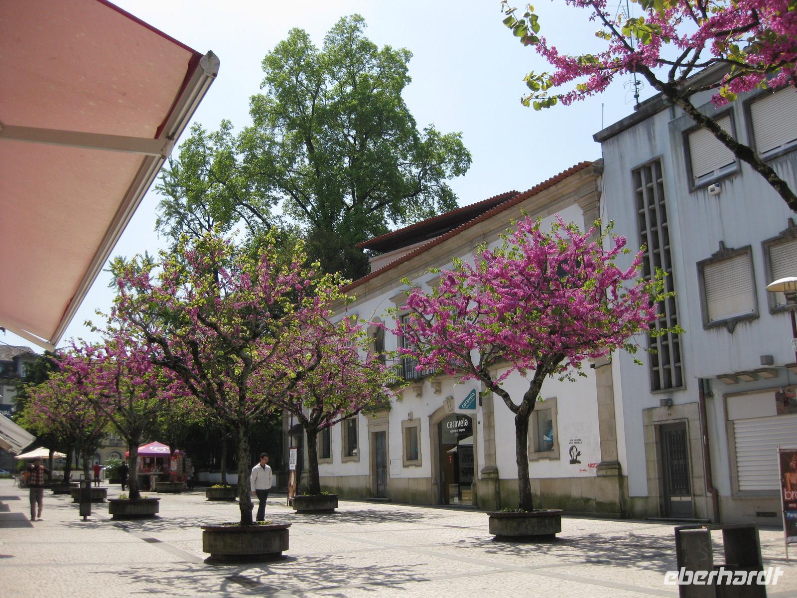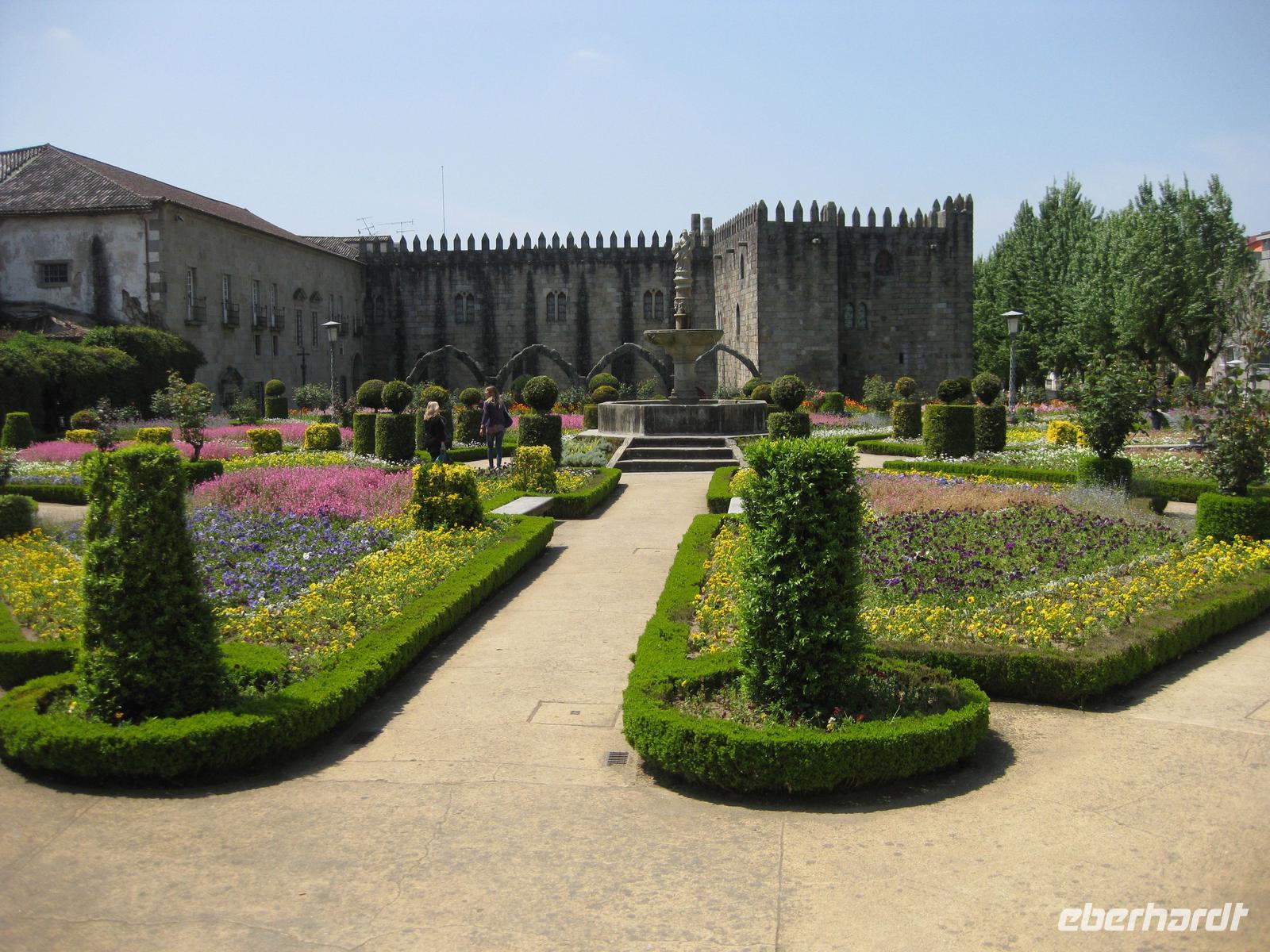 Nach einer guten Stunde Fahrt durch die Provinz Minho erreichen wir die Stadt Guimaraes. Unterwegs sehen wir die für diese Region typische Landschaft. Es ist alles sehr grün, viele Bäume und auch viel Landwirtschaft. Wir besichtigen die Stadt mit ihrer Burg und dem mittelalterlichen, sehr liebevoll restaurierten Stadtkern, der auch zum Unesco-Weltkulturerbe gehört. Wir gehen zu Fuß und können so alles sehr gut sehen. Hier in Guimaraes kam Potugals erster König Alfonso Henriques zur Welt. In der Stadt Guimaraes befindet sich die berühmte Kathedrale Igreja da Nossa Senhora da Olivera. Die Stadt ist wunderschön mit Blumenanlagen geschmückt.