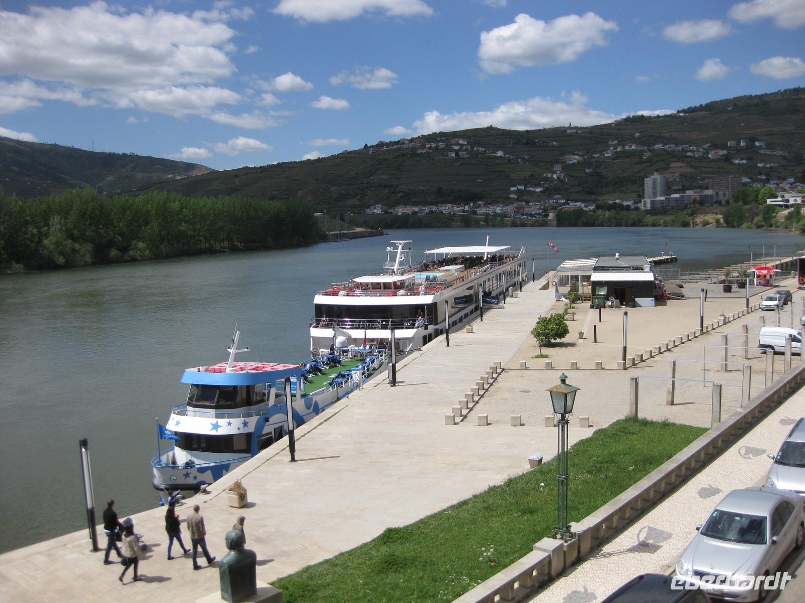 Zu Mittag kommen wir in dem kleinen Städtchen Peso da Regua an. Es liegt direkt am Fluss Douro. Hier gibt es auch ein Schiffsanlegekai für die Flusskreuzfahrtschiffe. Man kann herrlich am Ufer entlang spazieren. Wir beziehen unser Hotel, das auch direkt am Fluss steht. Noch sind nicht alle Zimmer fertig, so dass wir unser Gepäck abstellen und die Stadt unsicher machen. Es gibt viele Möglichkeiten für einen kleinen Mittagssnack. Dann kommen wir zum Hotel zurück und beziehen die Zimmer.