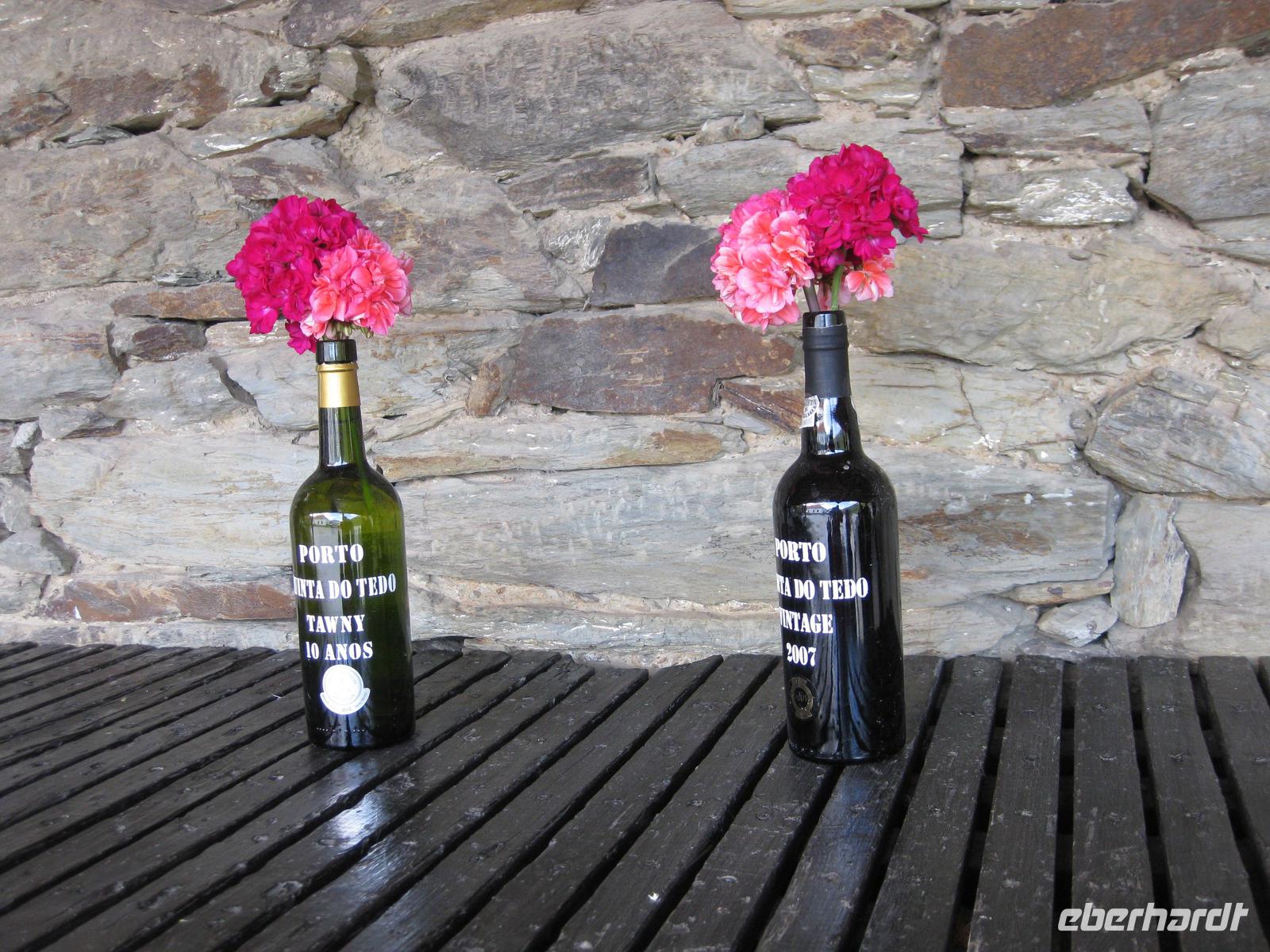 Nach der Mittagspause um 15.00 Uhr treffen wir uns am Bus. Wir fahren jetzt am Douro entlang bis zur "Qinta do Tedo", einer Portweinkellerei auf halber Strecke nach Pinhao. Wir haben eine Führung und dürfen den Portwein verkosten. Auch hier gibt es die Möglichkeit, Portwein zu kaufen und ihn dann direkt nach Hause liefern zu lassen. Und es gibt auch Olivenöl aus eigener Herstellung.