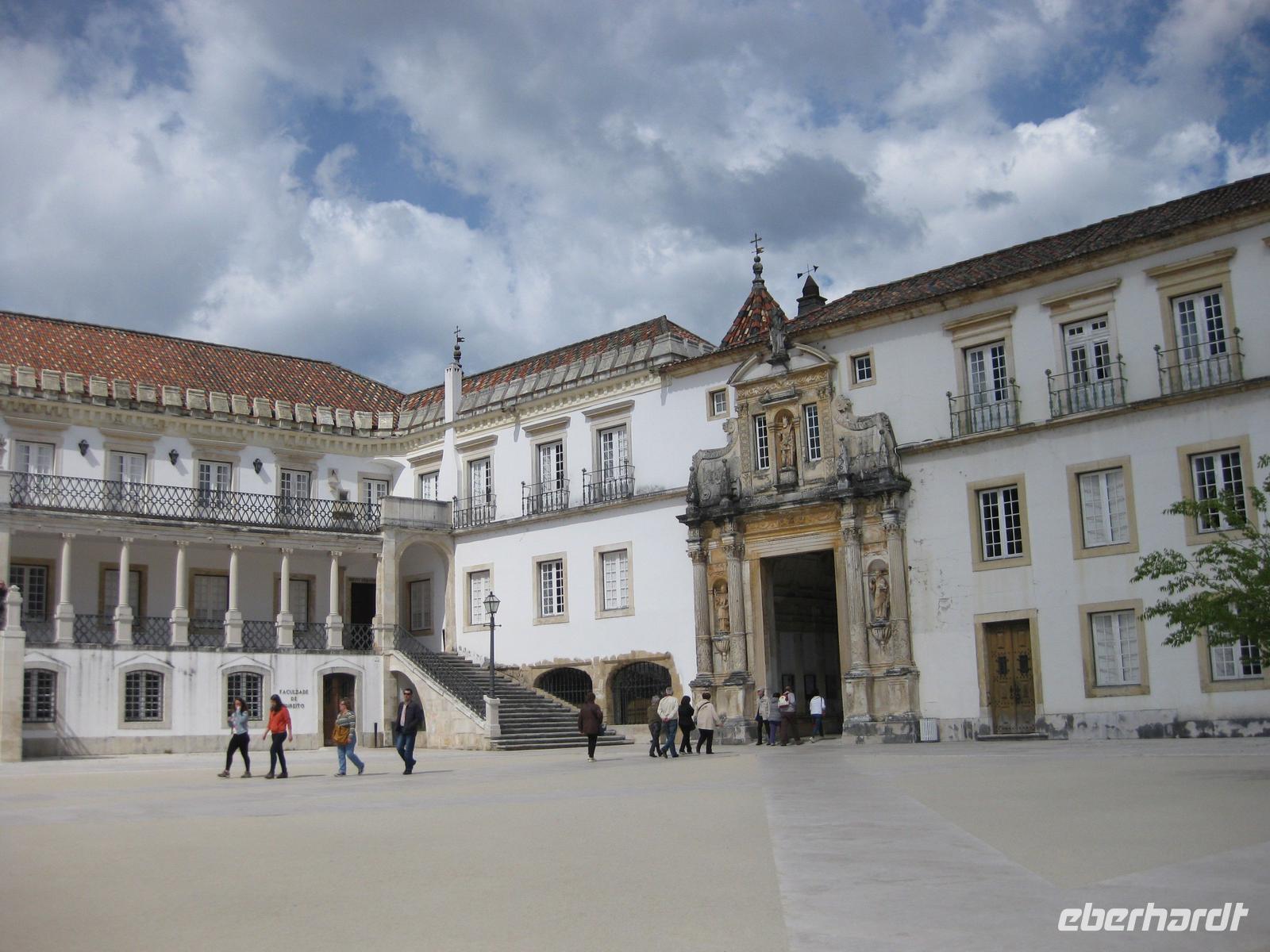 Am Nachmittag fahren wir dann weiter bis in die Universitätsstadt Coimbra. Wir besuchen das Universitätsgelände in der Oberstadt. Die Geschichte der Universität geht bis in's 13. Jahrhundert zurück. Ein besonderes Schmuckstück der Universität ist die barocke Bibliothek aus dem 18. Jahrhundert, die wir besichtigen dürfen. Wir sehen auch den barocken Turm der Universität, "Ziege" genannt. Dann steigen wir hinunter in die Altstadt. Wir kommen zu einem Musikgeschäft, in dem auch Fado-Aufführungen stattfinden. Wir haben Glück, die Herren spielen und singen extra für uns. Da heute Sonntag ist, fehlen leider die Studenten in der Stadt. Sie sind über's Wochenende nach Hause gefahren.