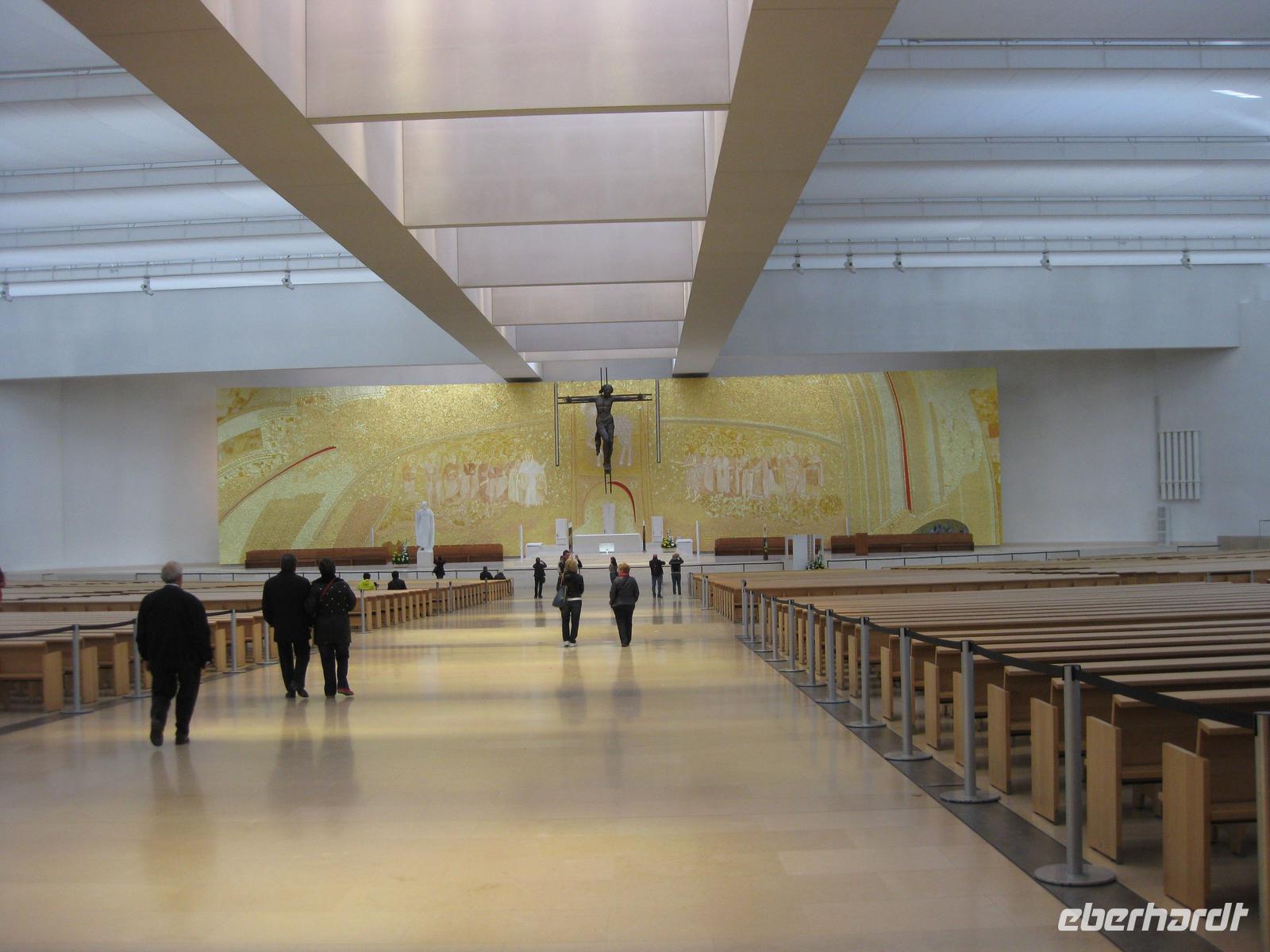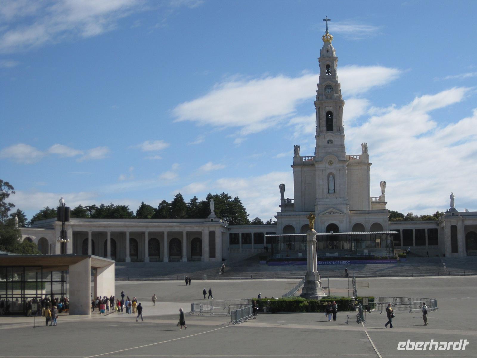 Nach einer guten Stunde Fahrt kommen wir in Fatima, dem bedeutendsten Wallfahrtsort Portugals an. Hier dreht sich alles um die Marienerscheinungen. Ein gigantischer Freiplatz für viele tausende Gläubige bei großen katholischen Feierlichkeiten erstreckt sich von der alten Kathedrale Basilica Antiga bis zur neuen Kathedrale Igreja da Santissima Trindade, die im Jahr 2007 fertiggestellt und geweiht wurde. Die neue Kathedrale bietet für bis zu 9.000 Gläubige Platz. Der Ort Fatima ist voll auf die gläubigen Pilger eingestellt.