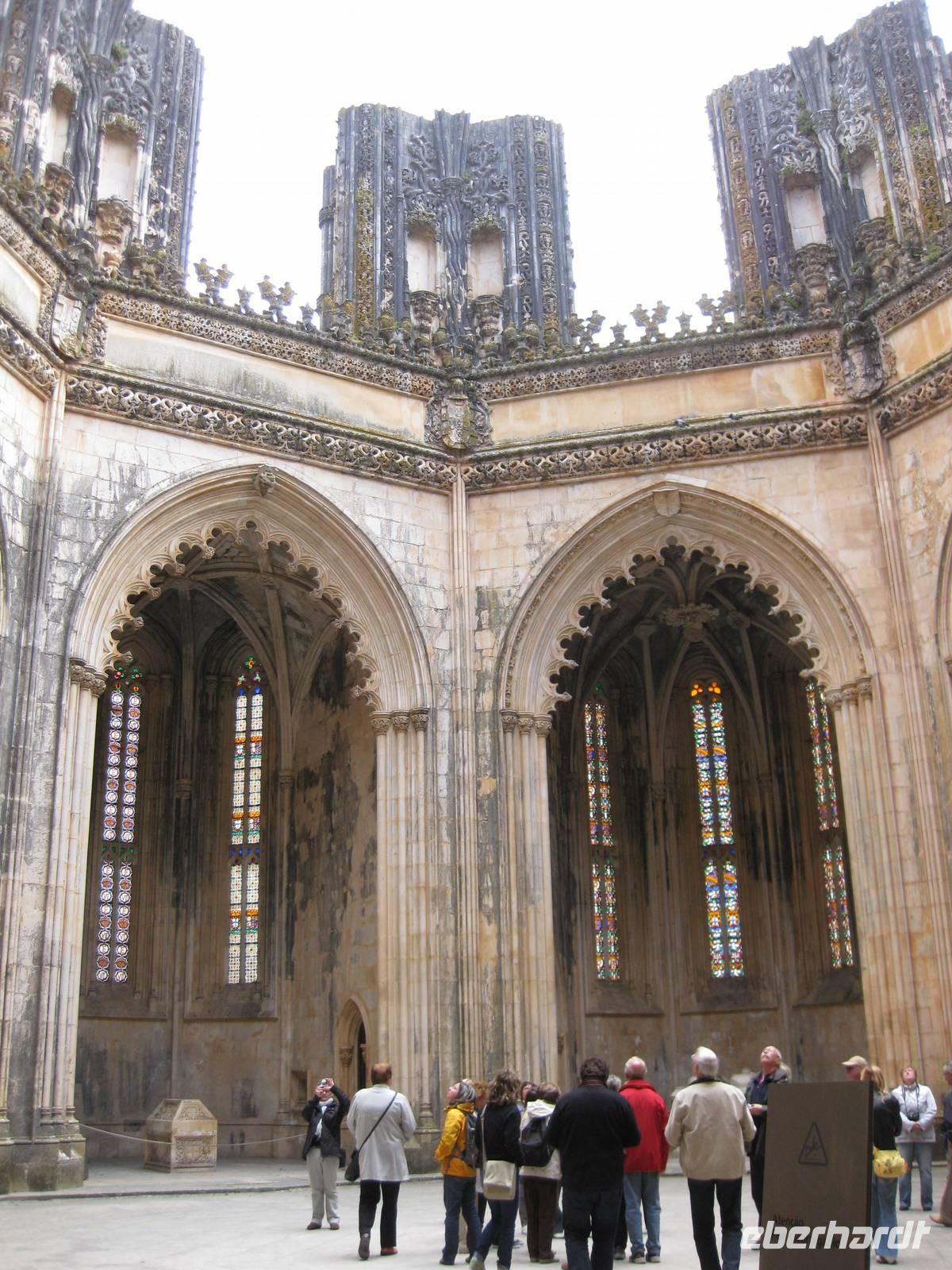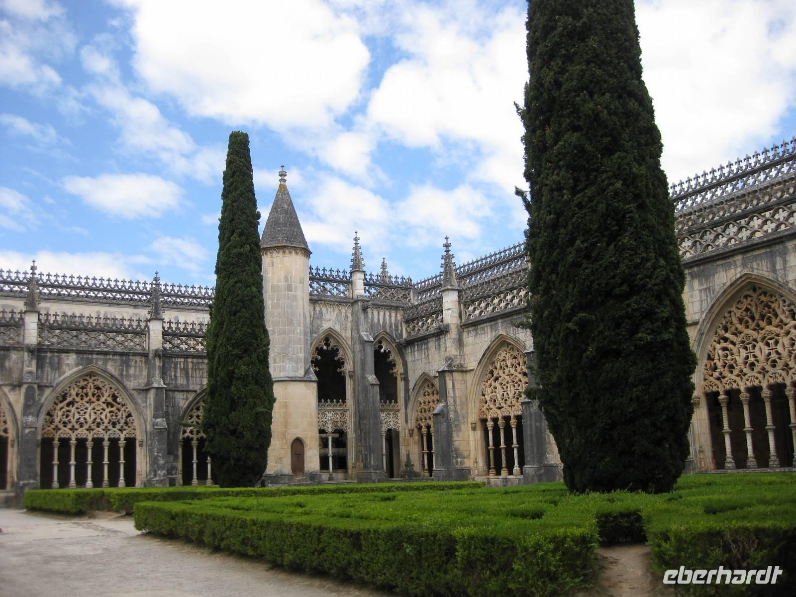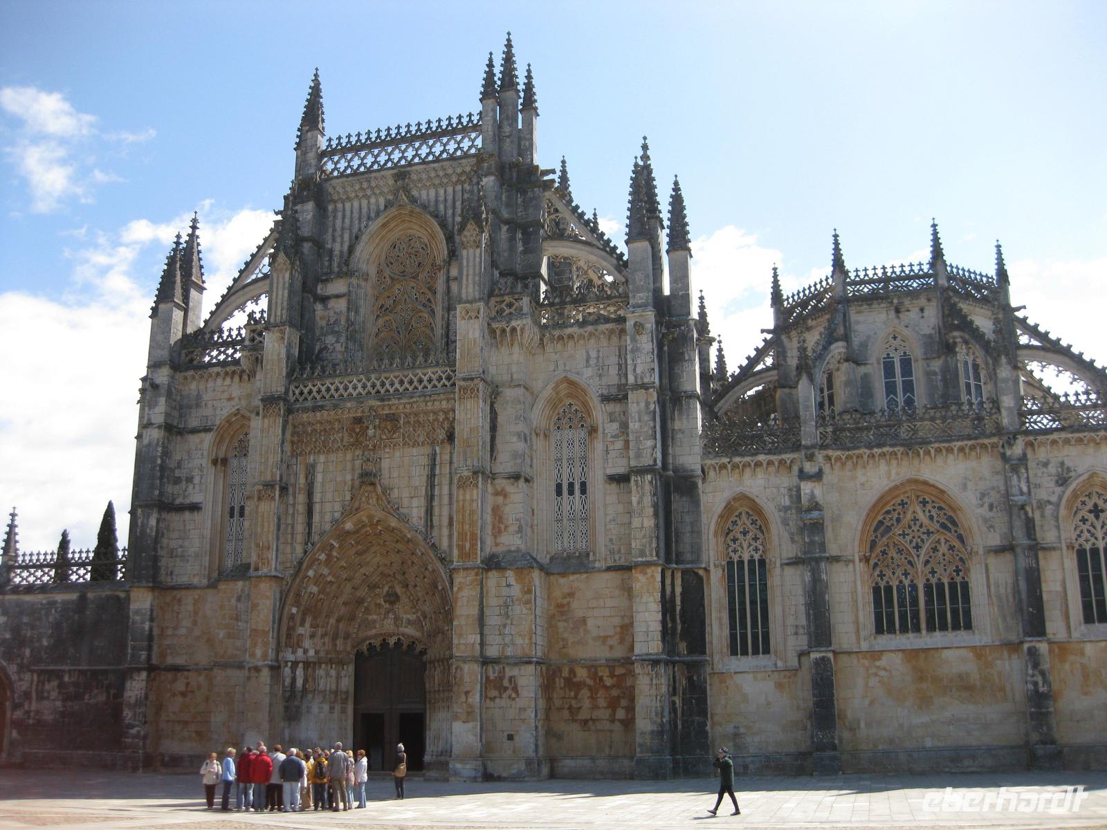 Unser nächstes Ziel ist das gar nicht so weit entfernte Mosteiro da Batalha. Nach einer kurzen Fahrt erreichen wir den Ort Batalha. Das Mosteiro da Batalha ist nicht zu übersehen. Es überragt den ganzen Ort. Die Architektur ist beeindruckend, das Figurenportal, die Kirche im gotischen Stil, die Grabkapelle "Capela do Fundador", wo sich die Sarkophage des Erbauers König Joao I und seiner Familie befinden, der Kreuzgang, die Kapelle für den unbekannten Soldaten des 1. Weltkrieges und nicht zuletzt die "Unvollendete Kapelle". Wir haben Glück, wir sind gerade zur rechten Zeit da und können die Wachablösung am Grab des unbekannten Soldaten verfolgen. Rund um das Kloster befinden sich Cafes, Souvenirgeschäfte und Stände, an denen frisches Gebäck und auch Obst aus der Region angeboten wird. Sie laden zum Verweilen nach der Besichtigung ein.