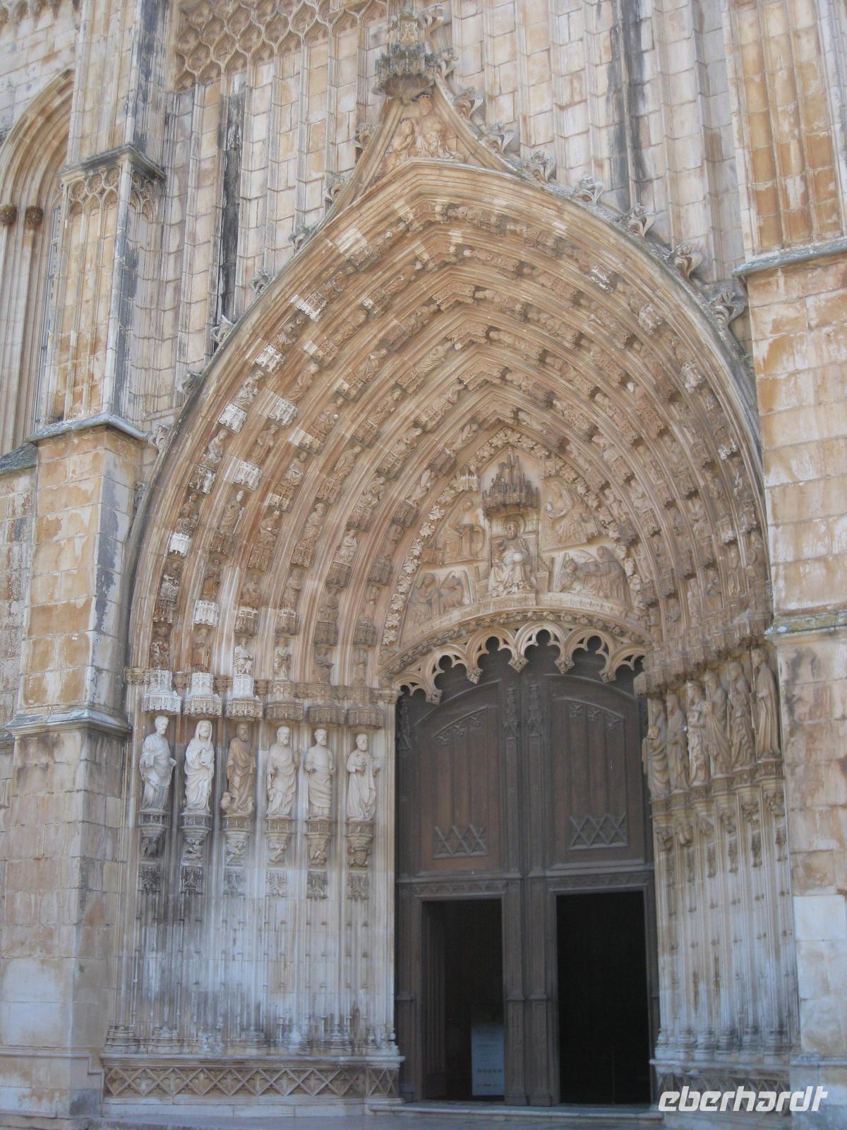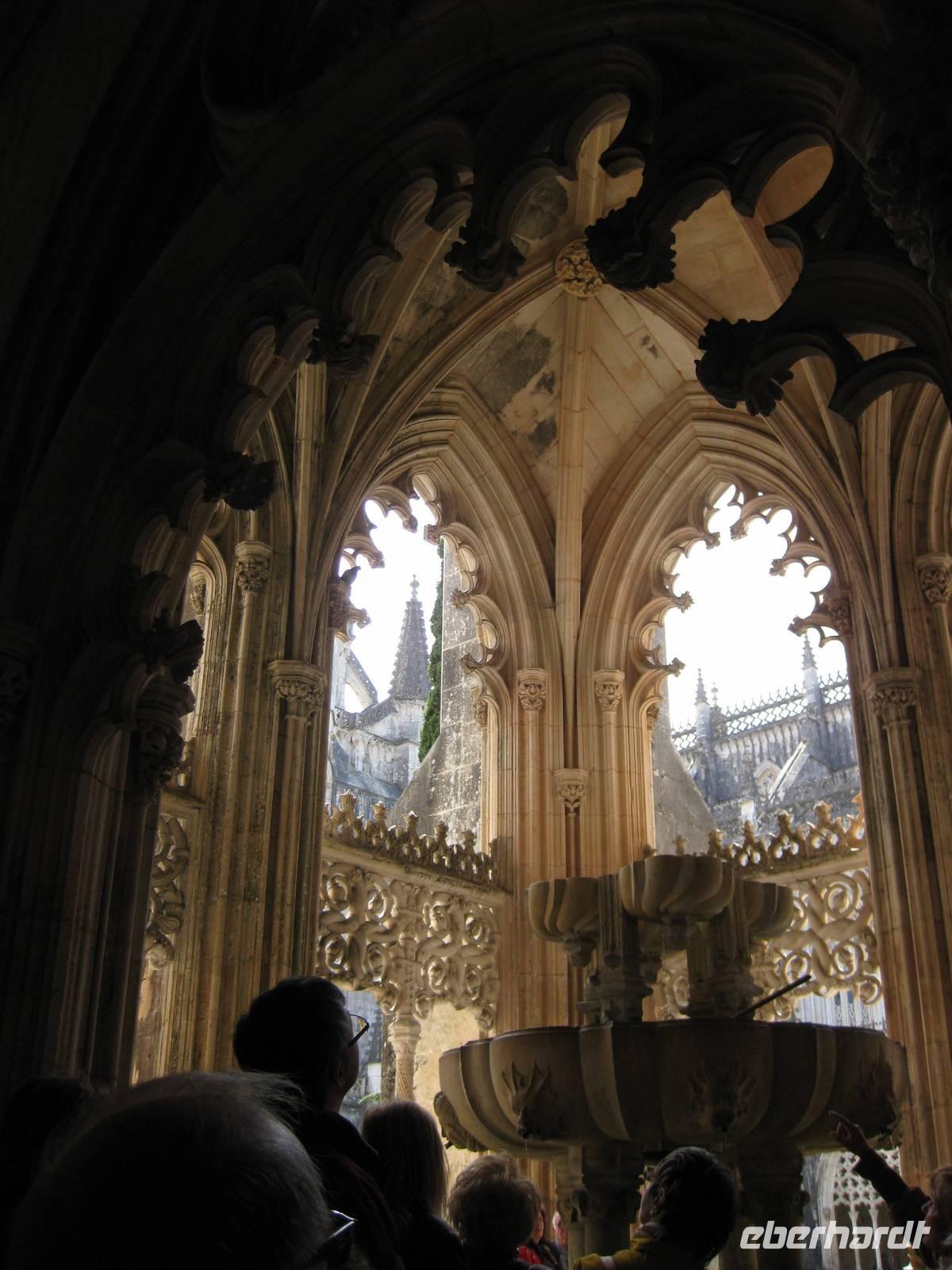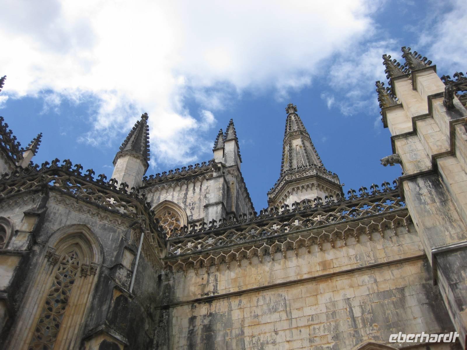 Unser nächstes Ziel ist das gar nicht so weit entfernte Mosteiro da Batalha. Nach einer kurzen Fahrt erreichen wir den Ort Batalha. Das Mosteiro da Batalha ist nicht zu übersehen. Es überragt den ganzen Ort. Die Architektur ist beeindruckend, das Figurenportal, die Kirche im gotischen Stil, die Grabkapelle "Capela do Fundador", wo sich die Sarkophage des Erbauers König Joao I und seiner Familie befinden, der Kreuzgang, die Kapelle für den unbekannten Soldaten des 1. Weltkrieges und nicht zuletzt die "Unvollendete Kapelle". Wir haben Glück, wir sind gerade zur rechten Zeit da und können die Wachablösung am Grab des unbekannten Soldaten verfolgen. Rund um das Kloster befinden sich Cafes, Souvenirgeschäfte und Stände, an denen frisches Gebäck und auch Obst aus der Region angeboten wird. Sie laden zum Verweilen nach der Besichtigung ein.