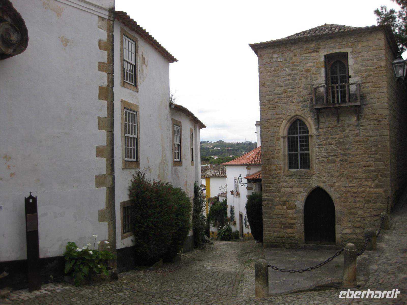 Nach der Mittagspause holt uns Victor mit dem Bus wieder ab und wir fahren durch Pinienwälder bis nach Obidos. Hier machen wir einen Spaziergang durch die bezaubernde Altstadt. Ganz Mutige steigen auf die Stadtmauer hinauf, aber da muss man schon schwindelfrei sein. In den Gassen gibt es eine Vielzahl von Cafes und Restaurants, die den berühmten Kirschlikör anbieten. Auch eine Vielzahl von kleinen Geschäften locken mit Souveniren von Portugal.