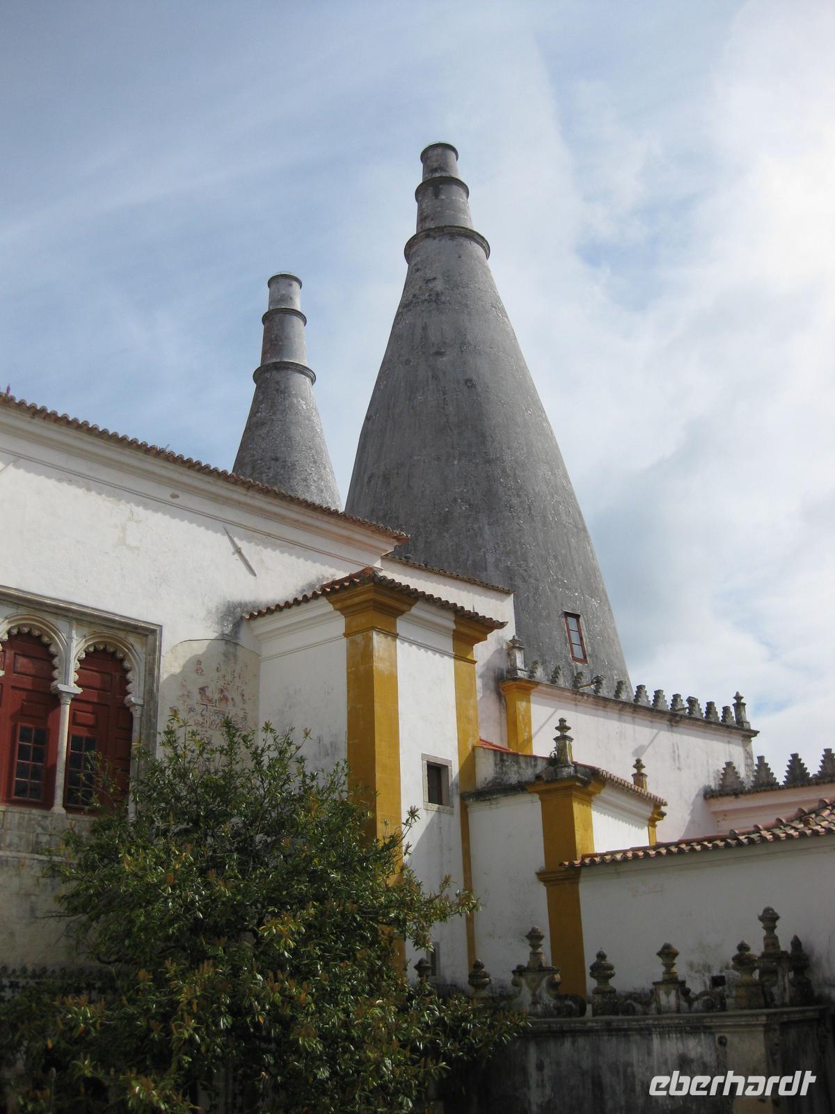 Wir fahren erst noch ein Stück durch Lissabon. Dann geht es weiter über Land in westlicher Richtung. Schon bald erreichen wir die Kleinstadt Sintra mit ihrem historischen Zentrum, das auch zum Weltkulturerbe der Unesco gehört. Sintra mit seinen Palästen ist ein Muss für alle Touristen, die Lissabon besuchen. Die frühere königliche Sommerresidenz, der Palacio Nacional de Sintra ist mit seinen riesigen Küchenschornsteinen das Wahrzeichen von Sintra. Elsa führt uns durch den Palast und erklärt uns die prunkvolle Ausstattung. Wir haben wieder unseren Reiseleiterfunk dabei und damit Elsa "im Ohr" und können so alles gut hören. Nicht nur der Palast ist sehenswert sondern auch das kleine Städtchen. Im Anschluss an die Besichtigung des Palastes ist noch etwas Zeit für einen individuellen Bummel durch das historische Zentrum.